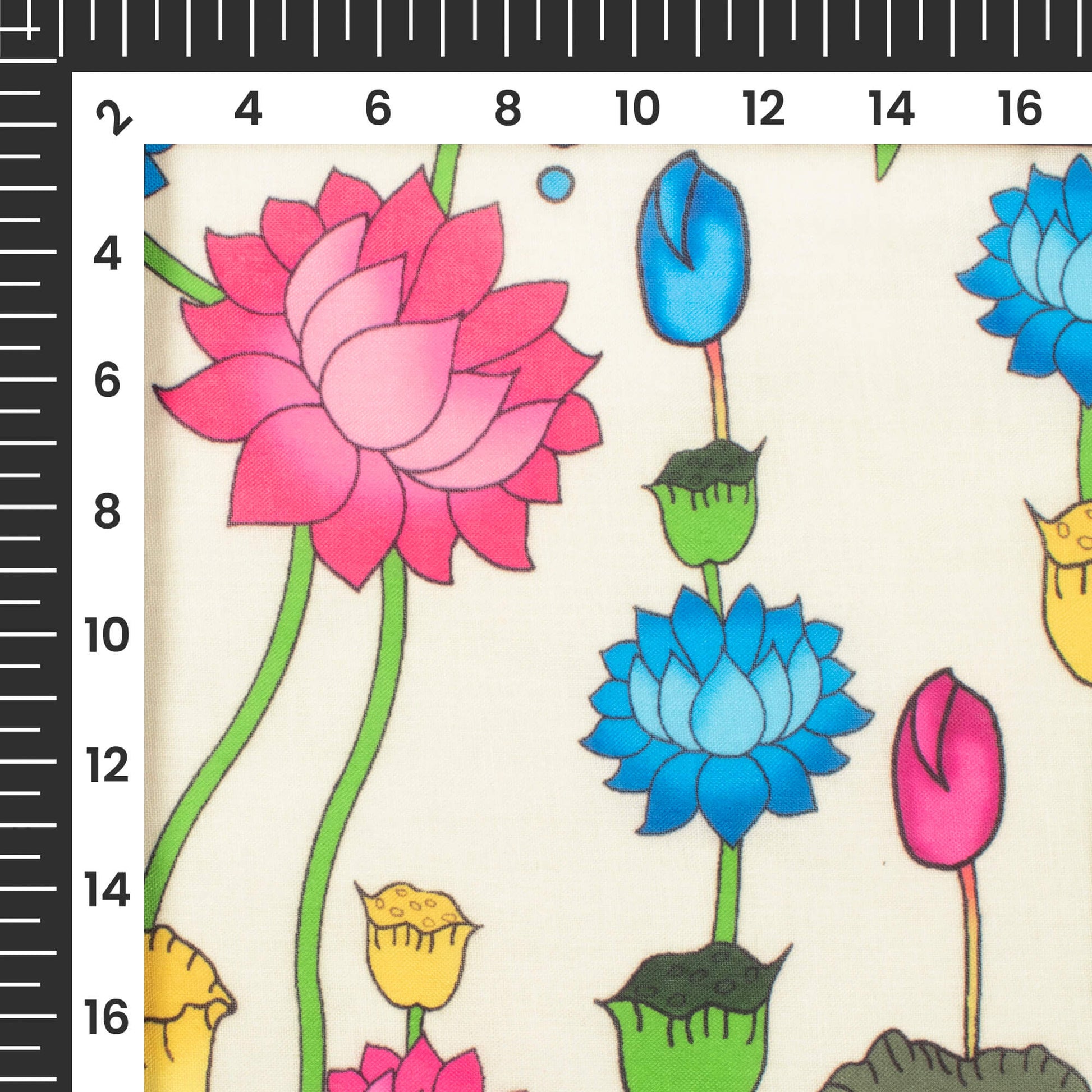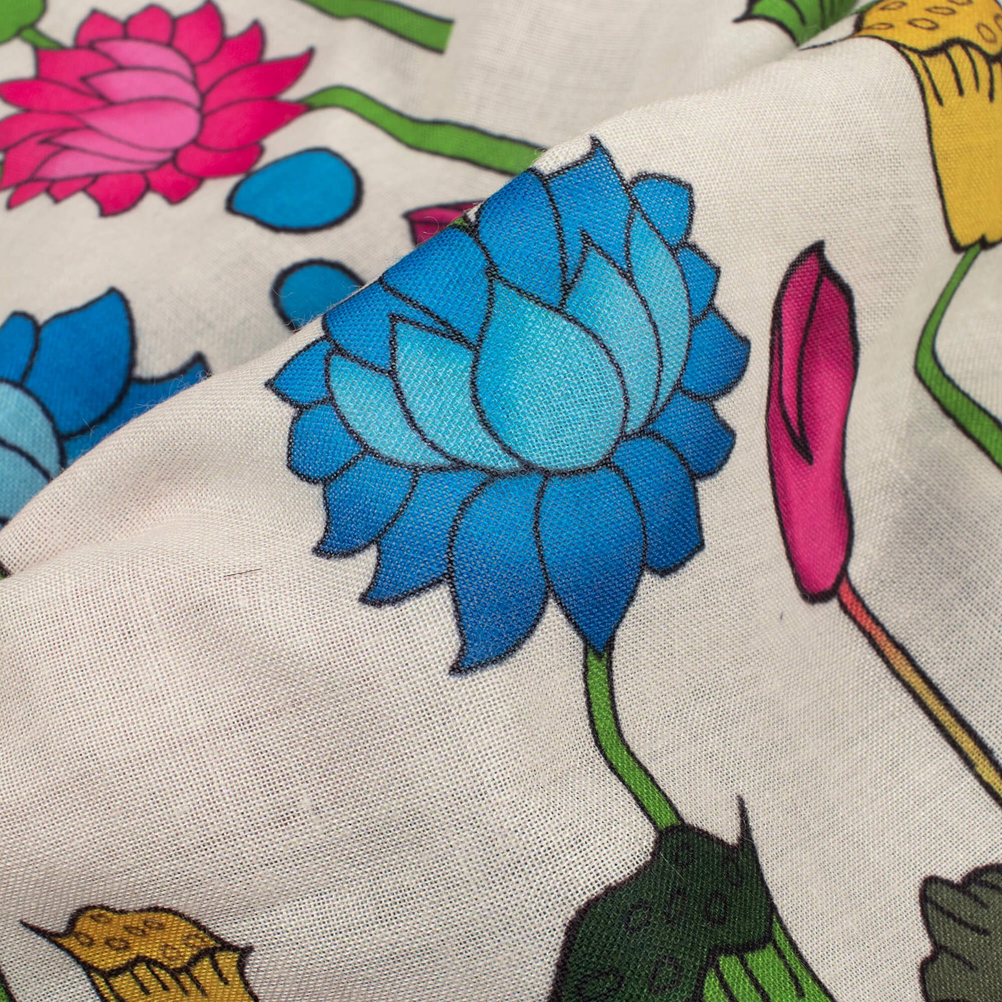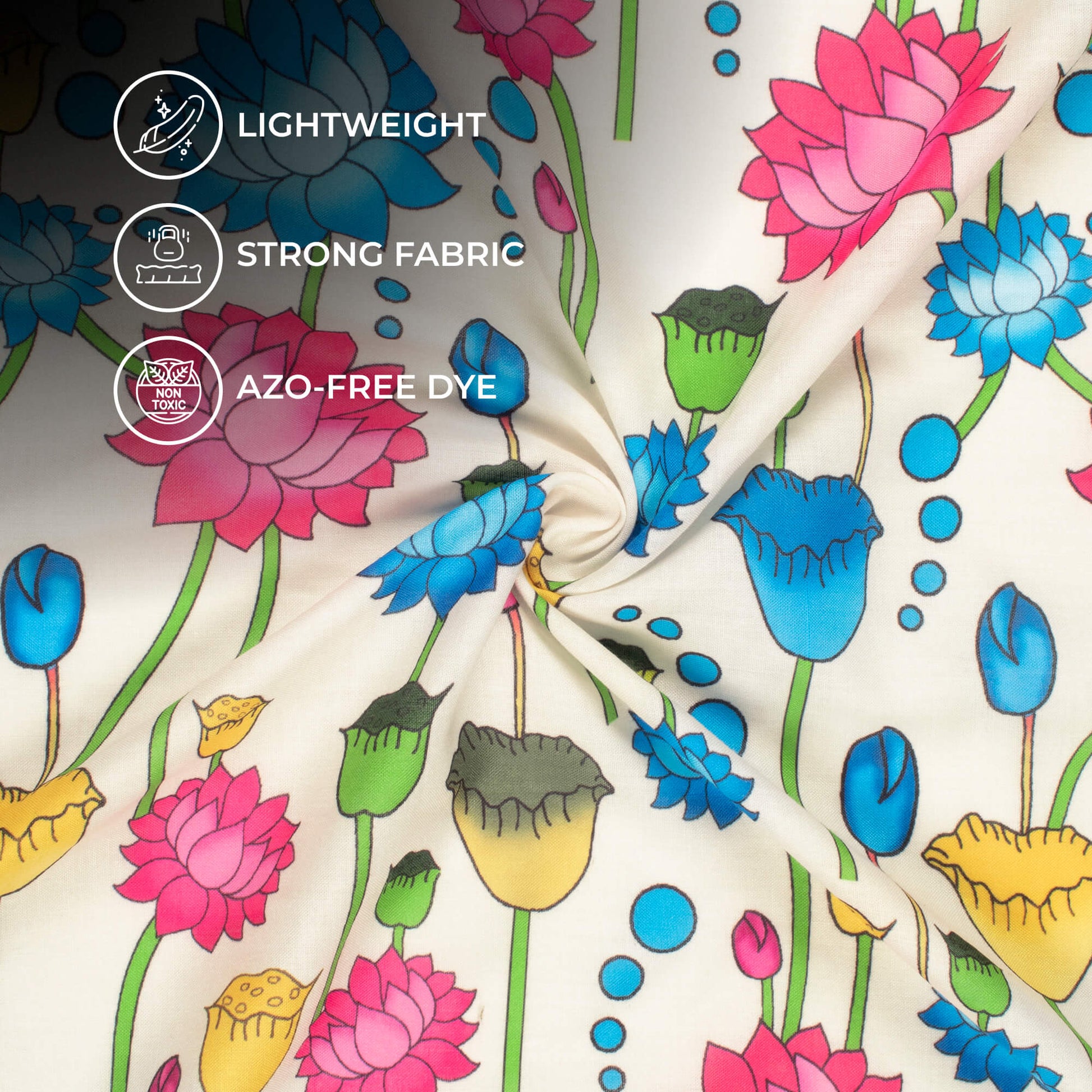 Cream And Blue Pichwaii Pattern Digital Print Poly Cambric Fabric