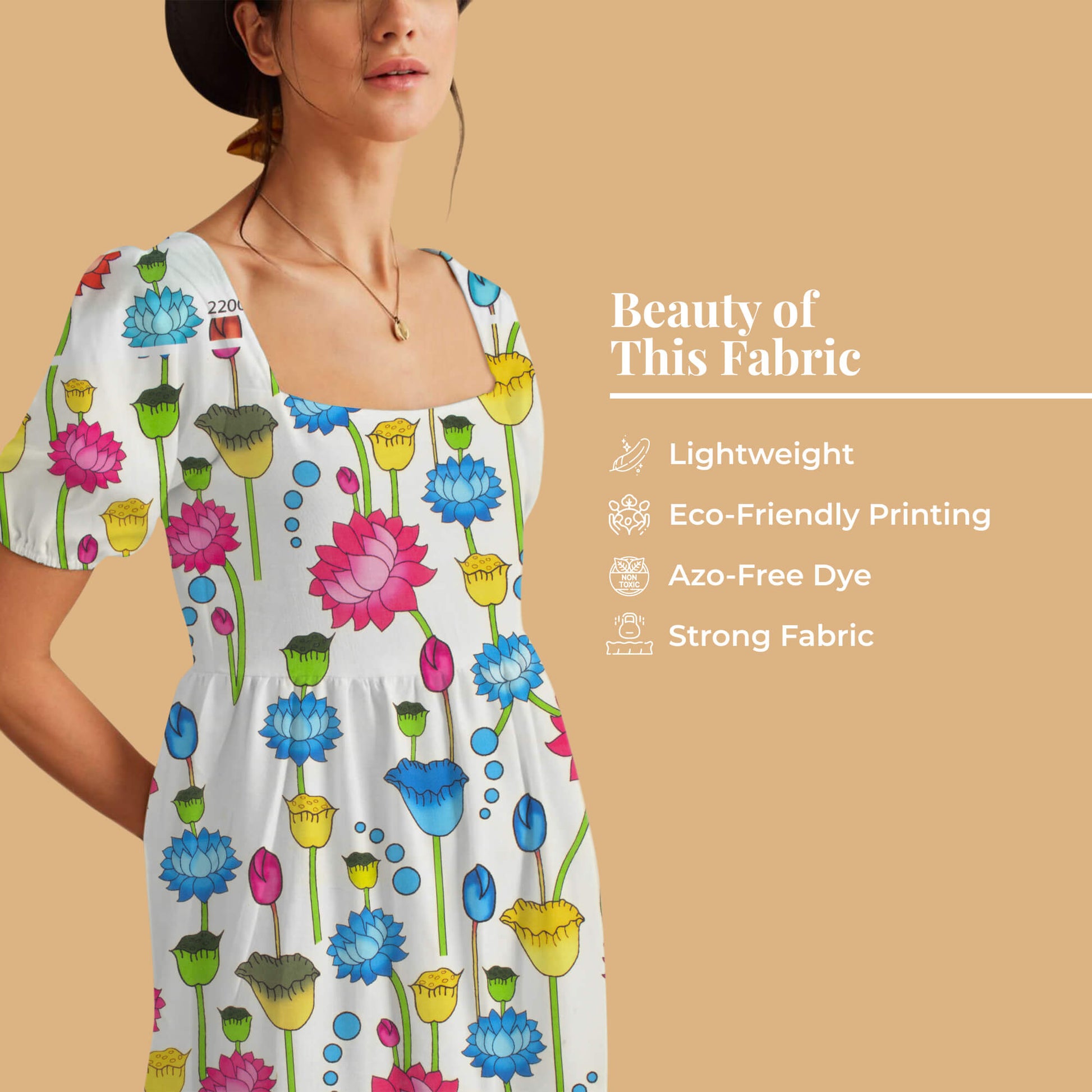 The Pichwai pattern collection from fabcurate is an adoption of the Pichwai painting that depicts the historical events of Lord Krishna's life. Motifs of leaves, trees, and scenic beauty on the fabric will surely mesmerize you at a glance. Digitally printed Pichwai patterns are something unique that tell a lot about our culture and one can display them in style. You can wear these fabrics during festive days and special occasions. One can make dresses, sarees, tops, and much more using this fabric.