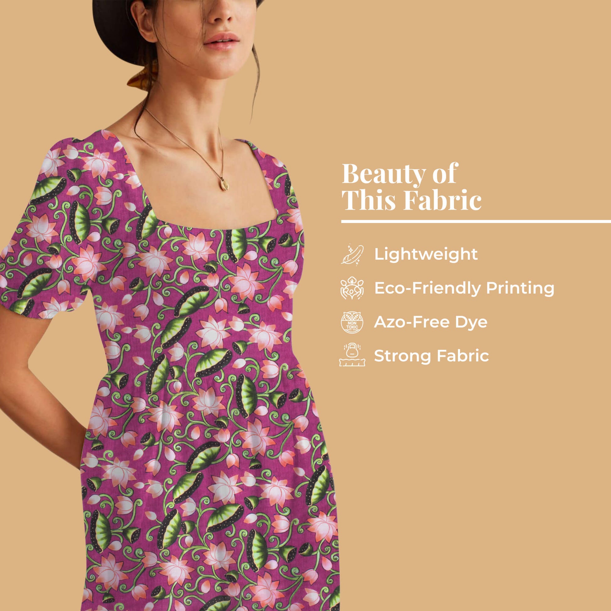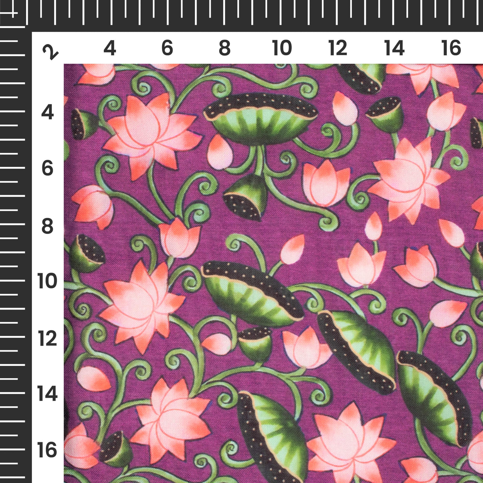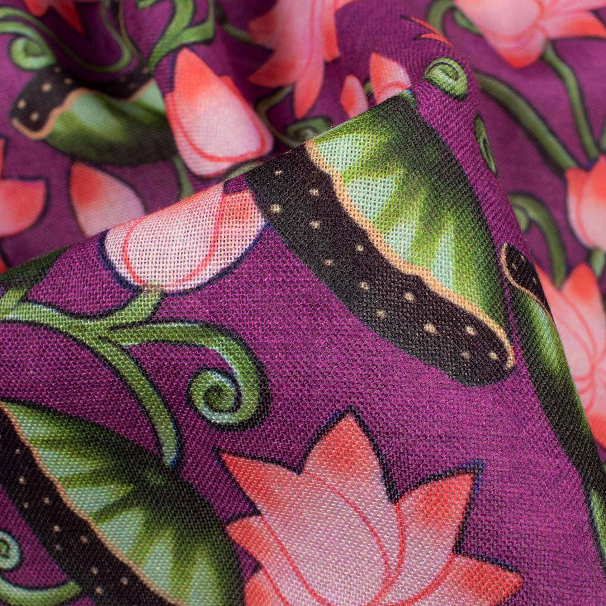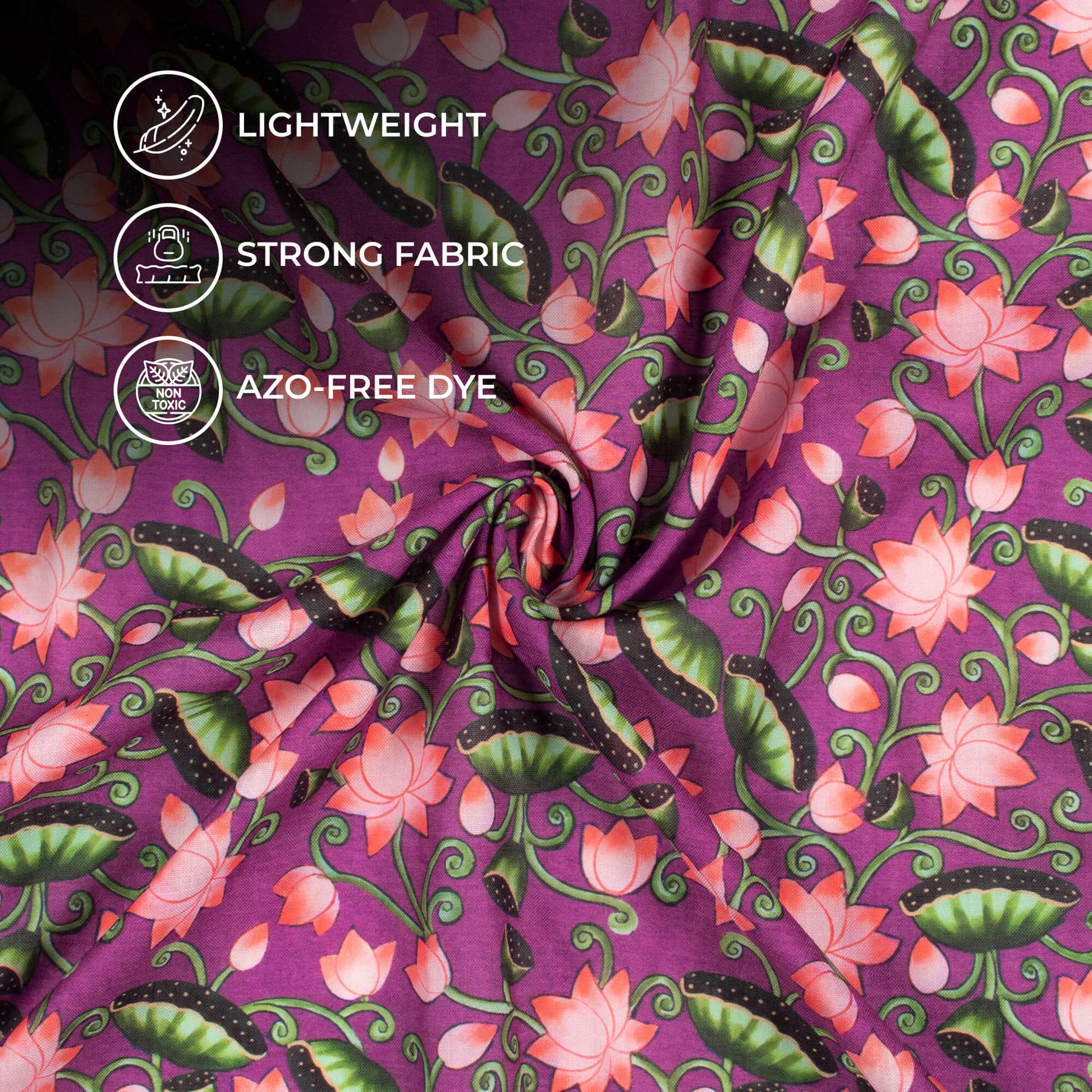 Plum Purple And Coral Pink Pichwaii Pattern Digital Print Poly Cambric Fabric
