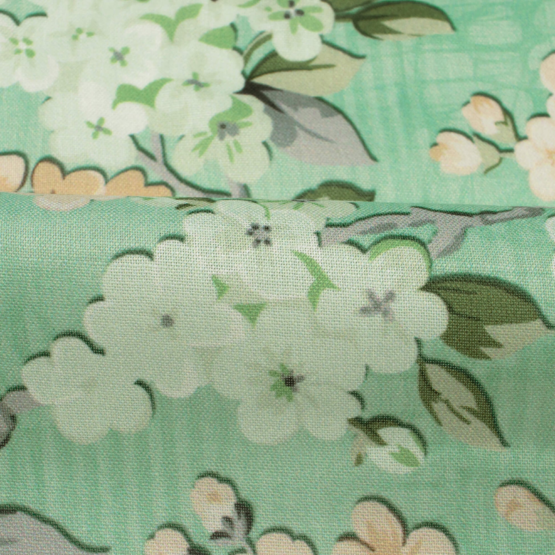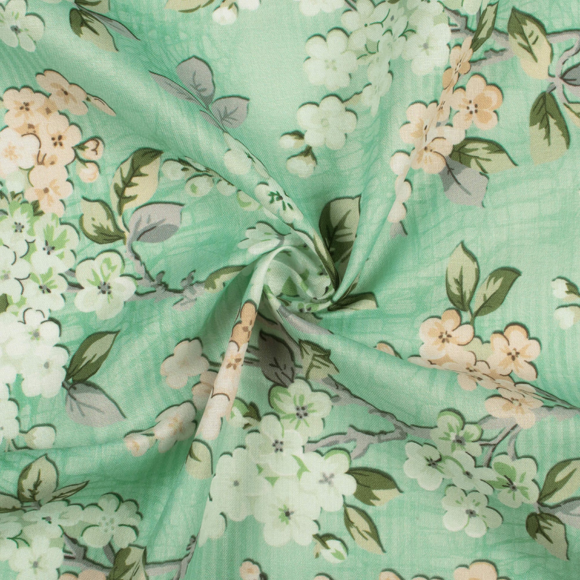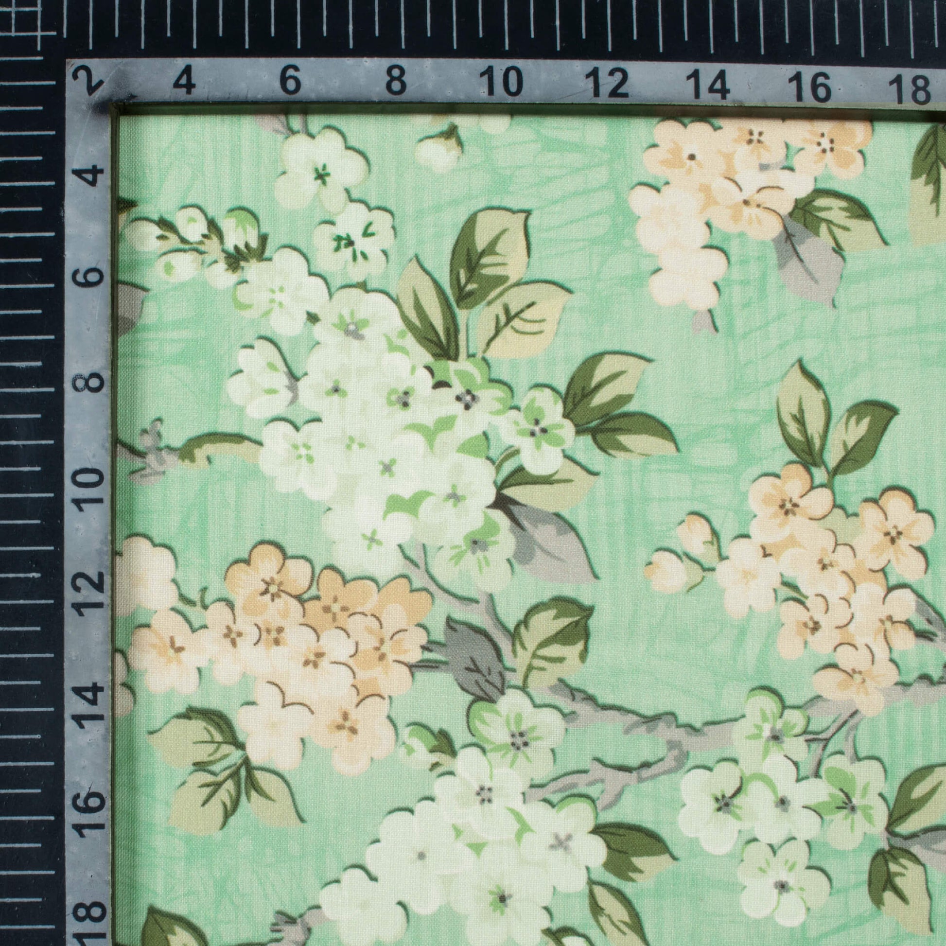 Tea Green And Pastel Peach Floral Pattern Digital Print Poly Cambric Fabric
