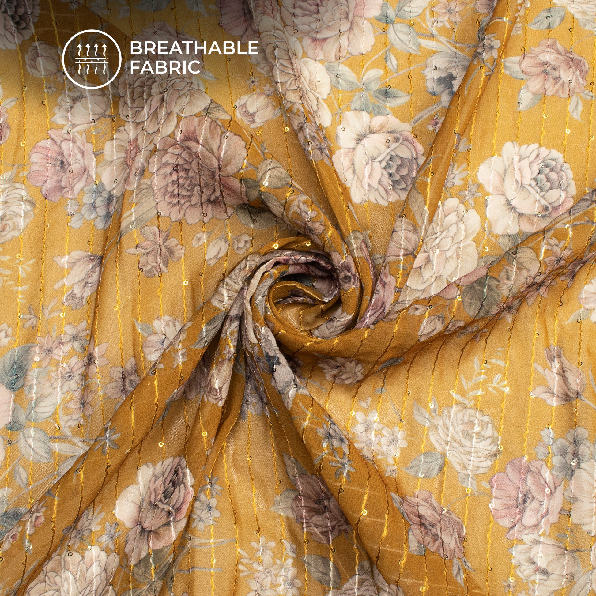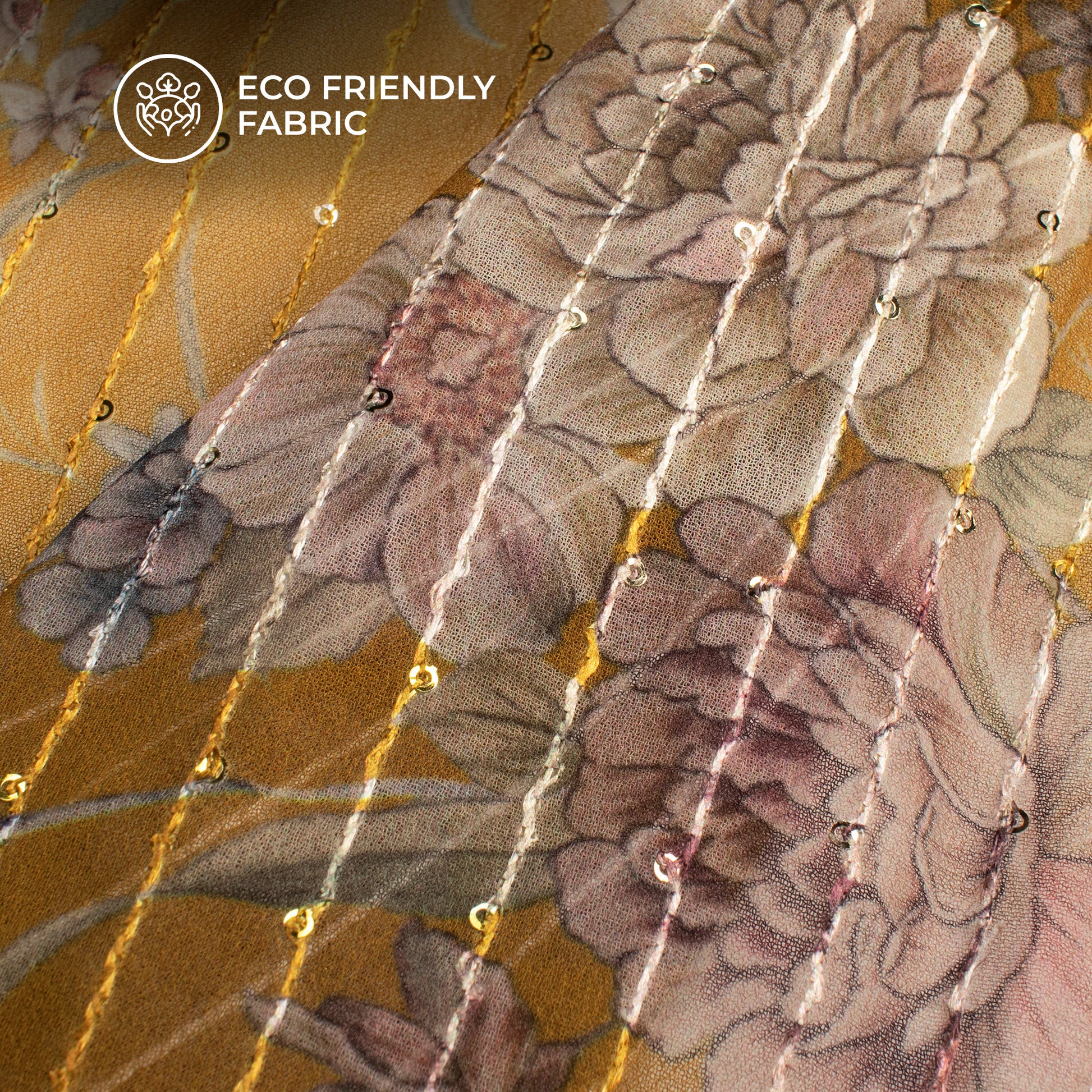 Attractive Floral Digital Print Sequins Premium Georgette Fabric