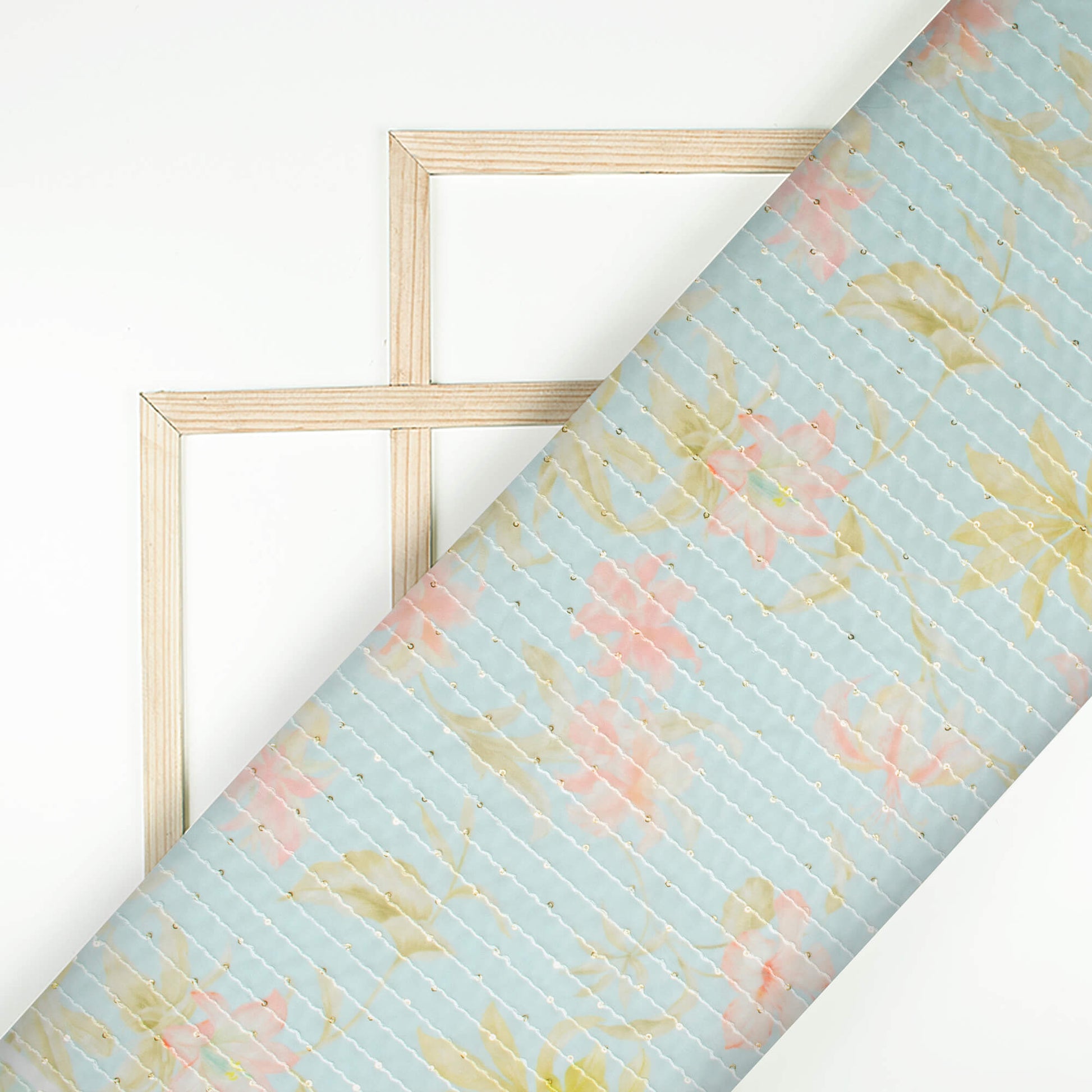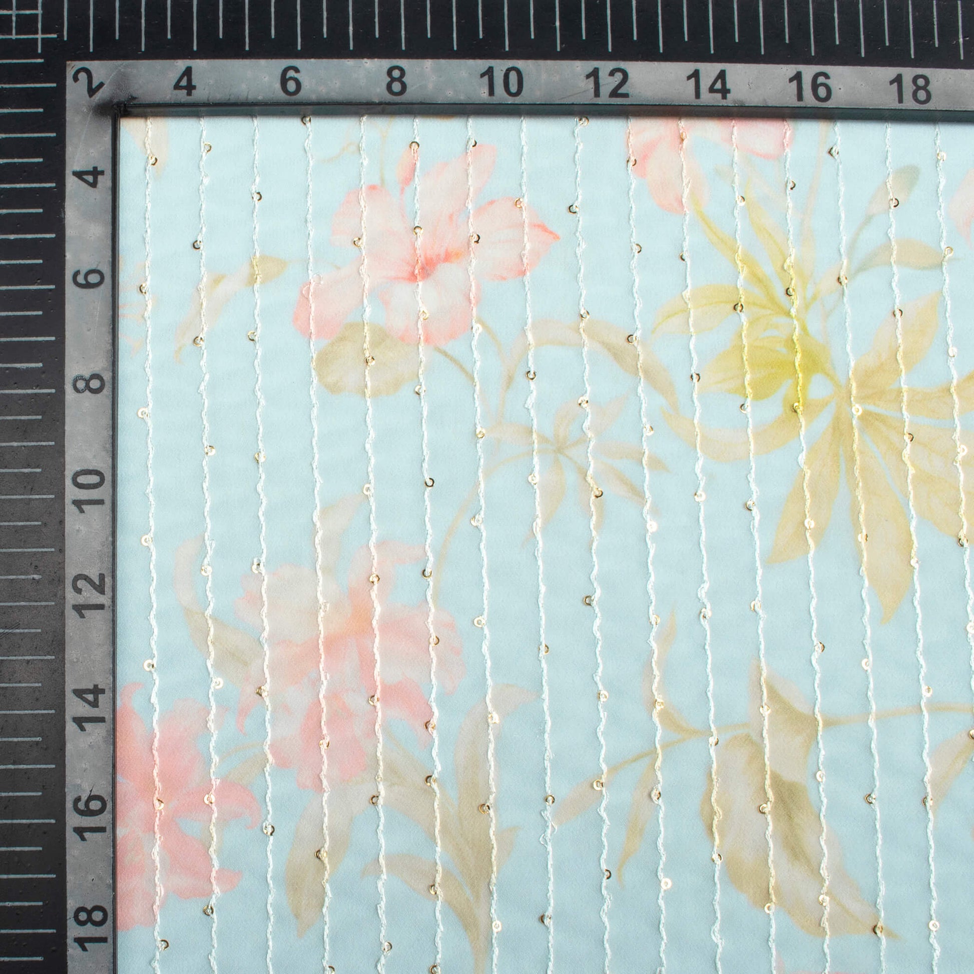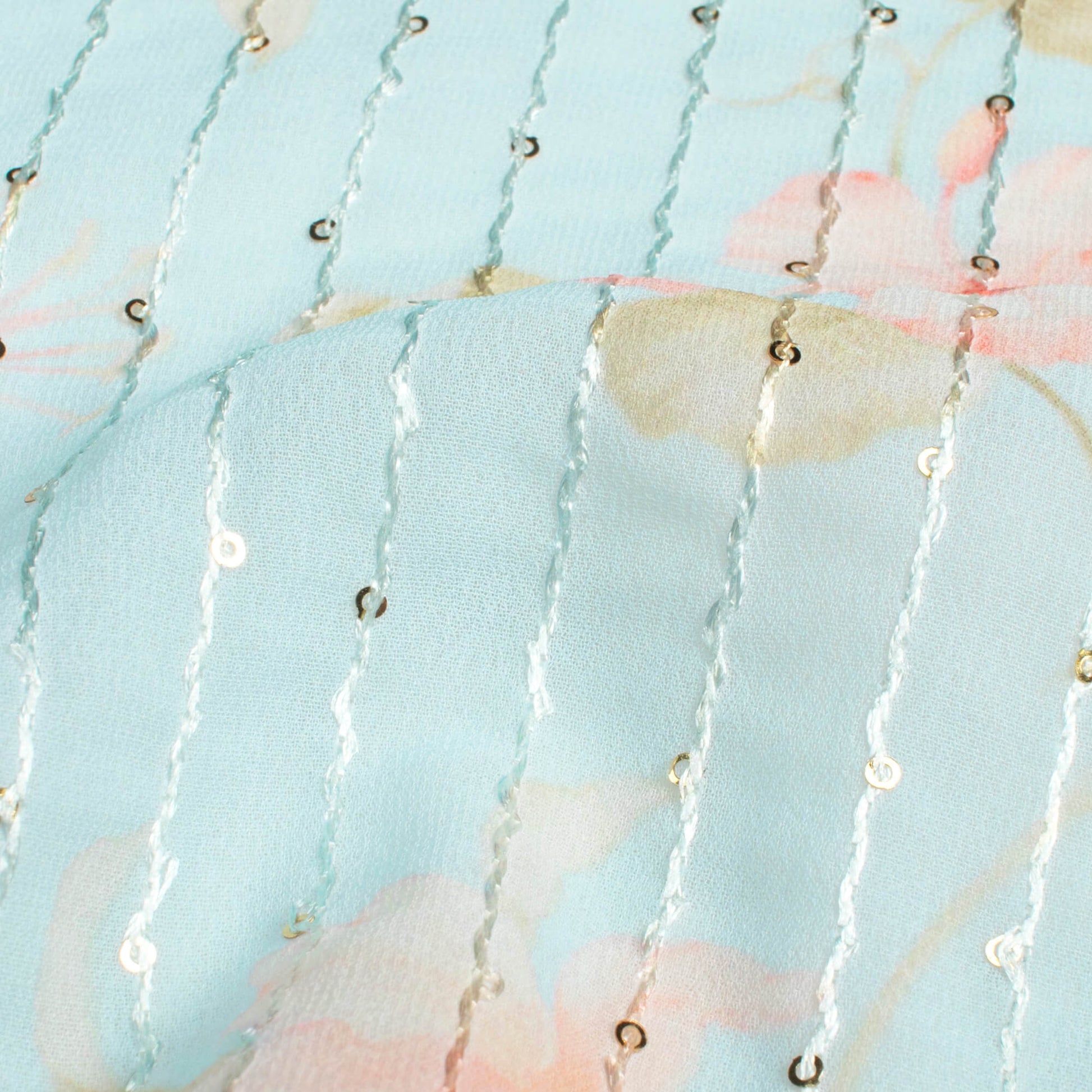 Baby Blue And Baby Pink Floral Pattern Digital Print Premium Sequins Georgette Fabric