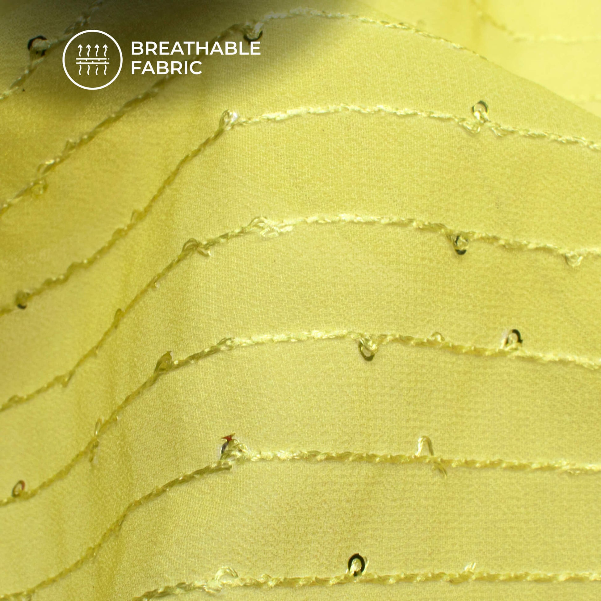 Blessed by a crisp and gracious fall, Fabcurate's Georgette Sequins Fabric is available in a variety of original designs ranging from floral, shibori, bandhani, tie and dye, abstract and more. The crispy and crimpled sensation of this fabric gives it a unique touch and sensation. Design Your Own chic midis, slit dresses, bell sleeve crop tops, maxis, sarees, suits and even clutches, wallets, and more.