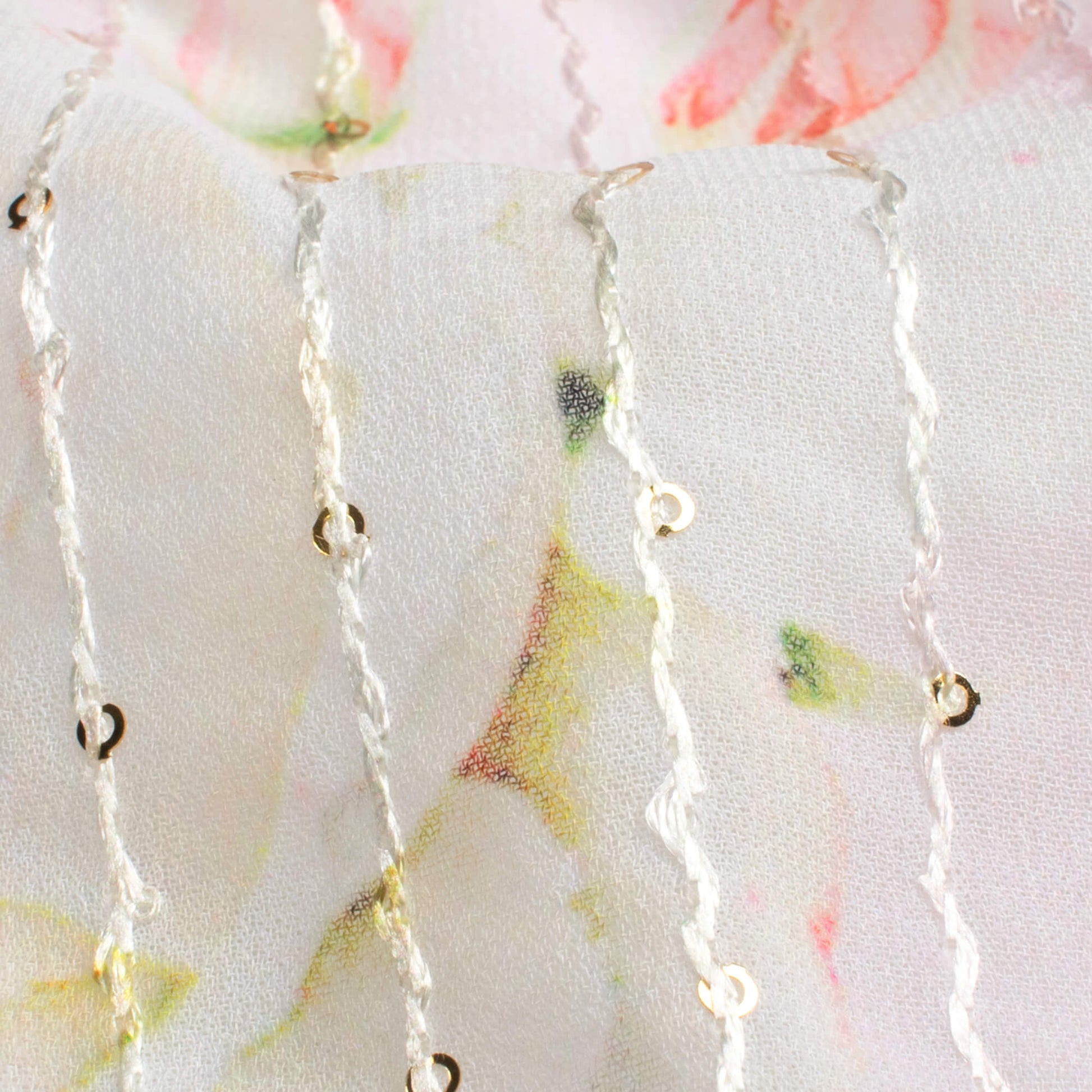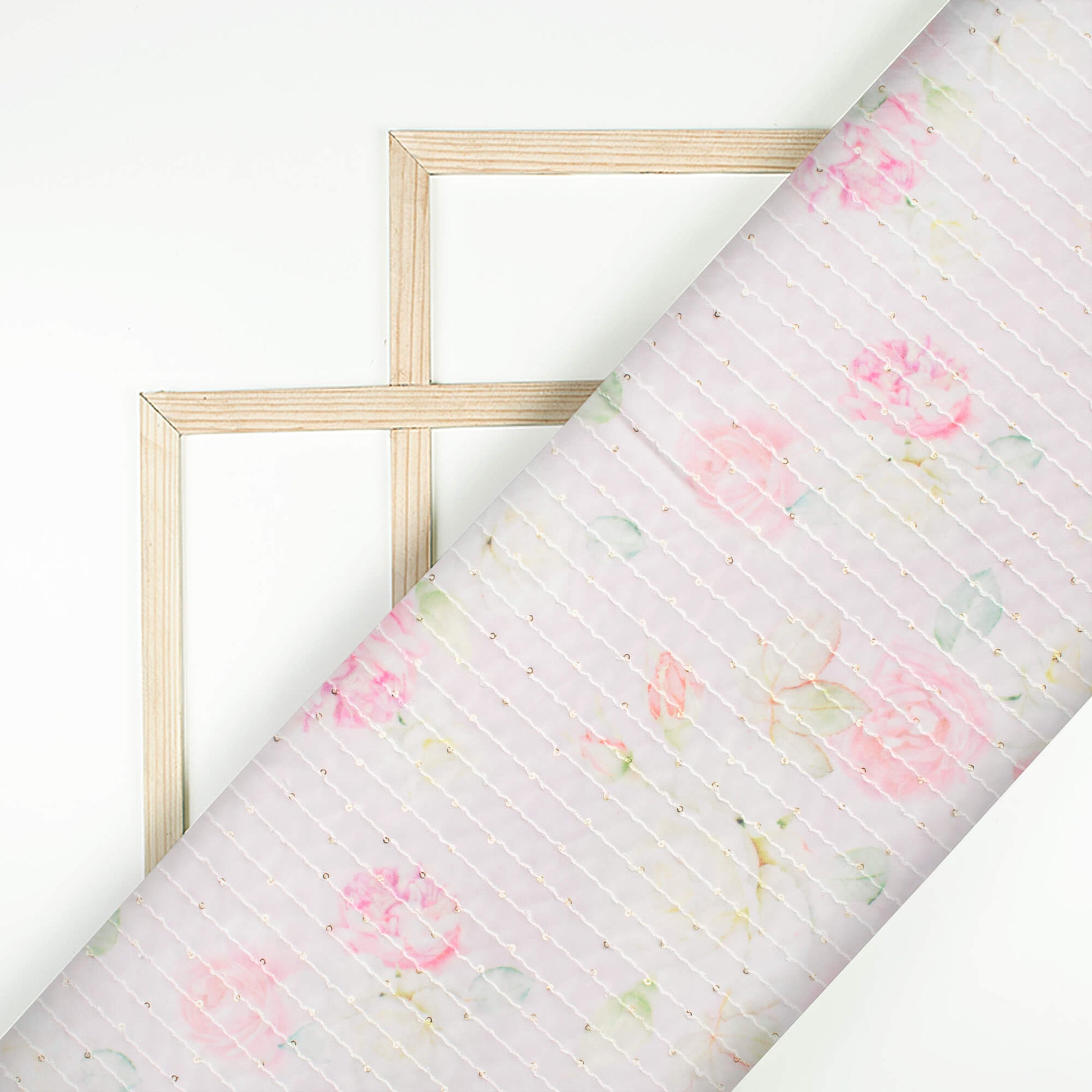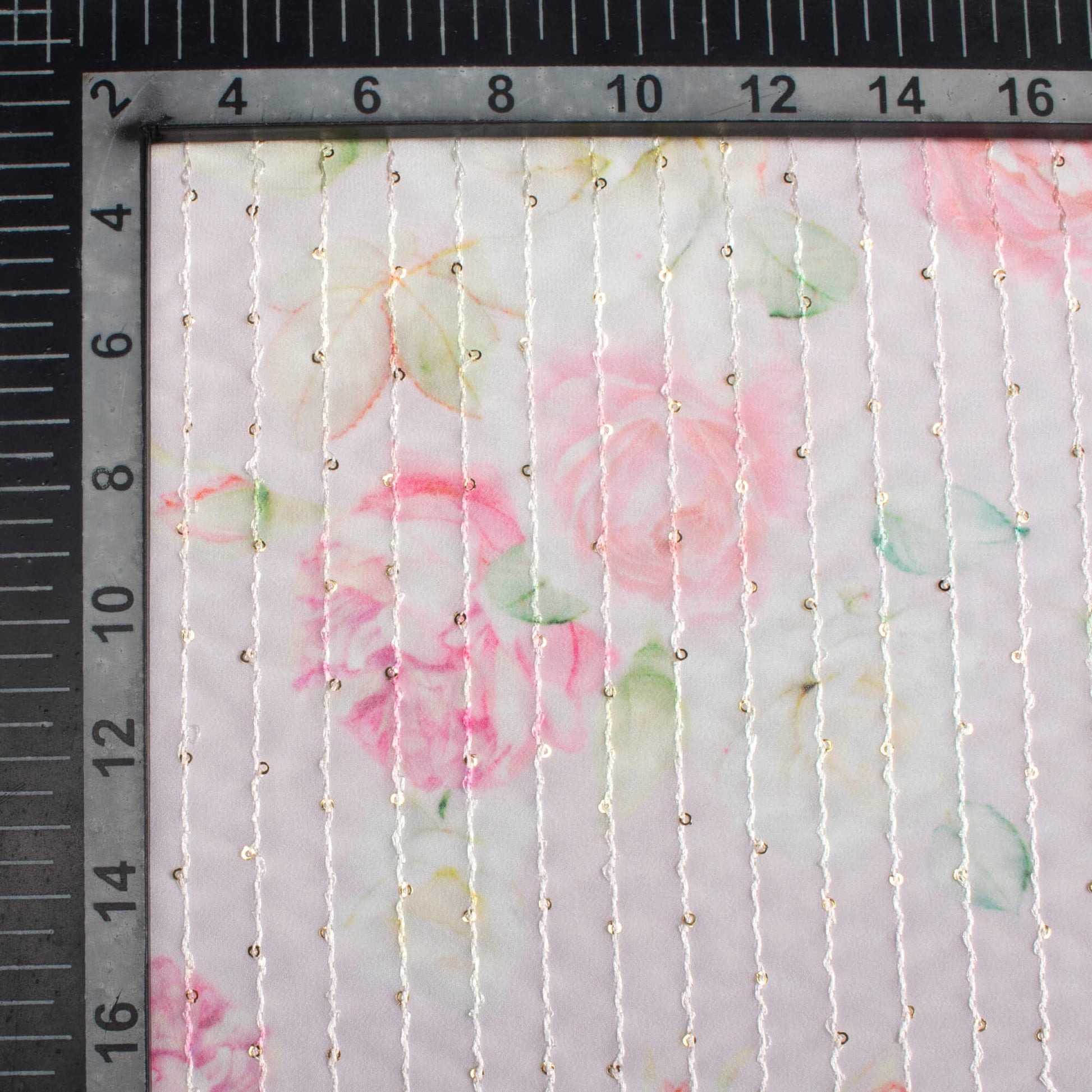 Carnation Pink Floral Pattern Digital Print Premium Sequins Georgette Fabric