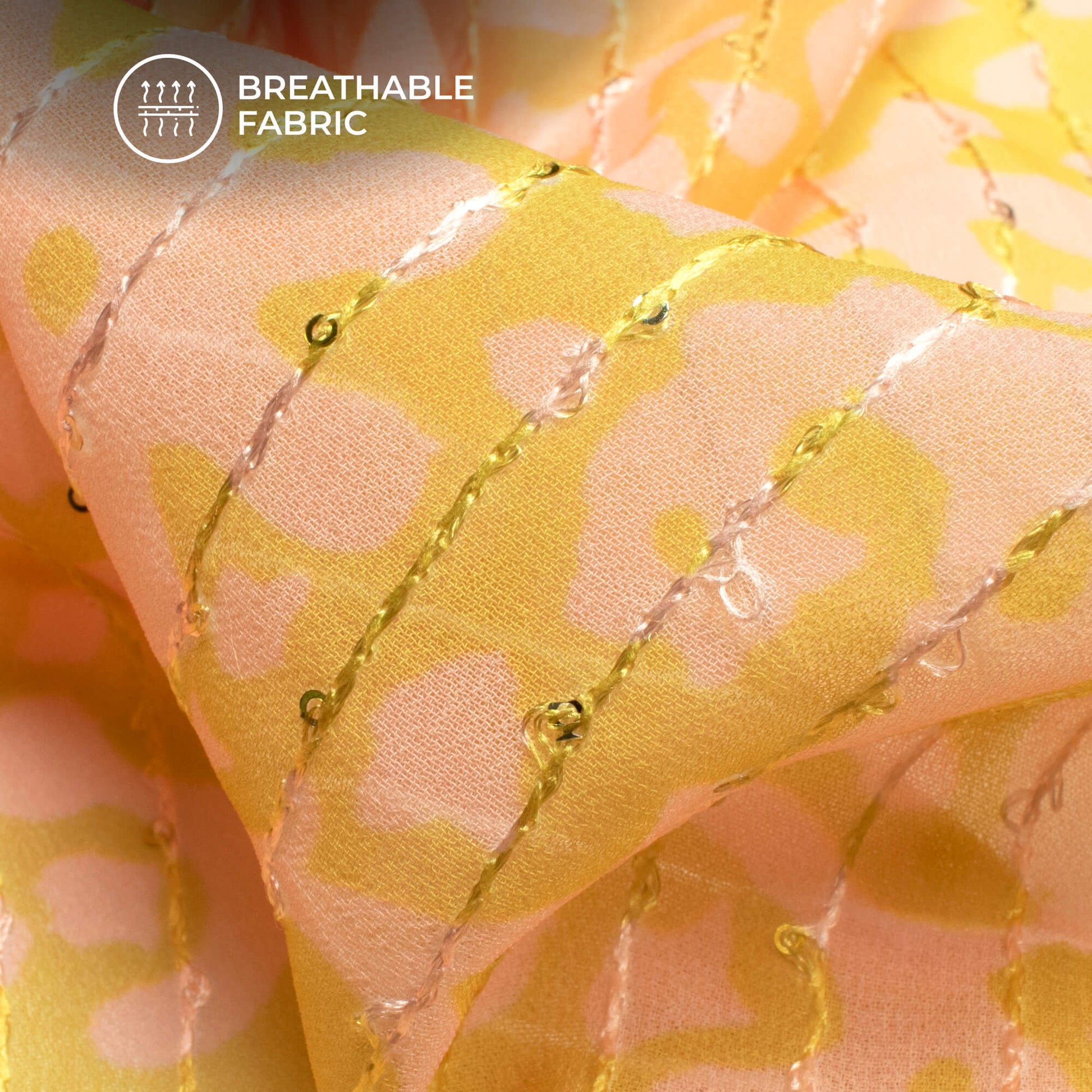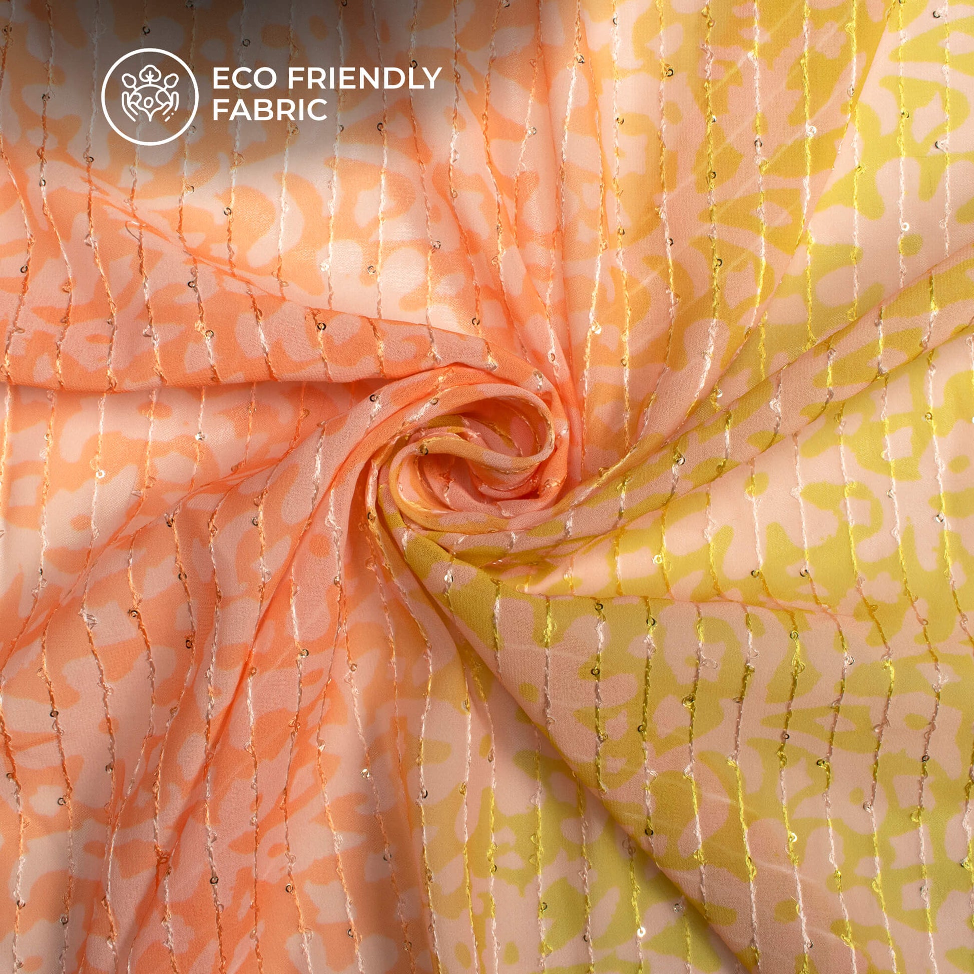 Charming Abstract Ombre Digital Print Premium Sequins Georgette Fabric