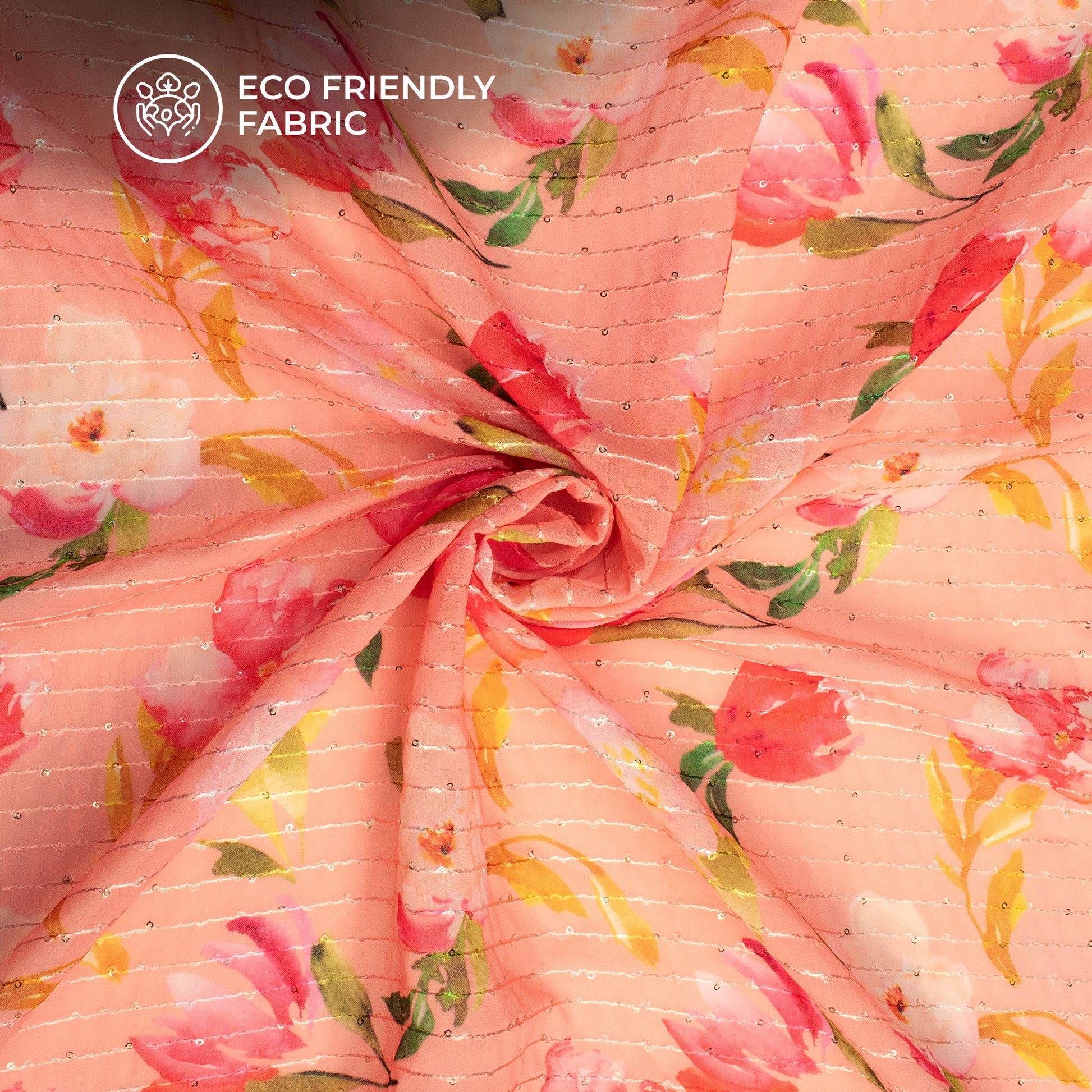 Blessed by a crisp and gracious fall, Fabcurate's Georgette Sequins Fabric is available in a variety of original designs ranging from floral, shibori, bandhani, tie and dye, abstract and more. The crispy and crimpled sensation of this fabric gives it a unique touch and sensation. Design Your Own chic midis, slit dresses, bell sleeve crop tops, maxis, sarees, suits and even clutches, wallets, and more.