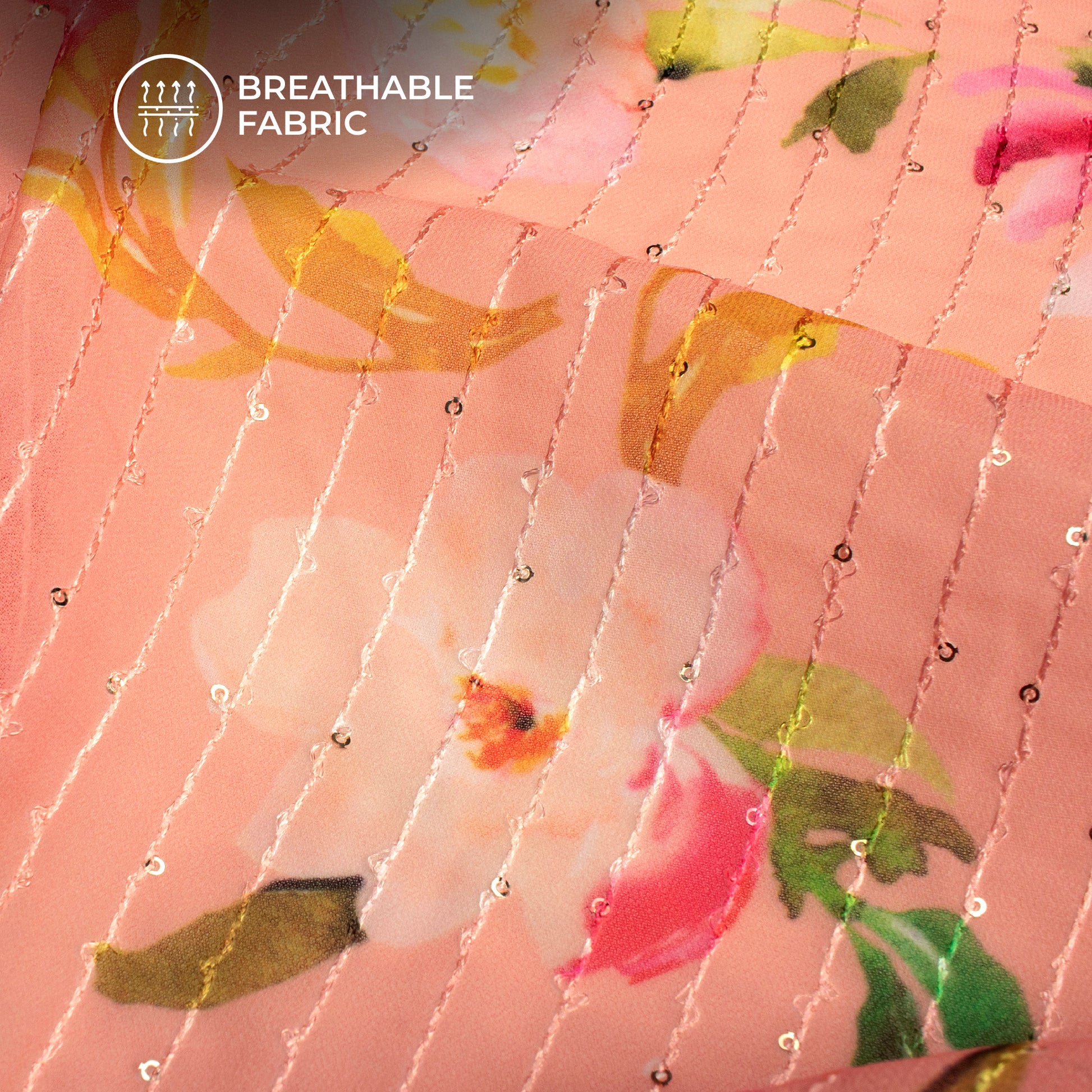 Charming Floral Digital Print Premium Sequins Georgette Fabric