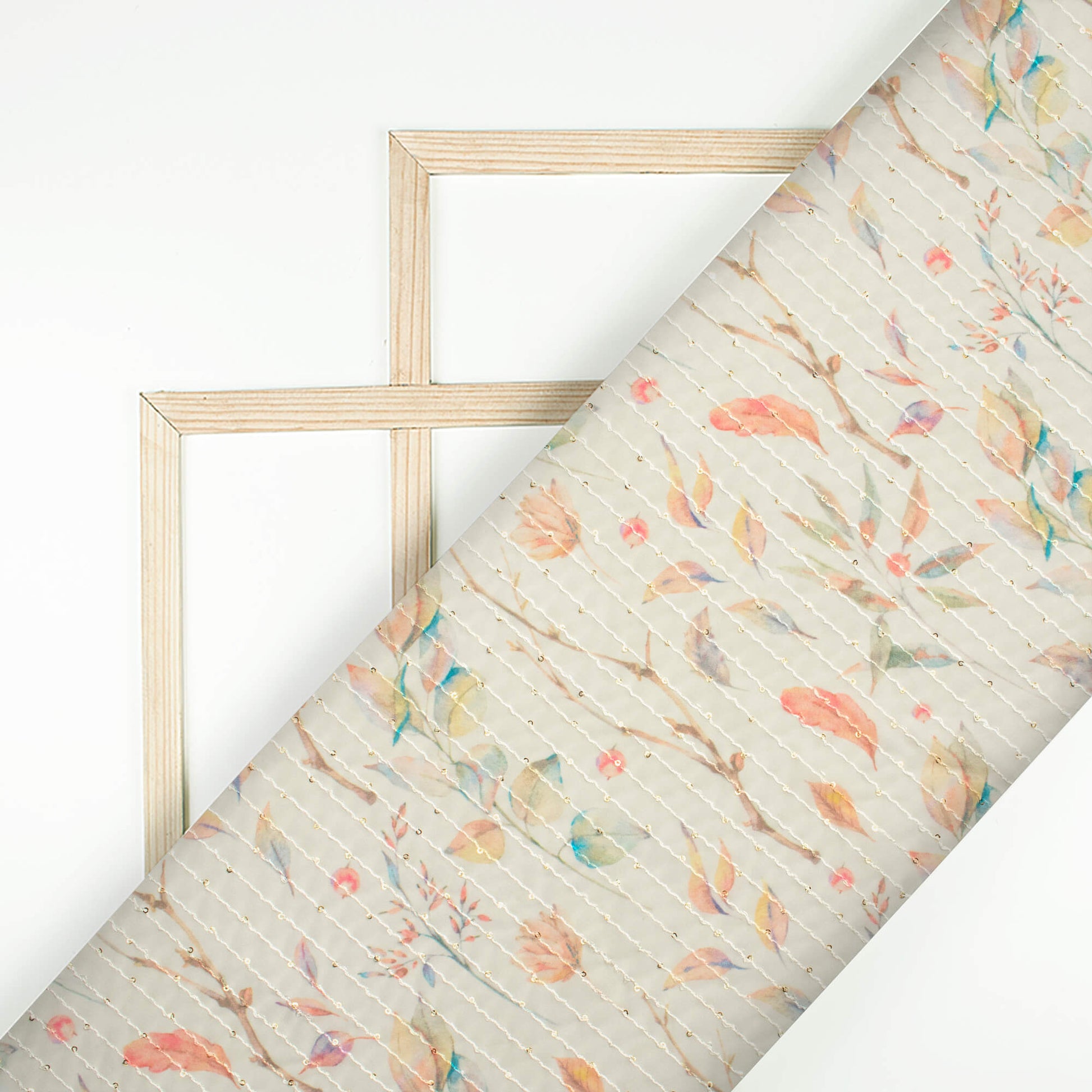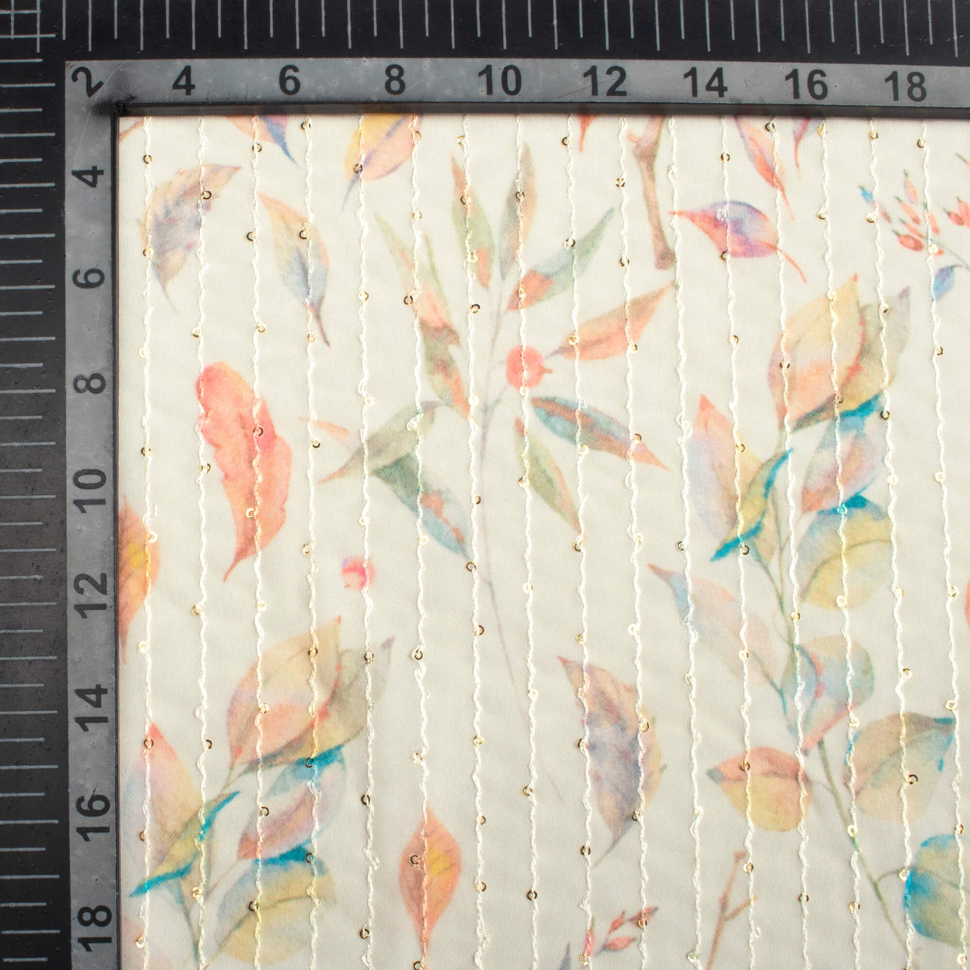 Oat Beige And Blush Red Leaf Pattern Digital Print Premium Sequins Georgette Fabric