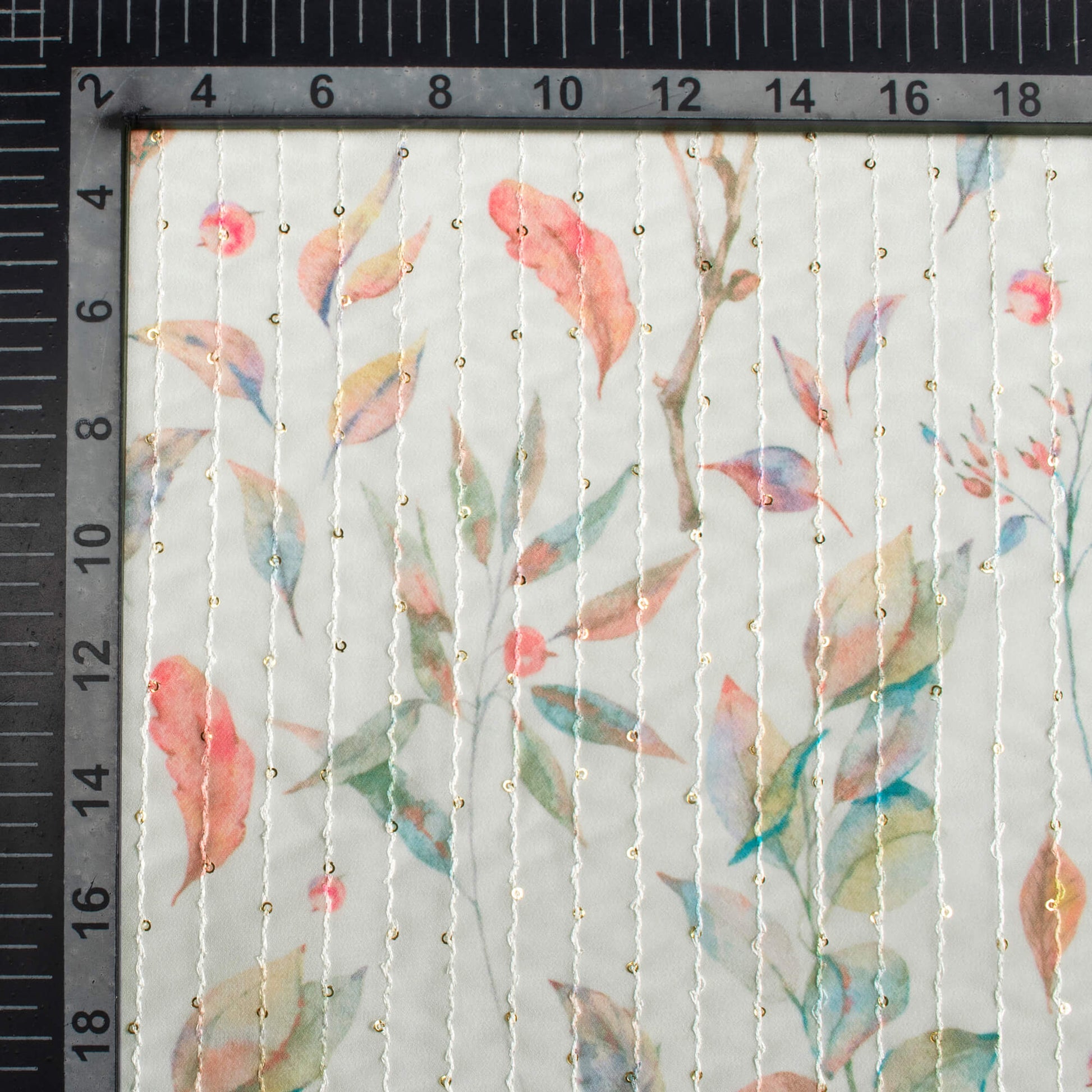 Dolphin Grey And Blush Red Leaf Pattern Digital Print Premium Sequins Georgette Fabric