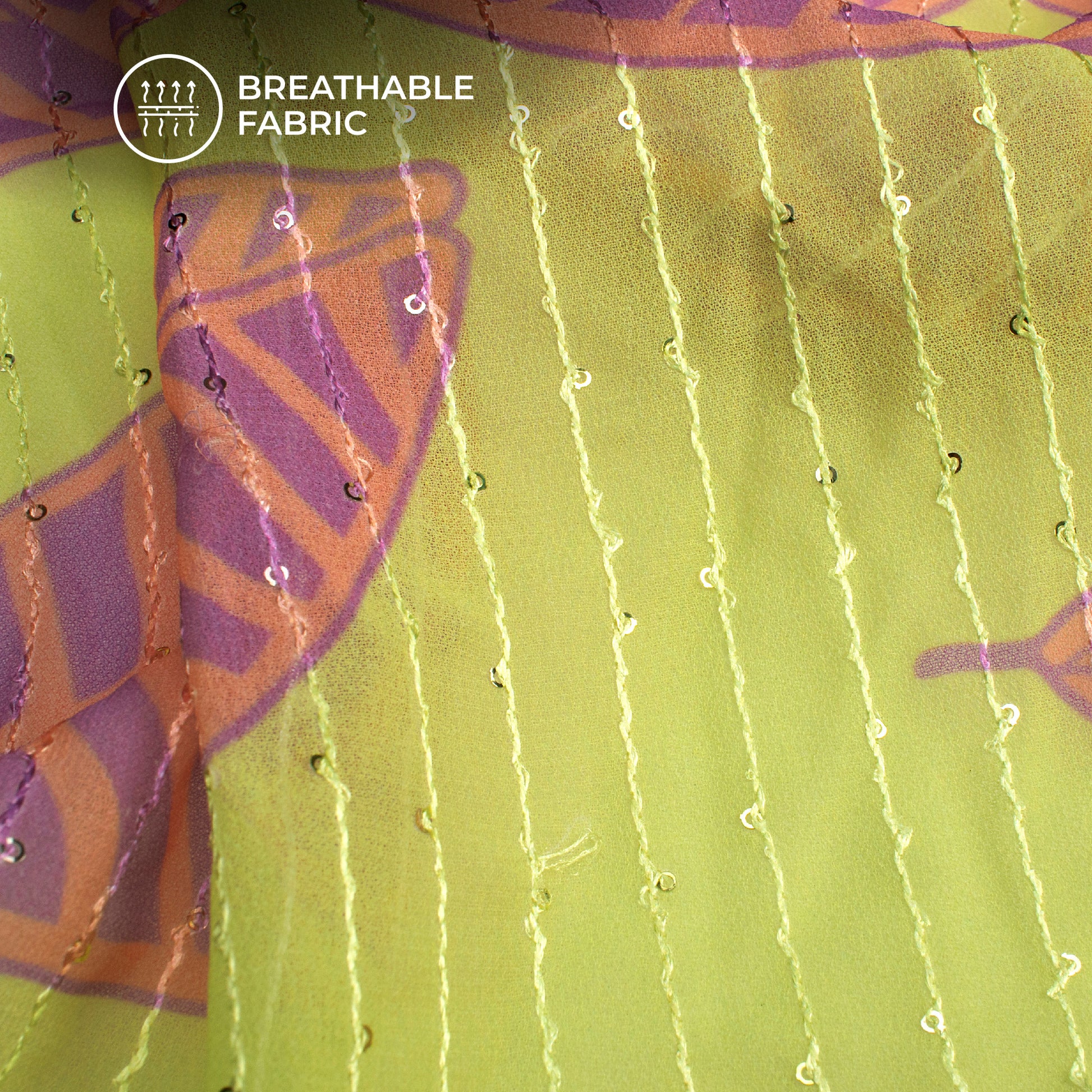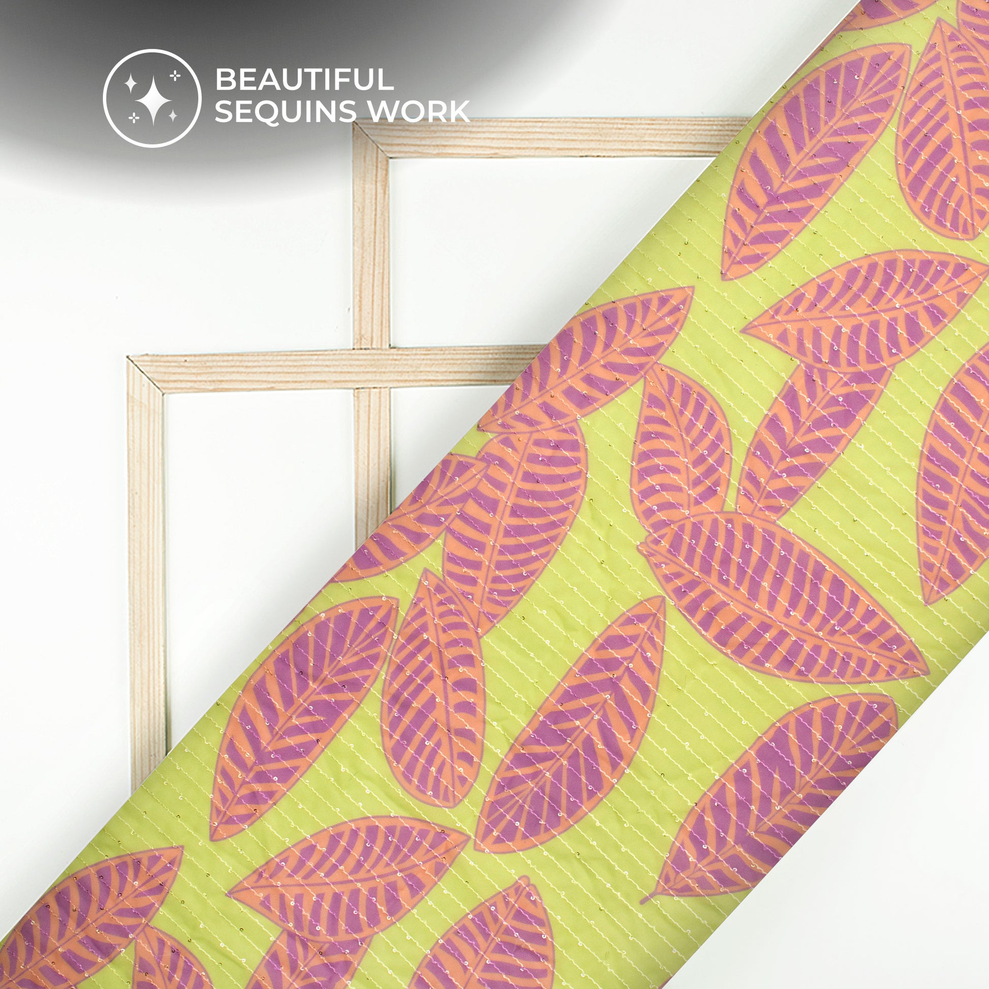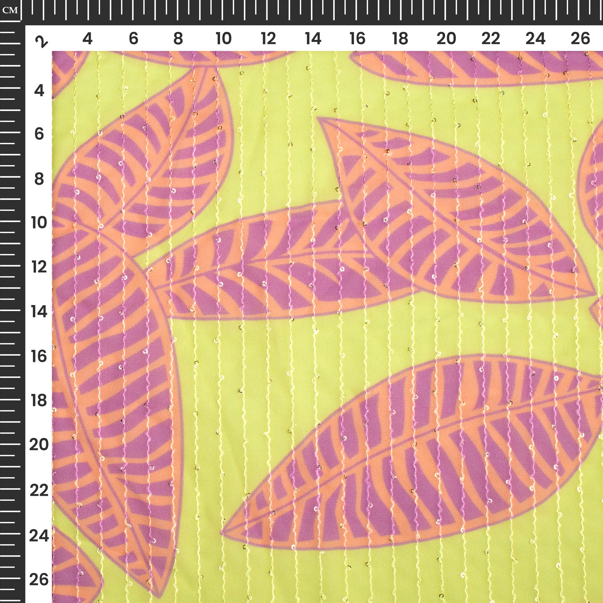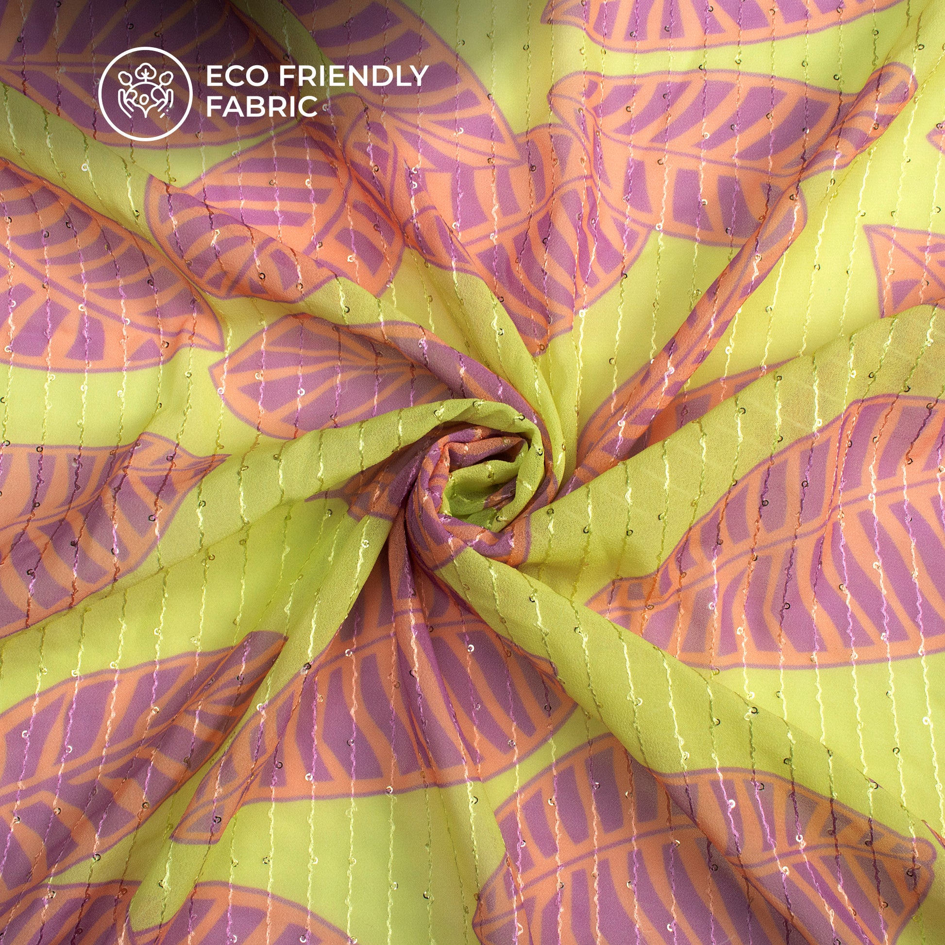 Luxurious Leaf Digital Print Premium Sequins Georgette Fabric