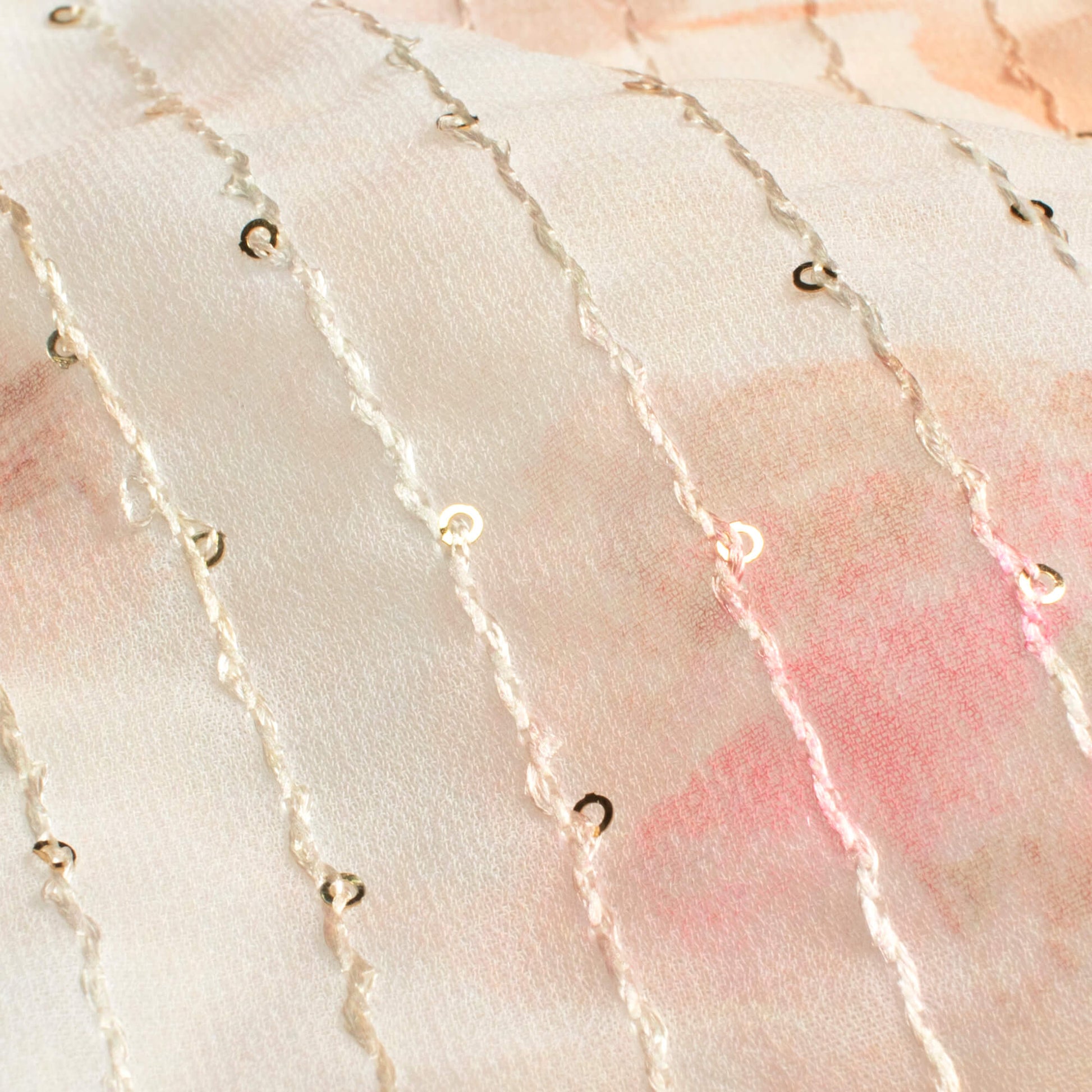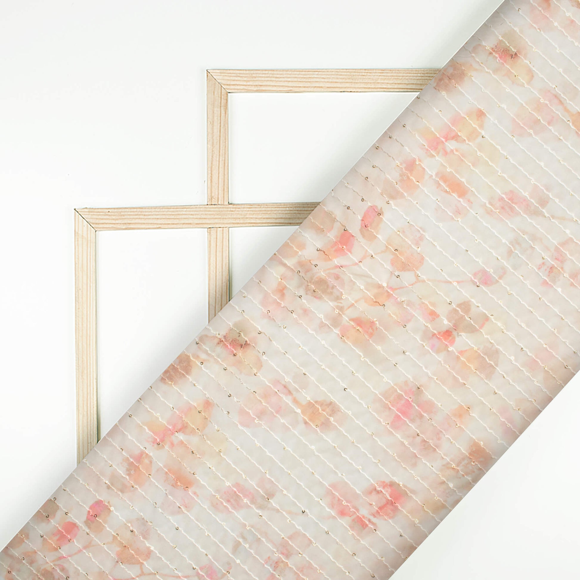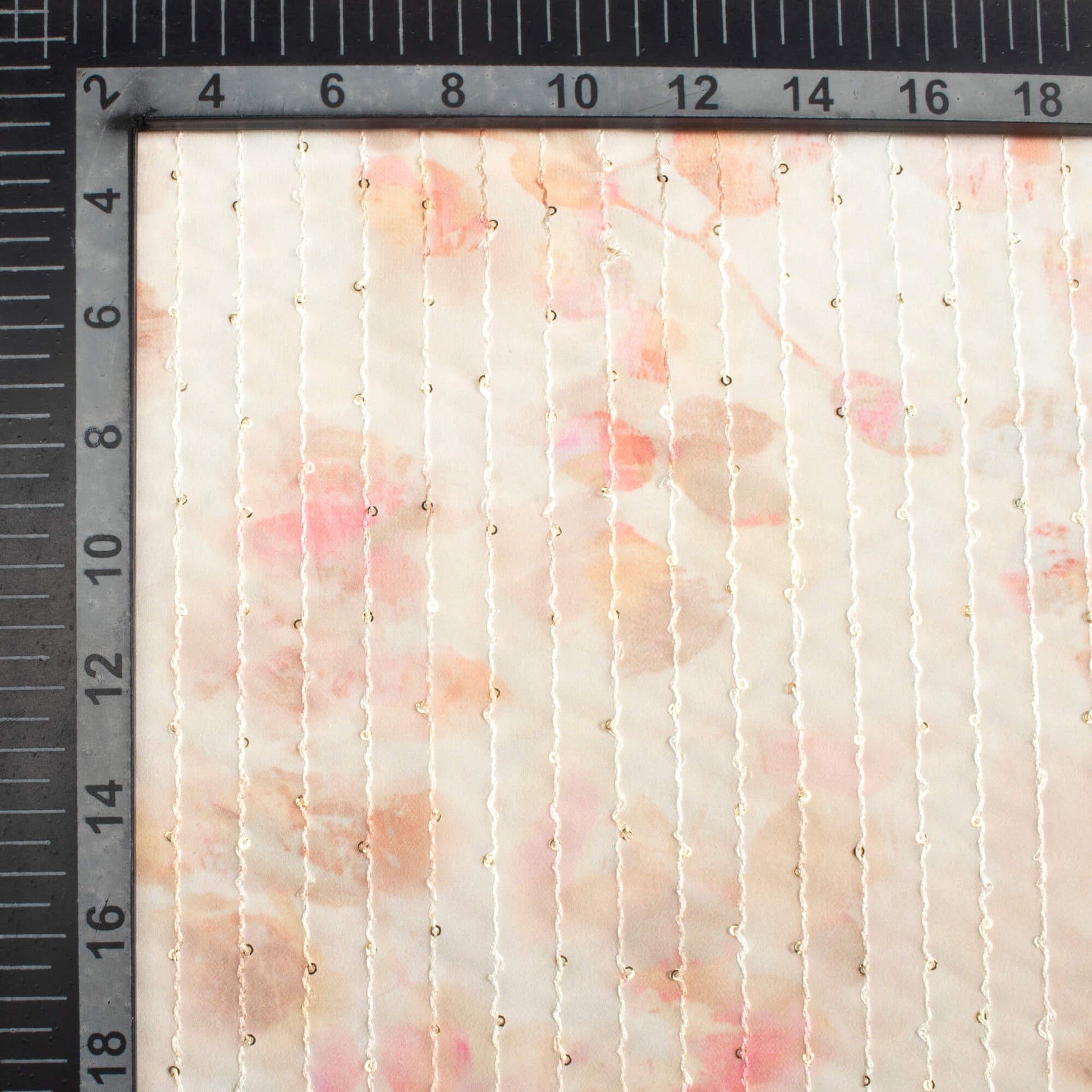 Pale Orange And Pink Leaf Pattern Digital Print Premium Sequins Georgette Fabric
