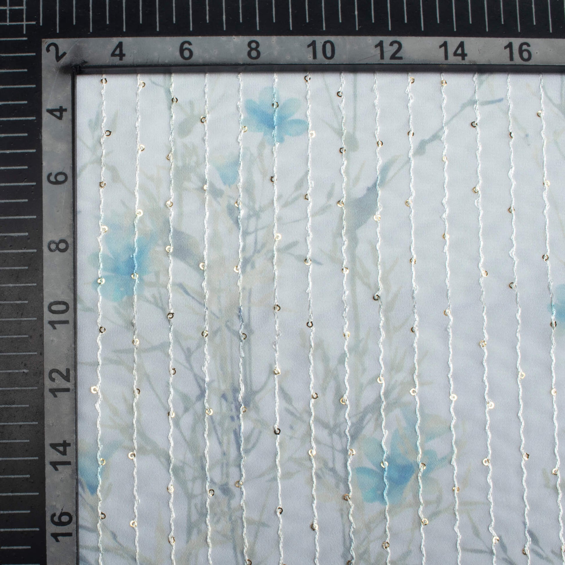 Pegion Grey And Baby Blue Floral Pattern Digital Print Premium Sequins Georgette Fabric