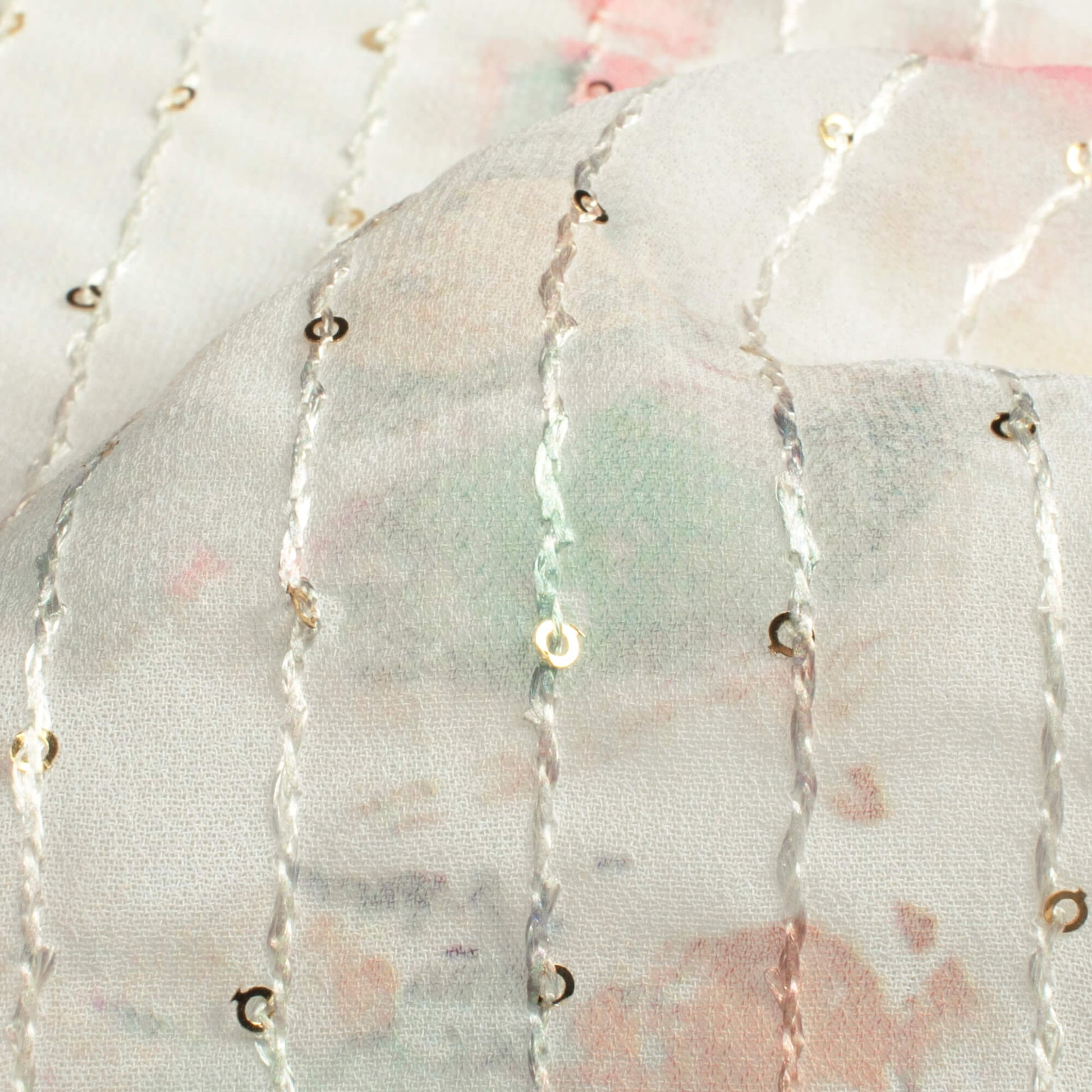 Tea Green And Pink Leaf Pattern Digital Print Premium Sequins Georgette Fabric