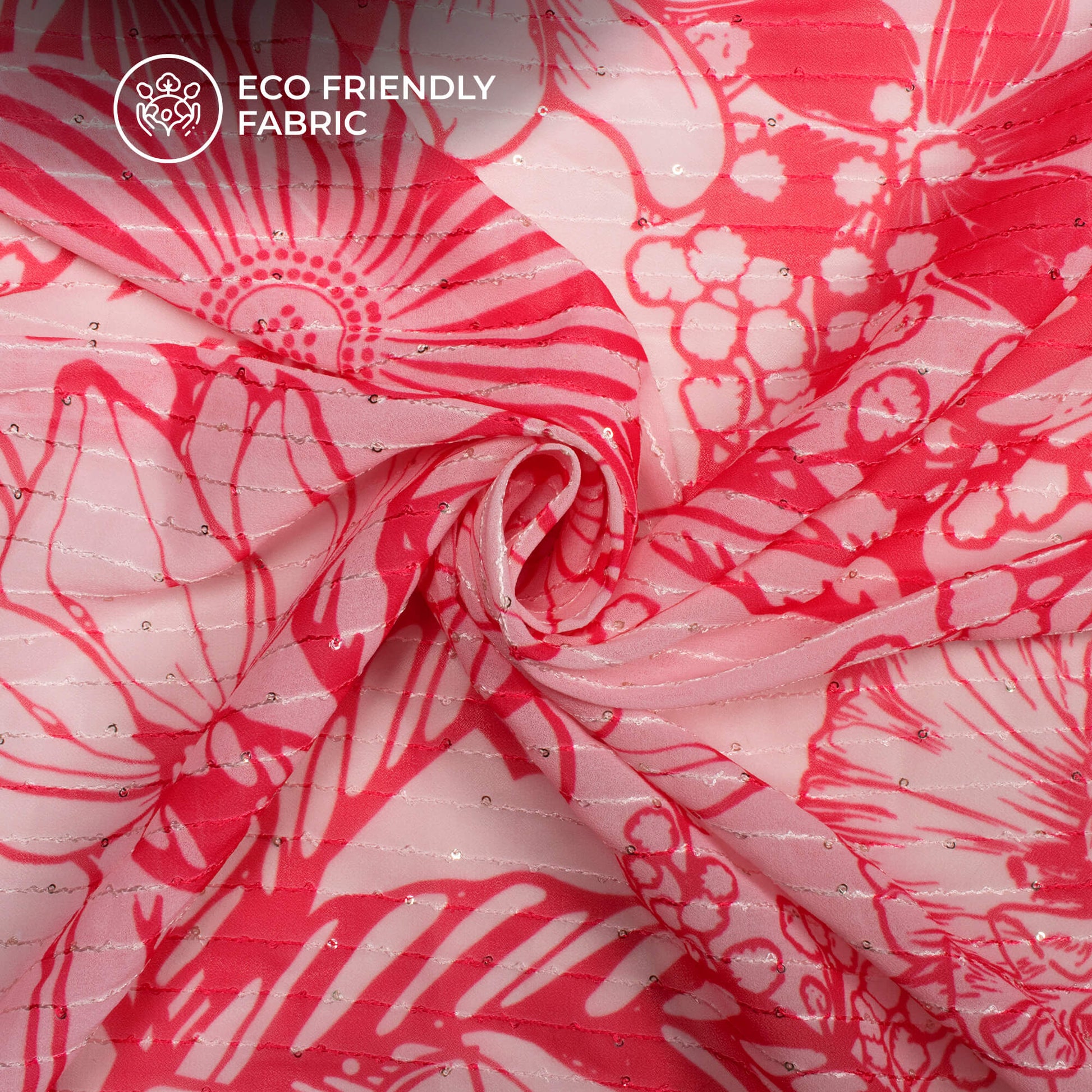 Blessed by a crisp and gracious fall, Fabcurate's Georgette Sequins Fabric is available in a variety of original designs ranging from floral, shibori, bandhani, tie and dye, abstract and more. The crispy and crimpled sensation of this fabric gives it a unique touch and sensation. Design Your Own chic midis, slit dresses, bell sleeve crop tops, maxis, sarees, suits and even clutches, wallets, and more.