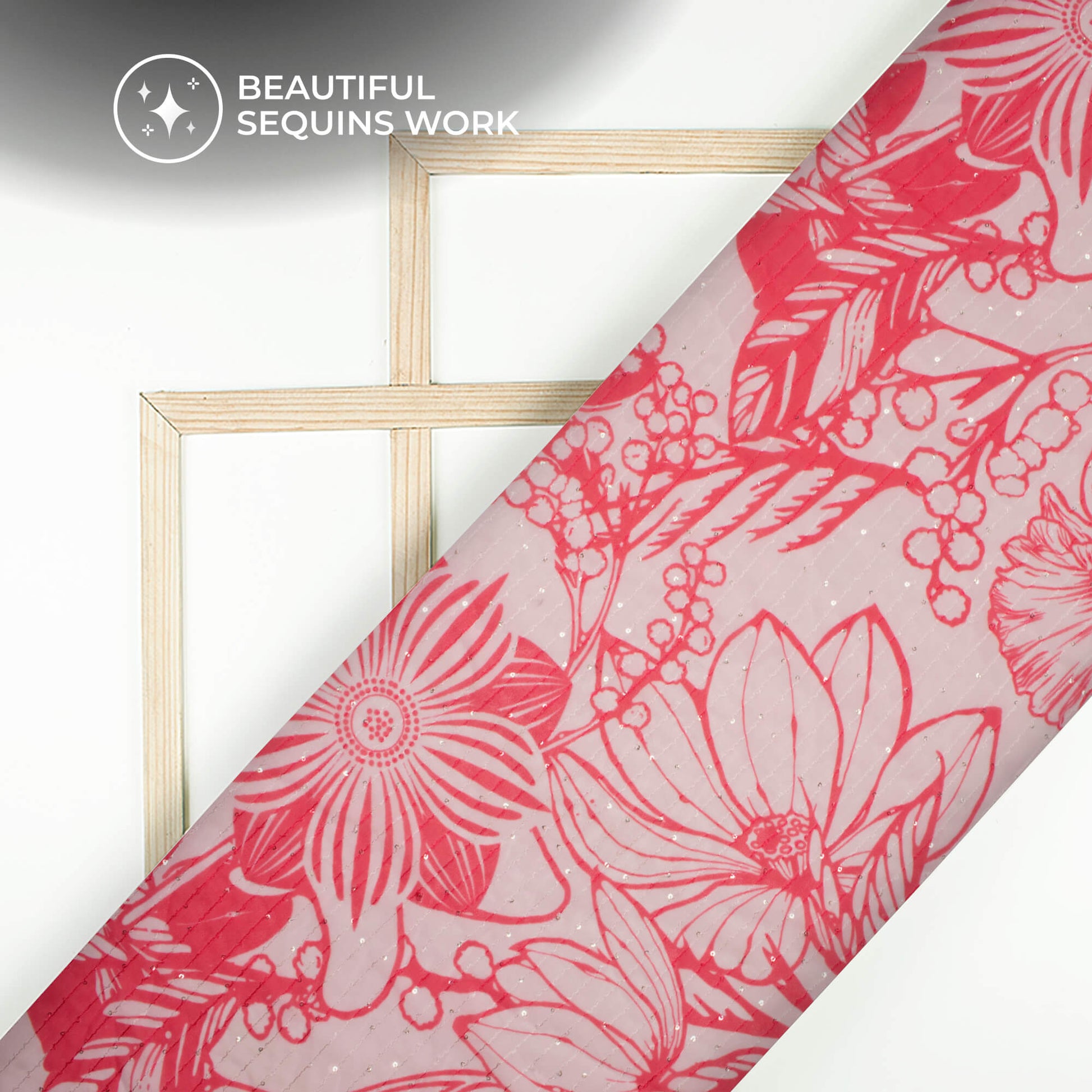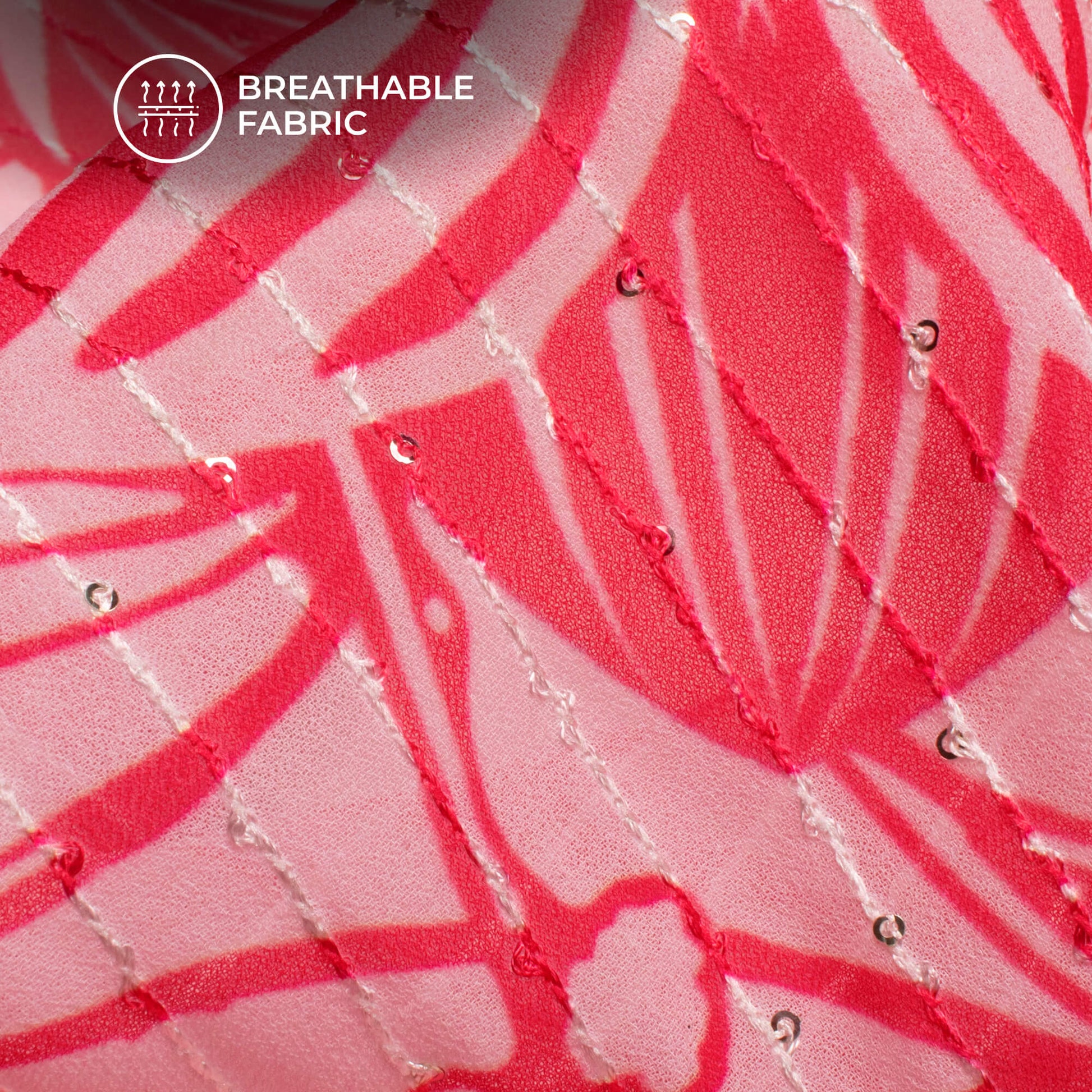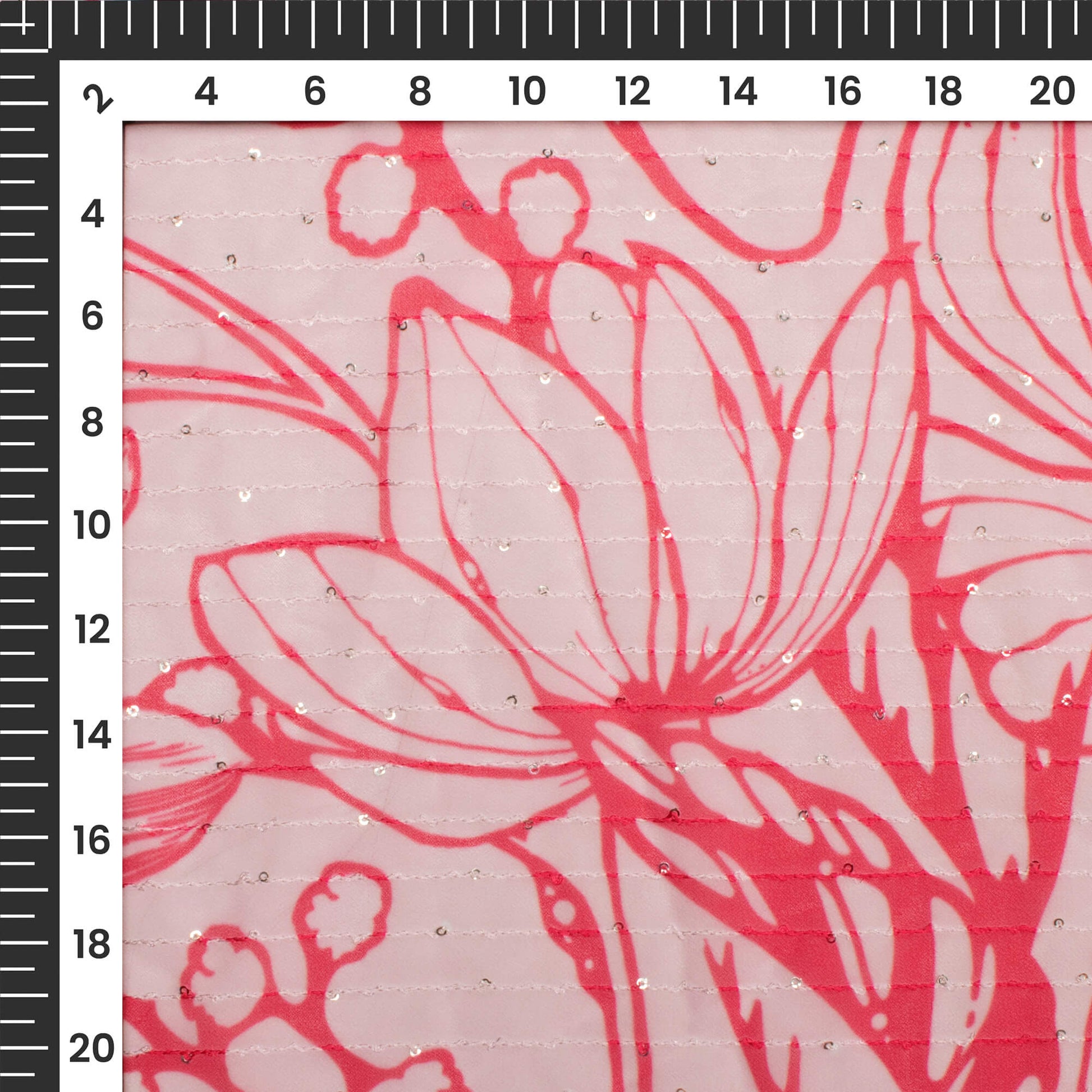 Trendy Red Floral Digital Print Premium Sequins Georgette Fabric