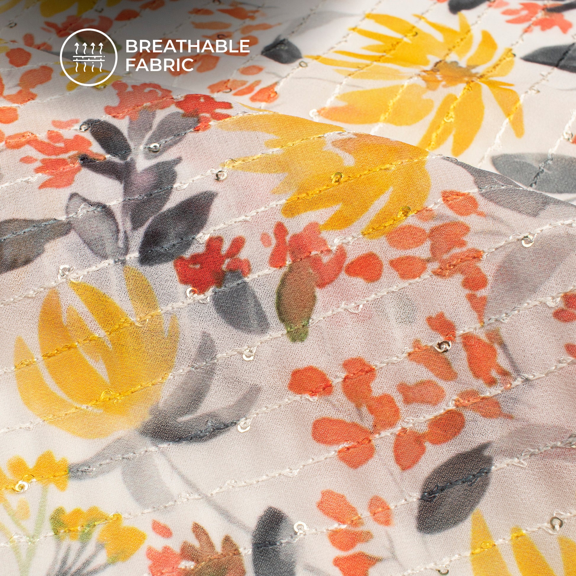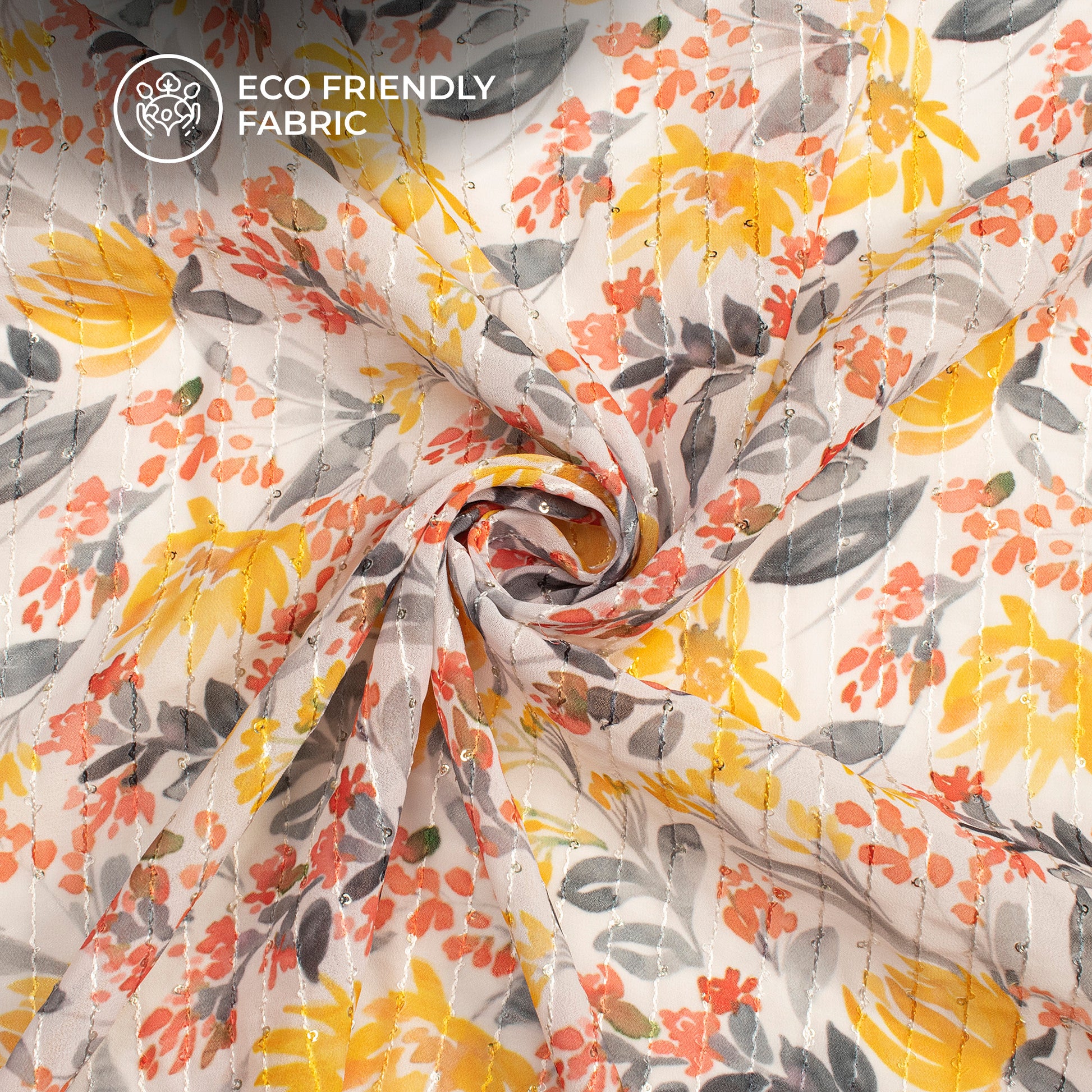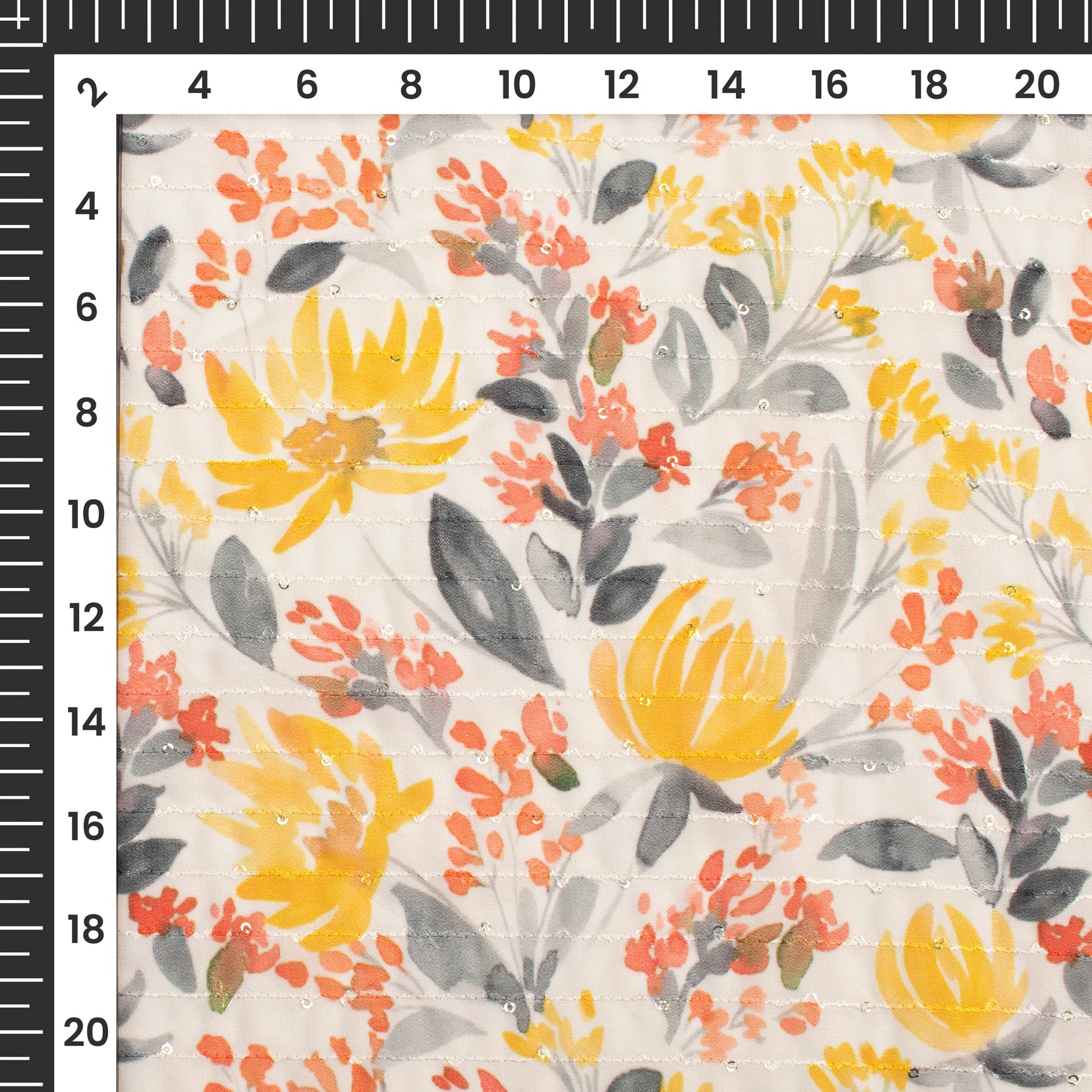 Yellow Floral Digital Print Premium Sequins Georgette Fabric