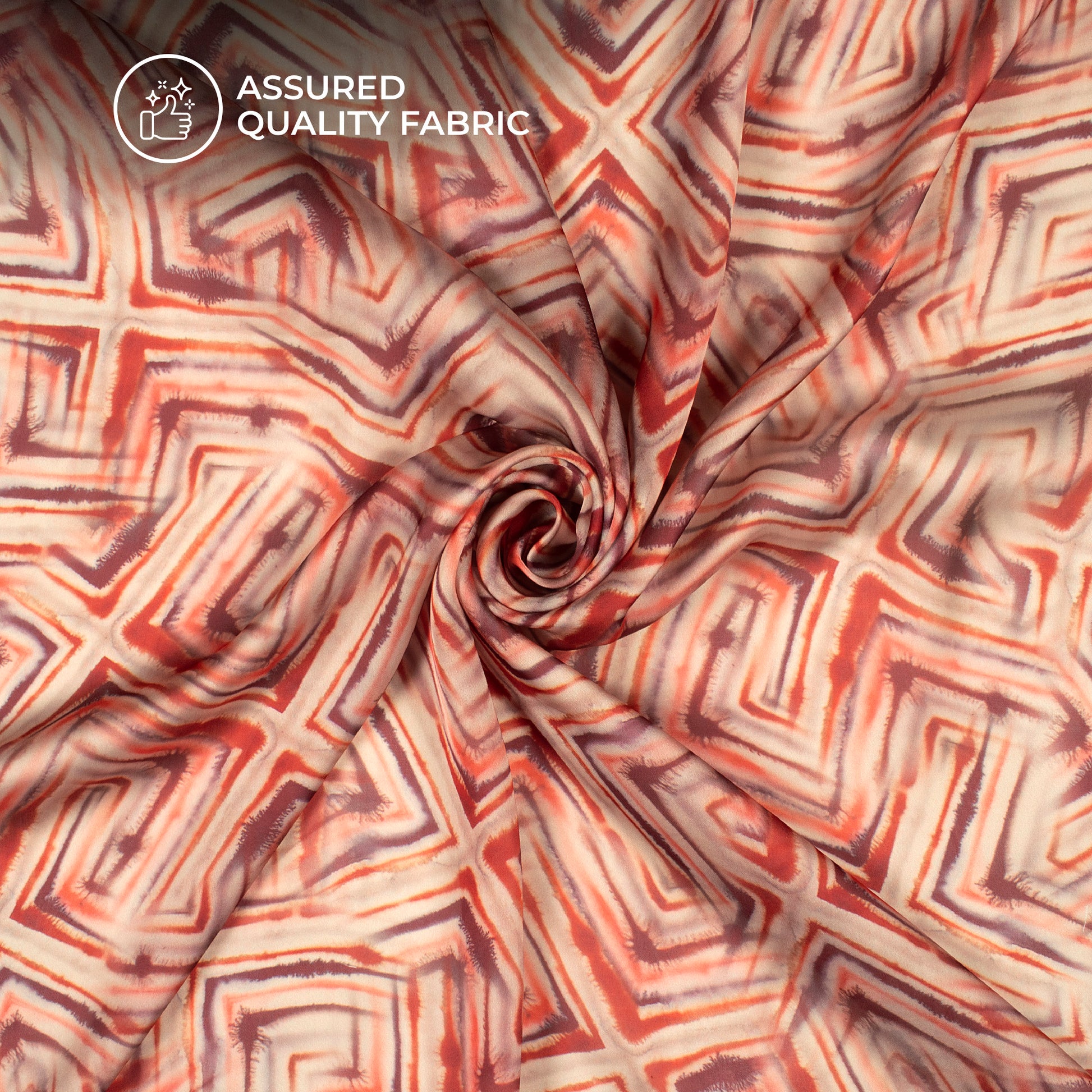Beige Cream Geometric Digital Print Georgette Satin Fabric