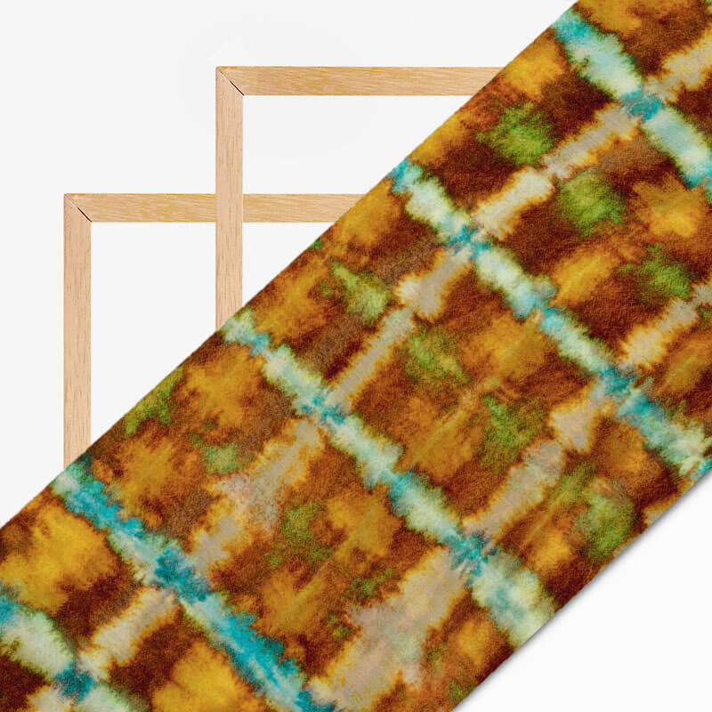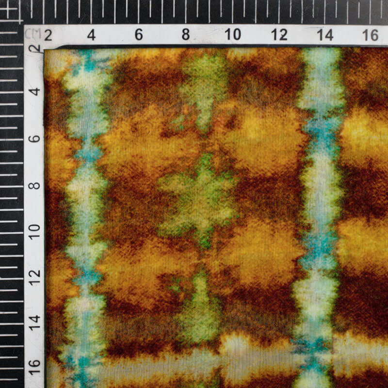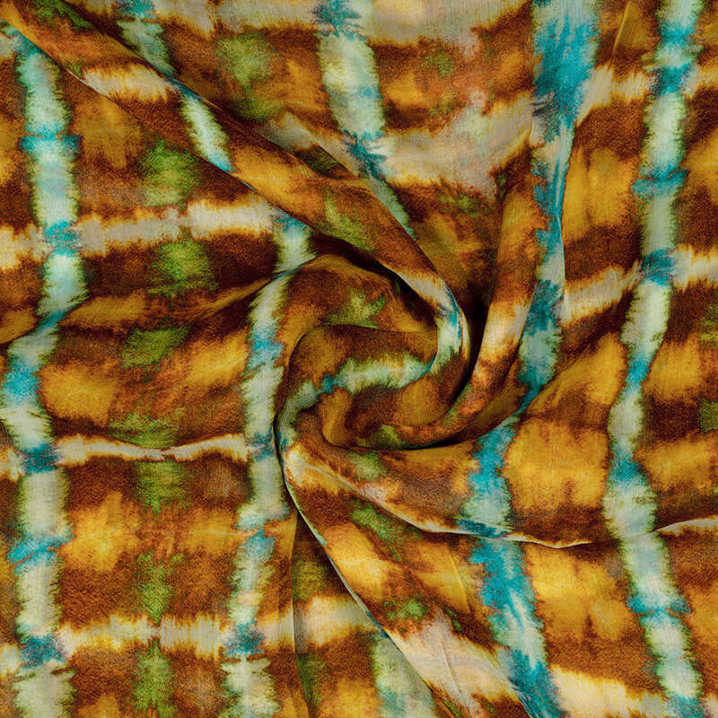 Brown And Blue Abstract Pattern Digital Print Bemberg Chiffon Fabric