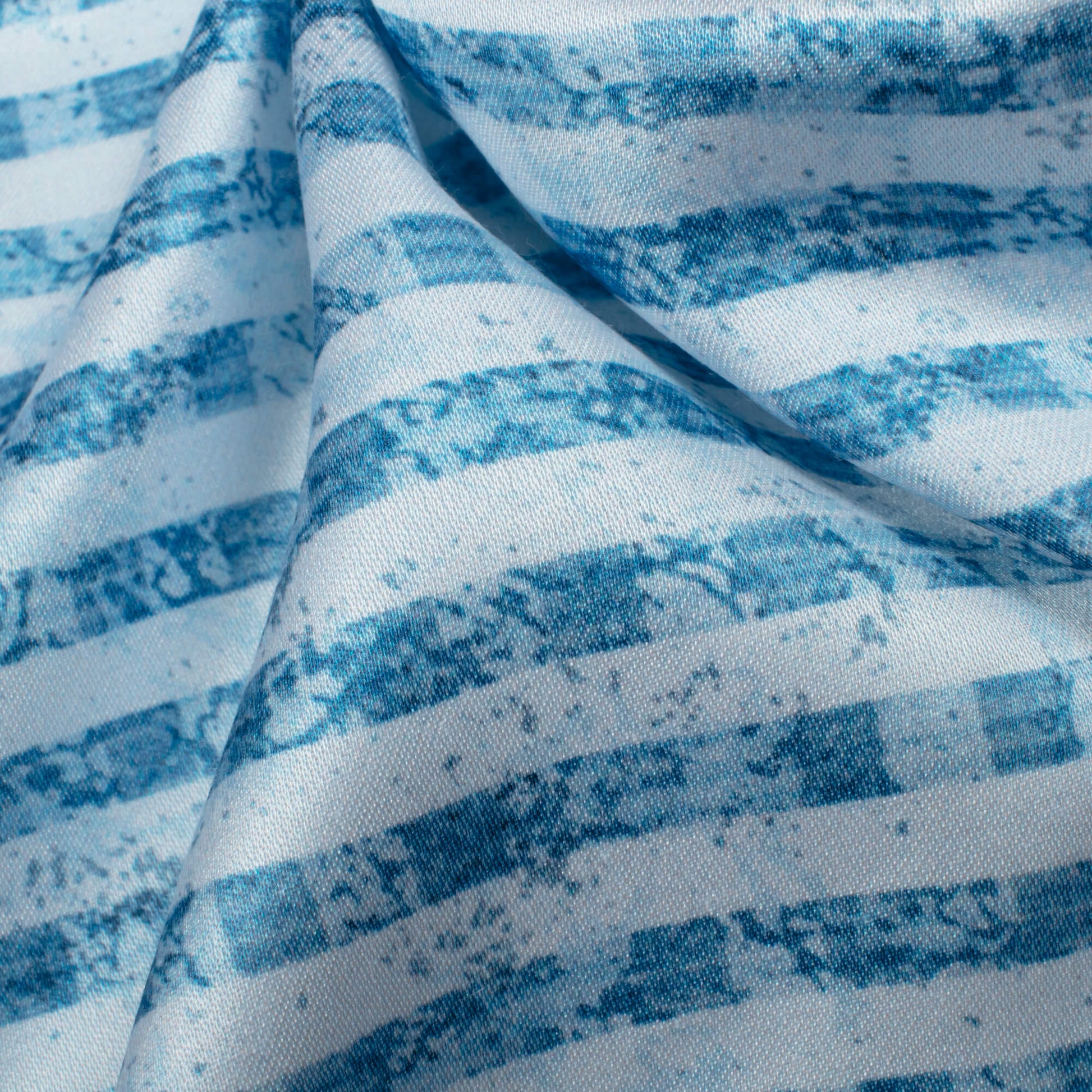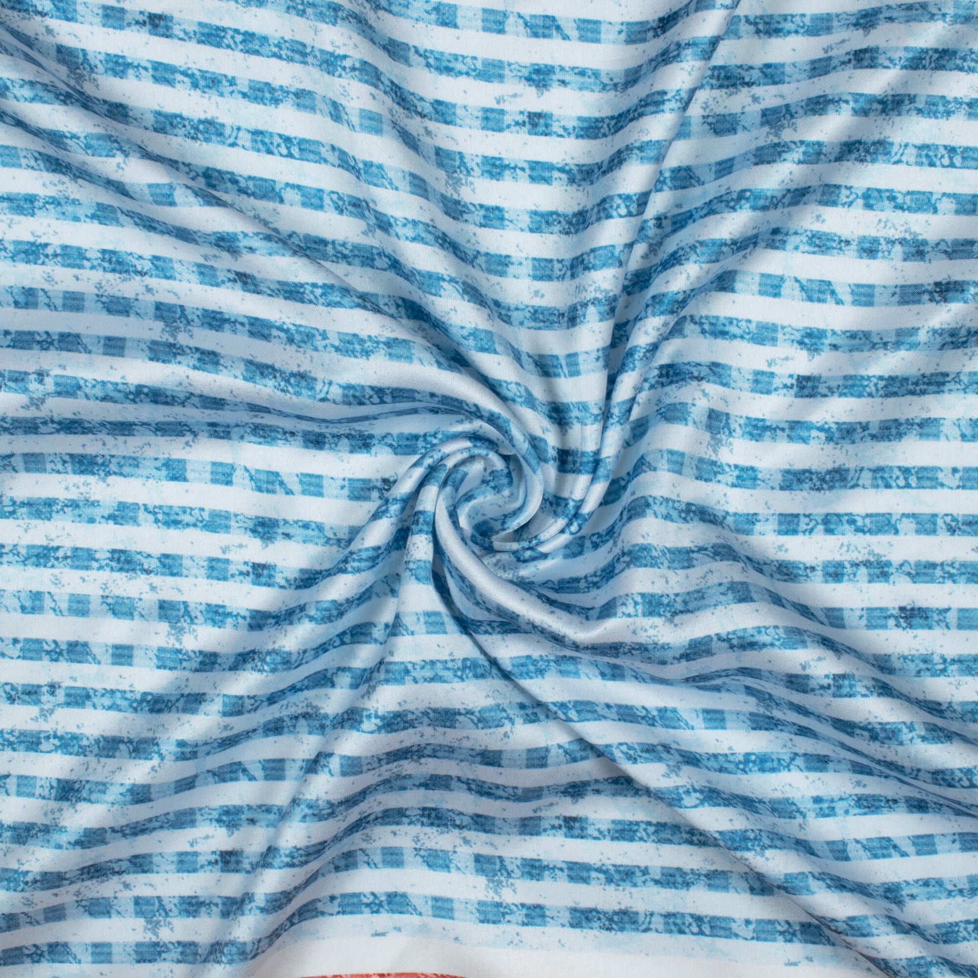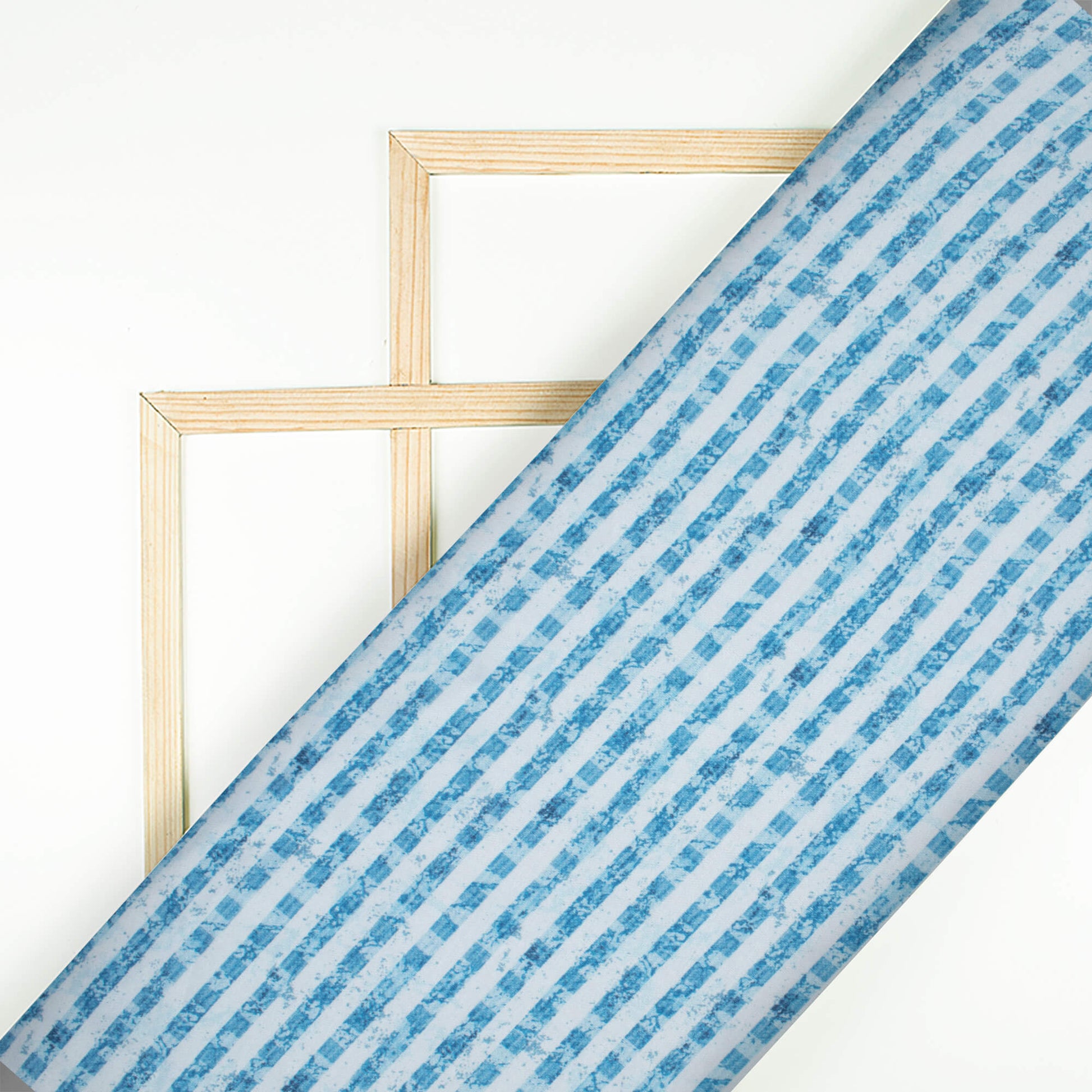 Carolina Blue And White Stripes Pattern Digital Print Crepe Silk Fabric