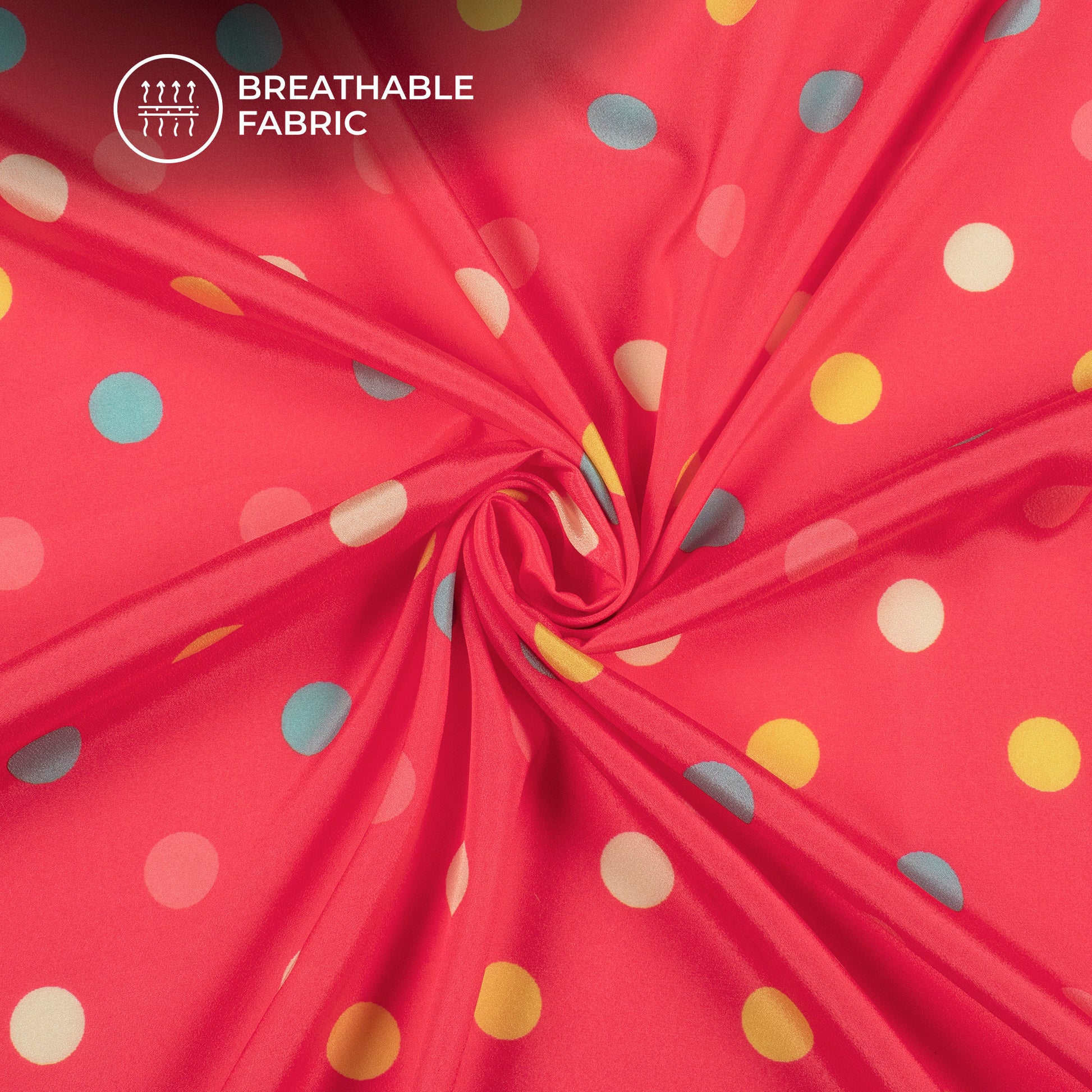 Fiery Rose Polka Dots Pattern Digital Print Crepe Silk Fabric