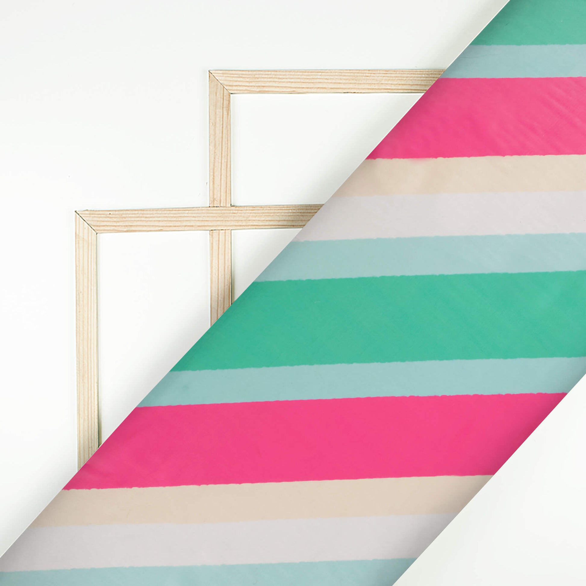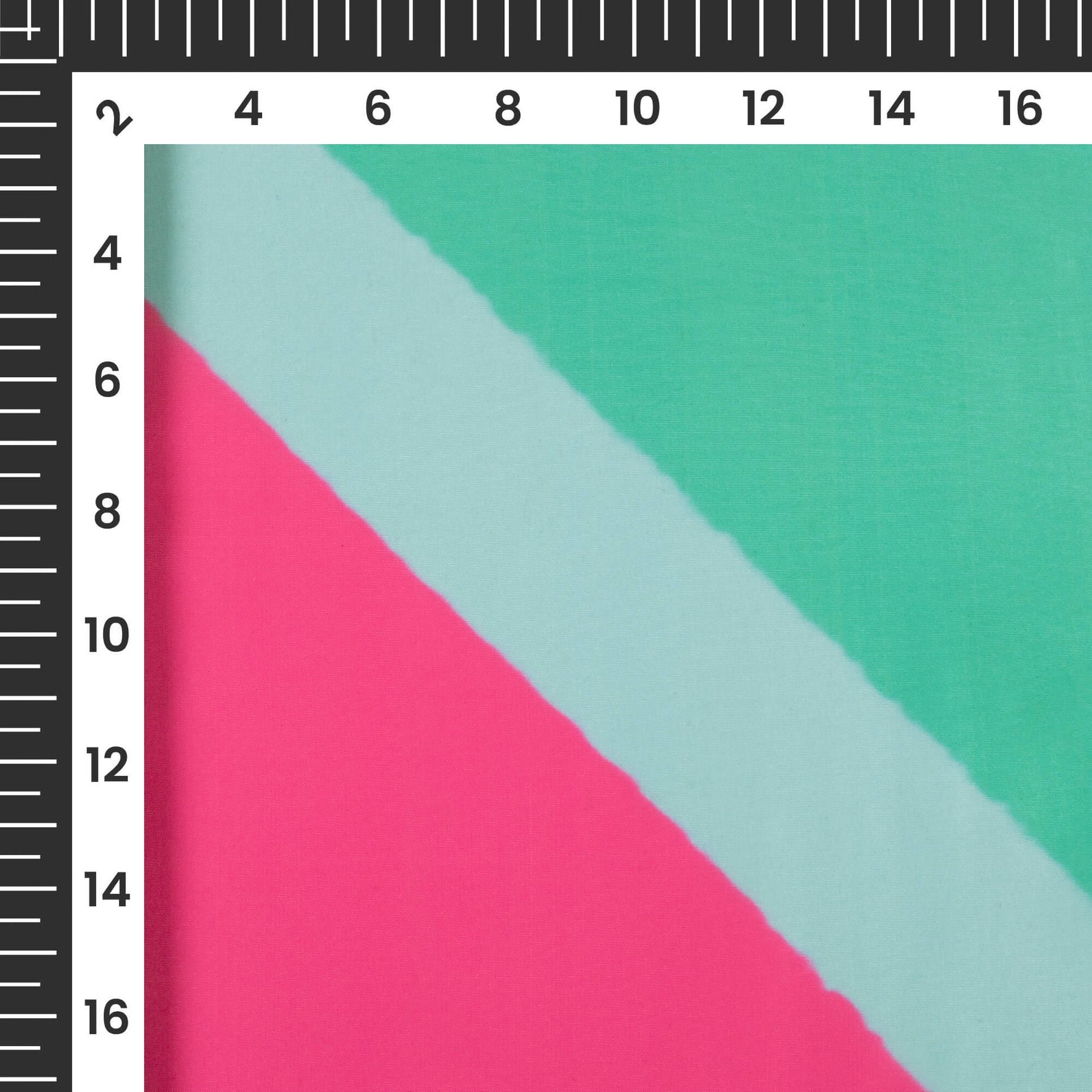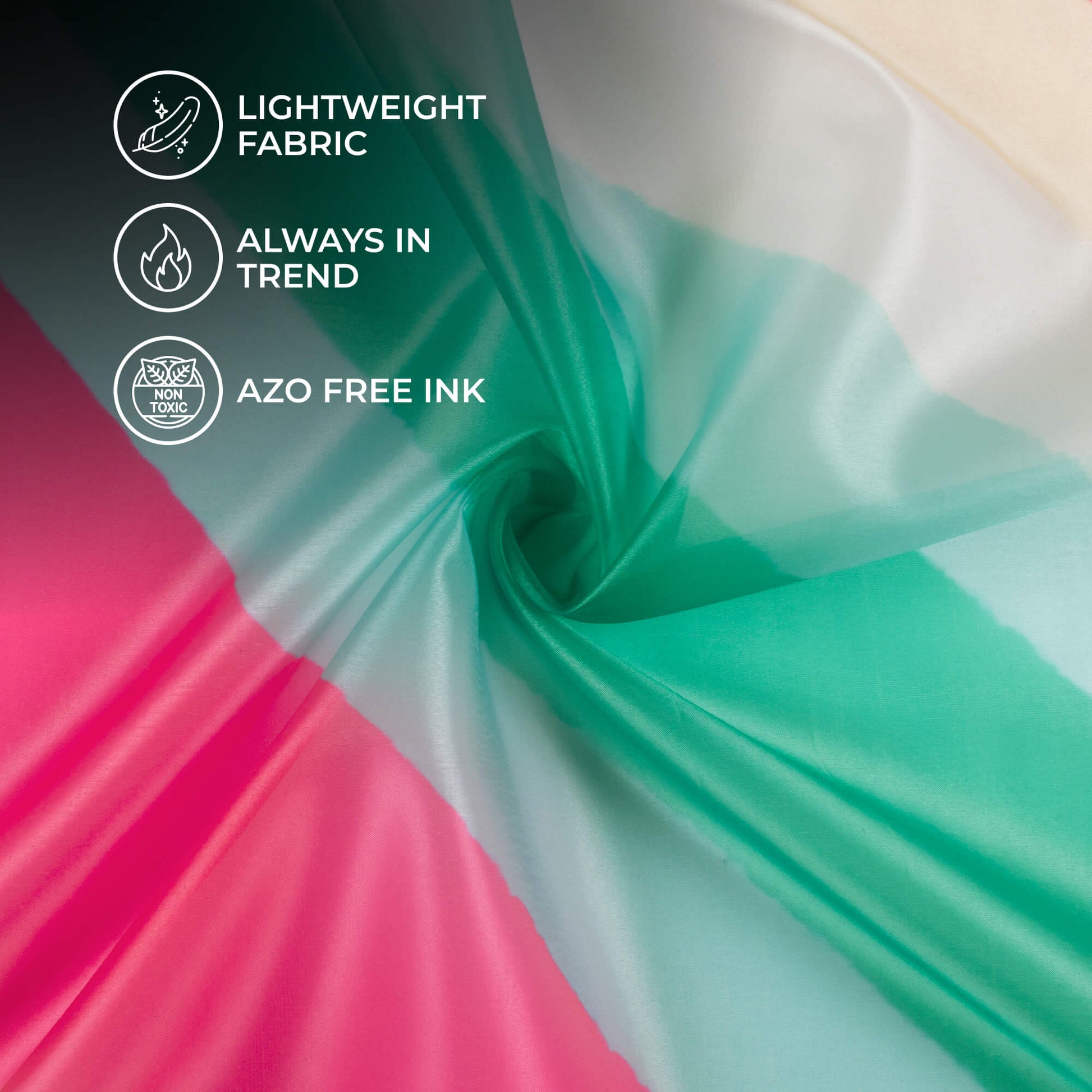 Fuchsia And Mint Green Leheriya Pattern Digital Print Organza Satin Fabric