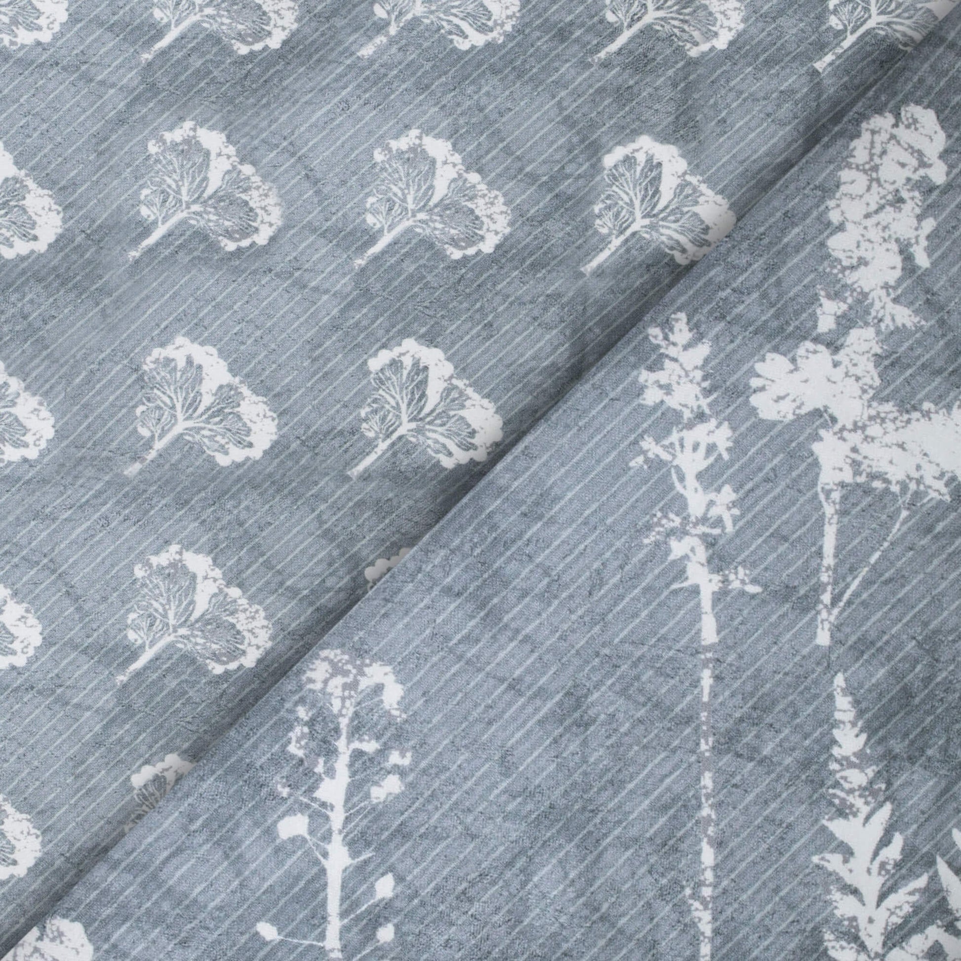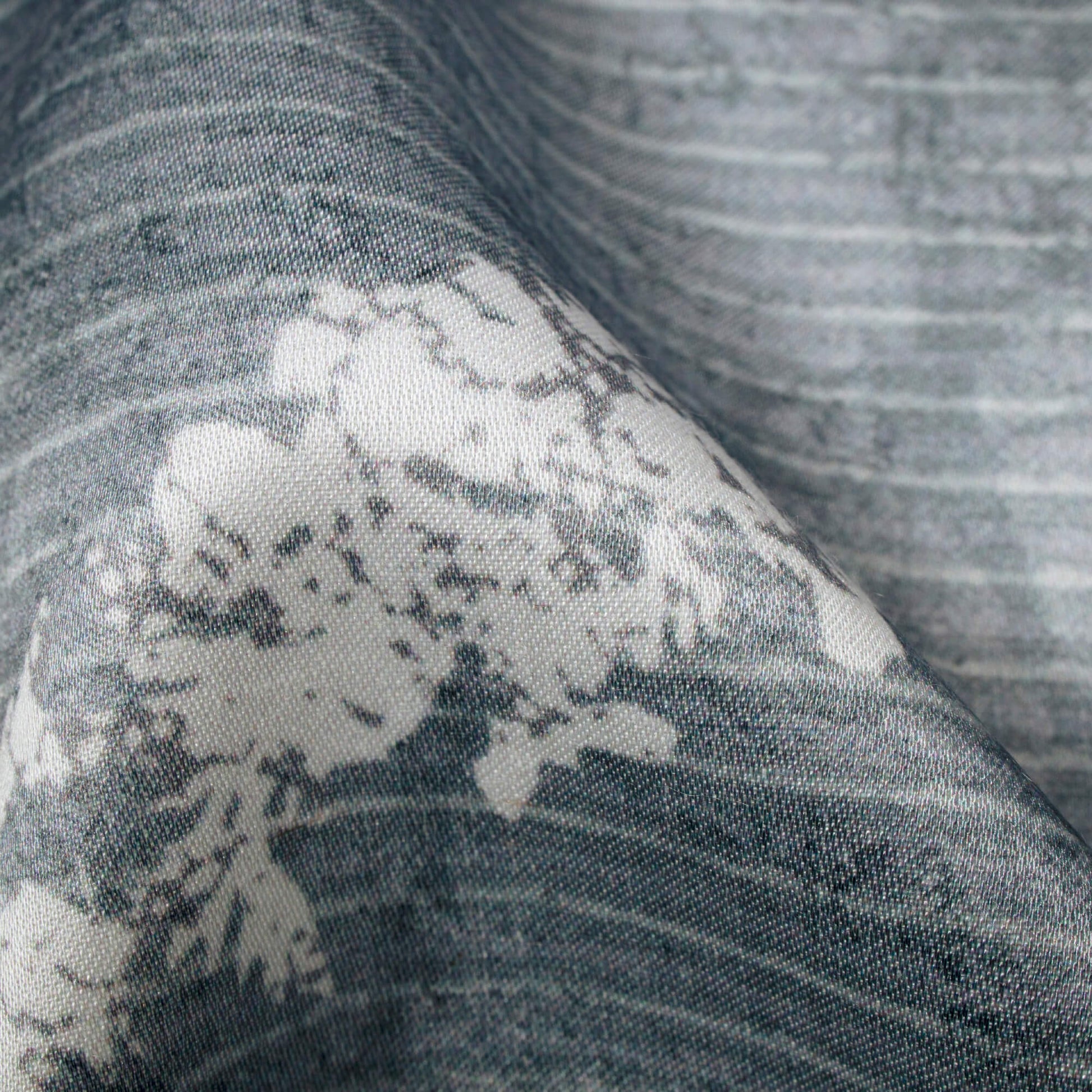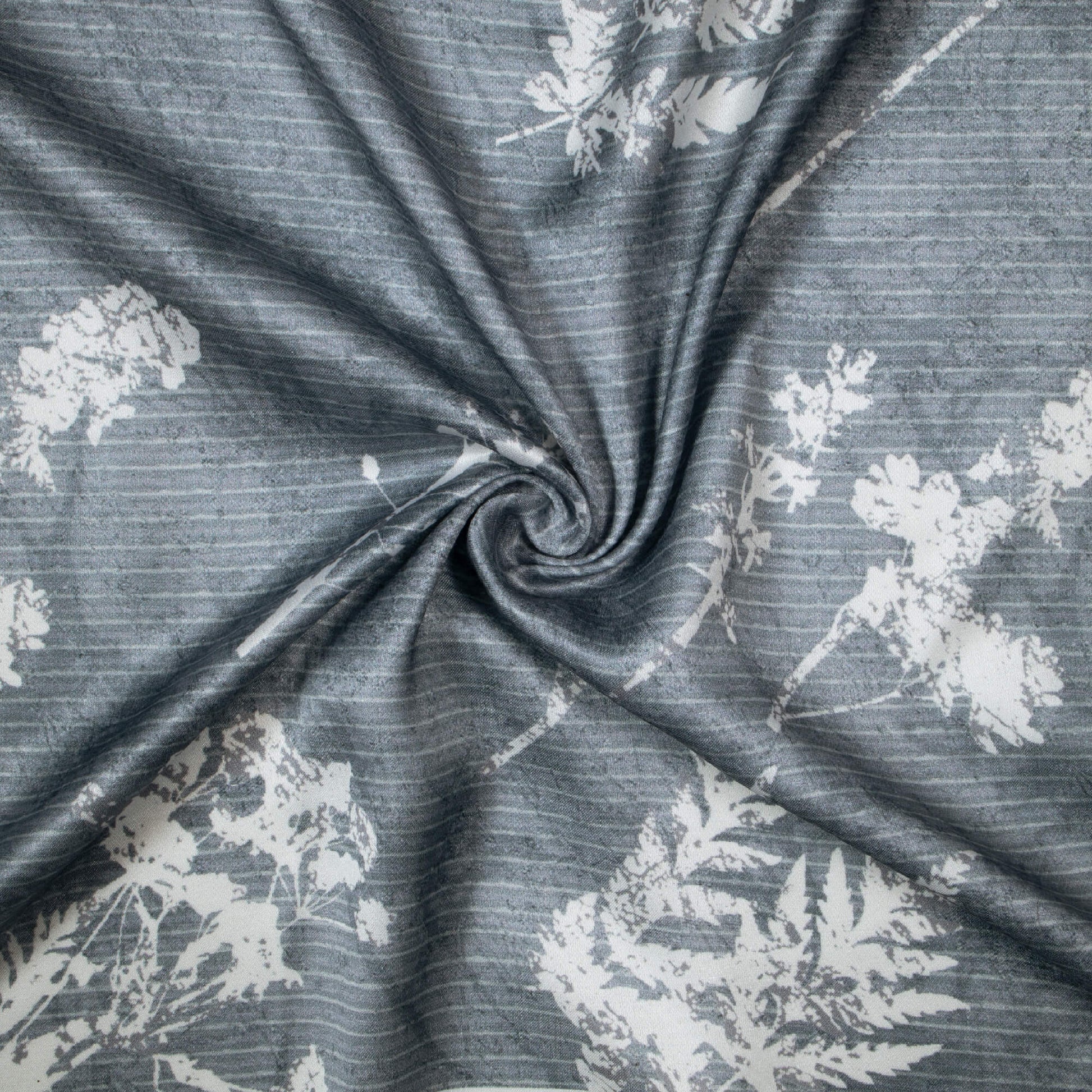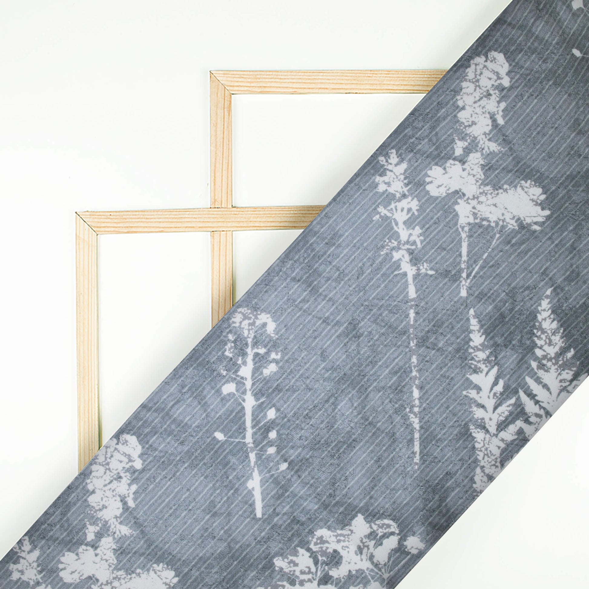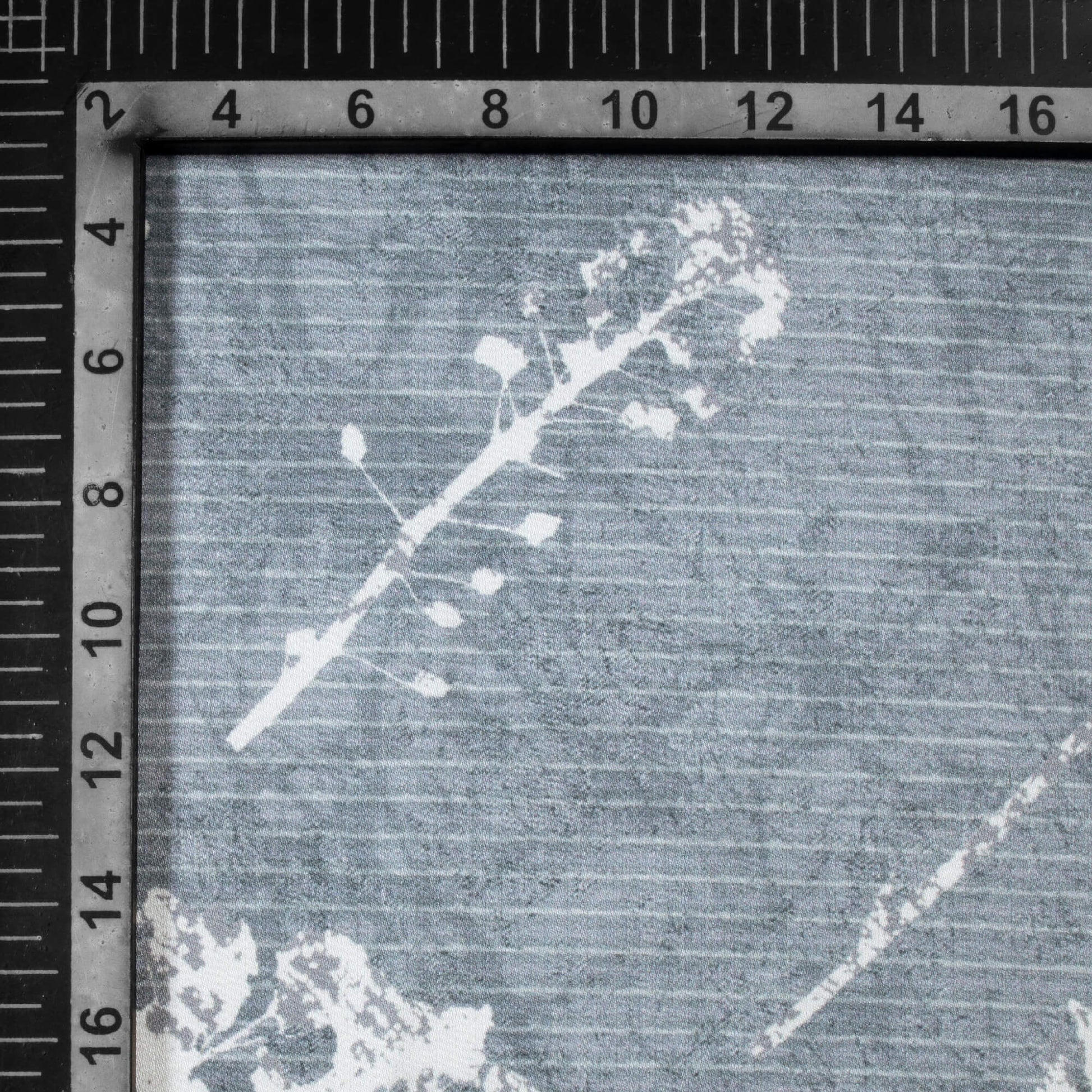 Grey And White Leaf Pattern Digital Print Crepe Silk Fabric