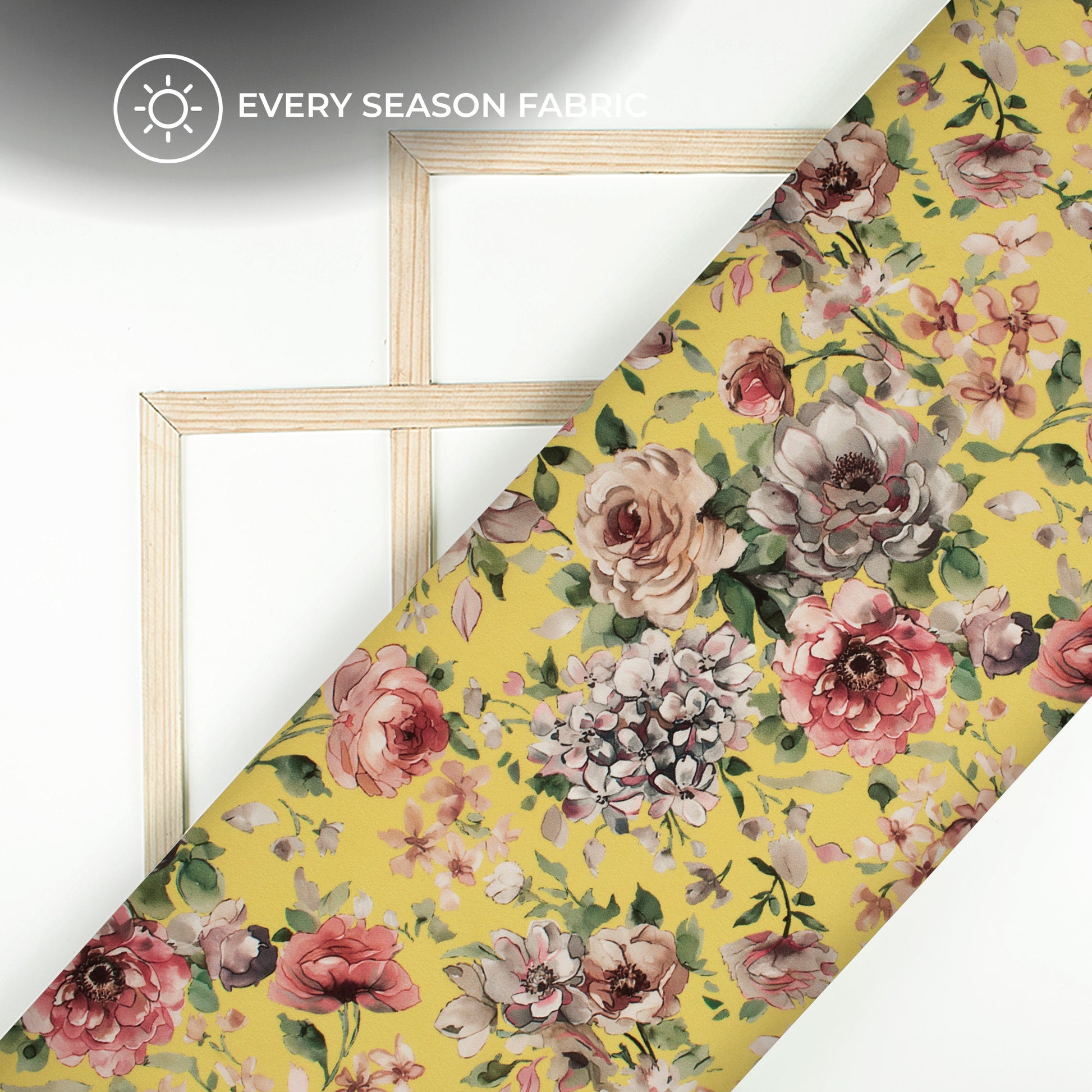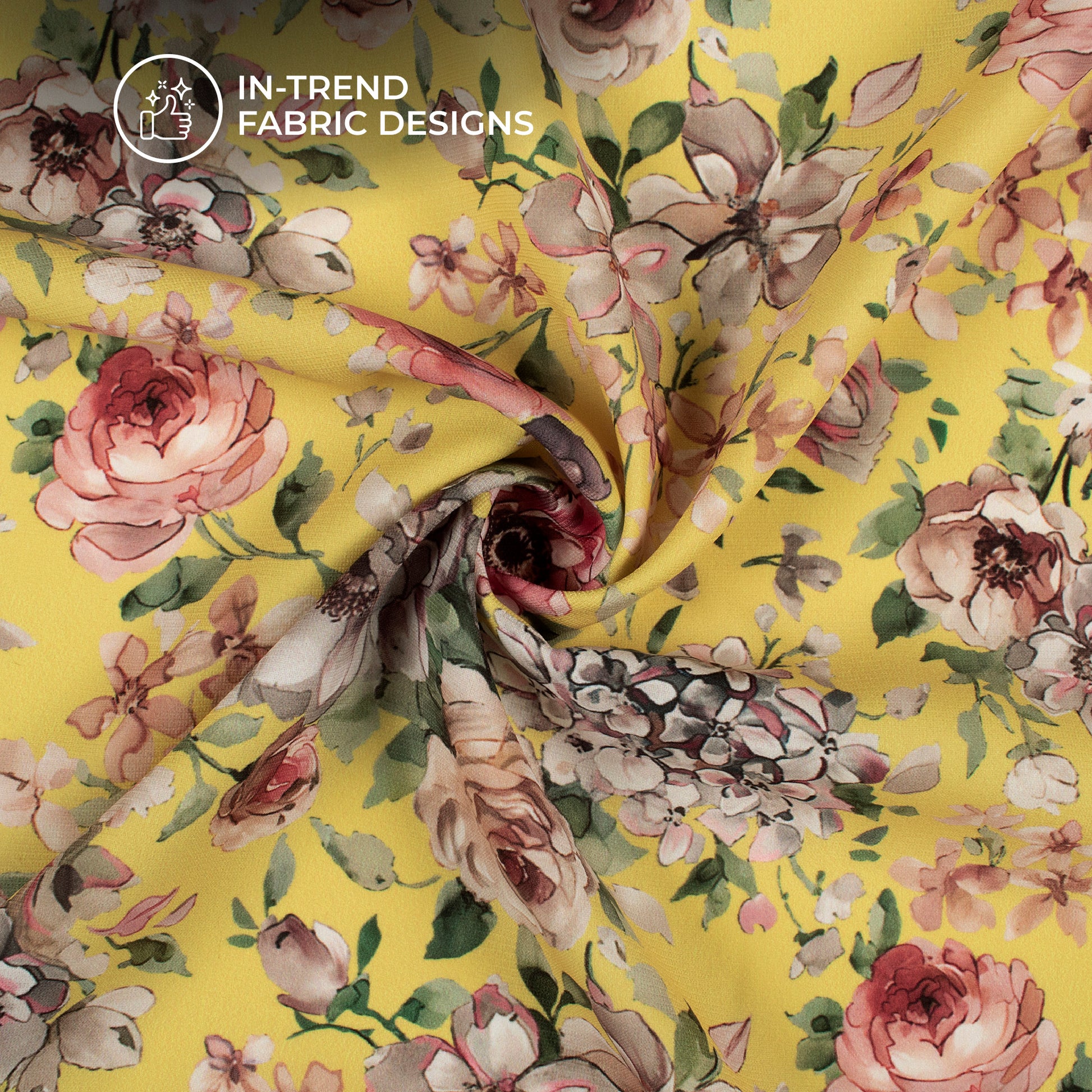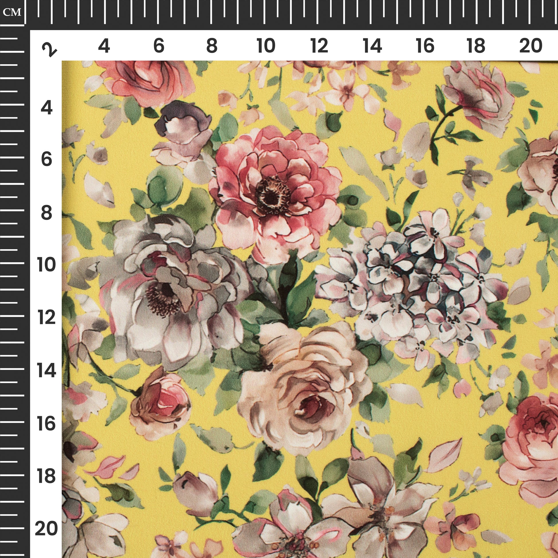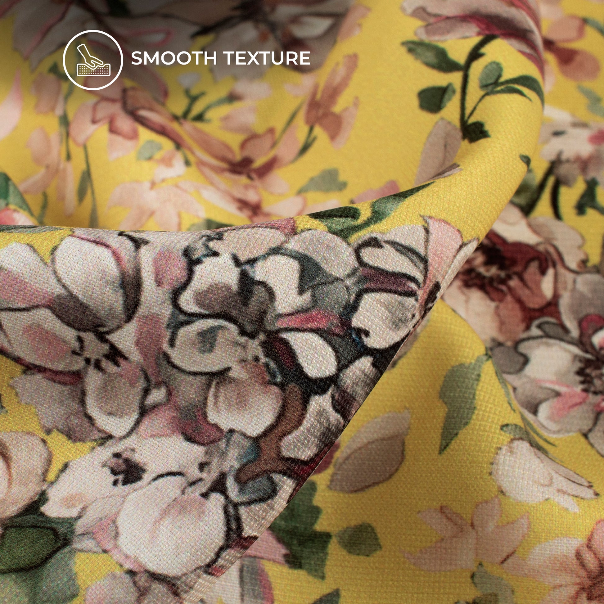 Hippi Pink And Yellow Floral Digital Print BSY Crepe Fabric