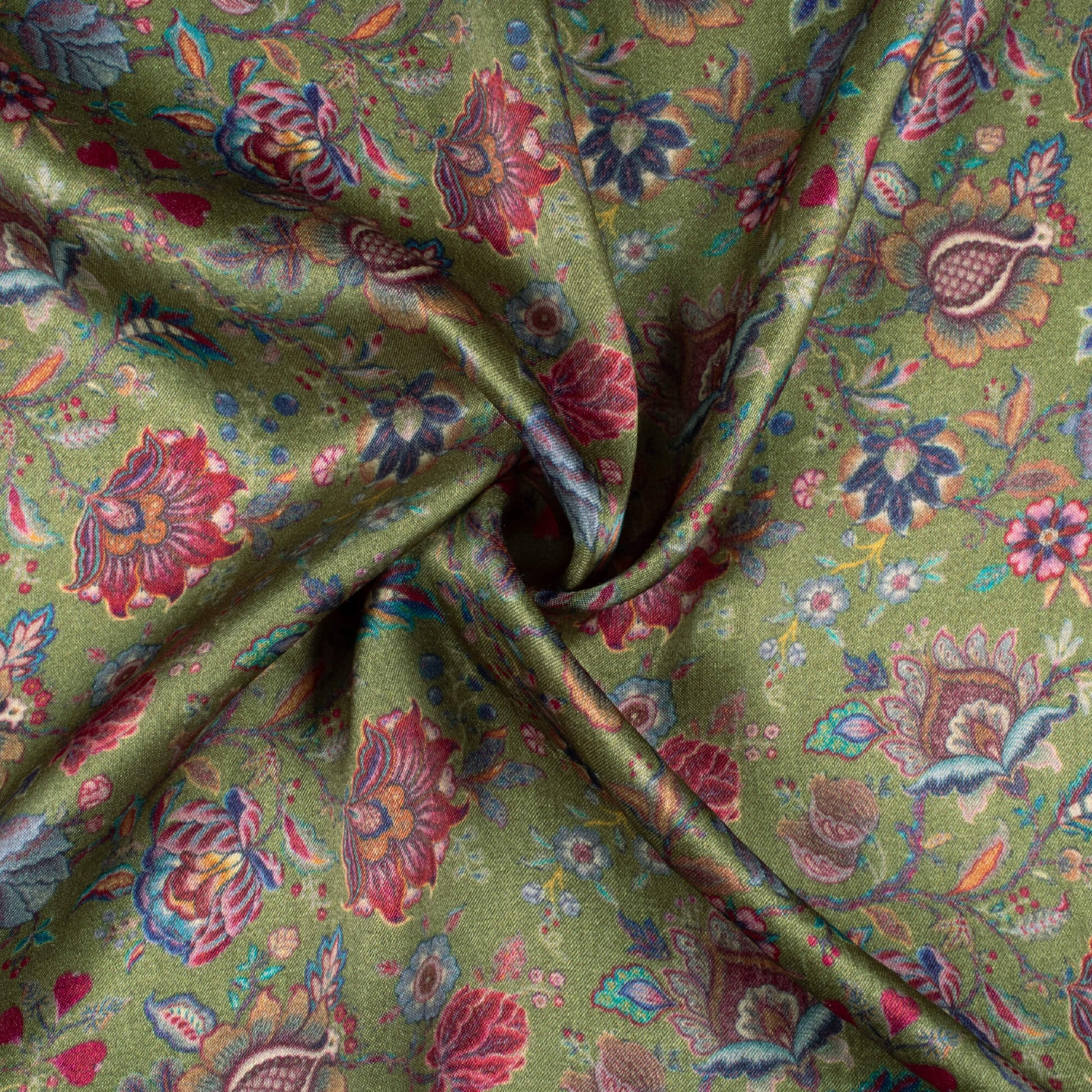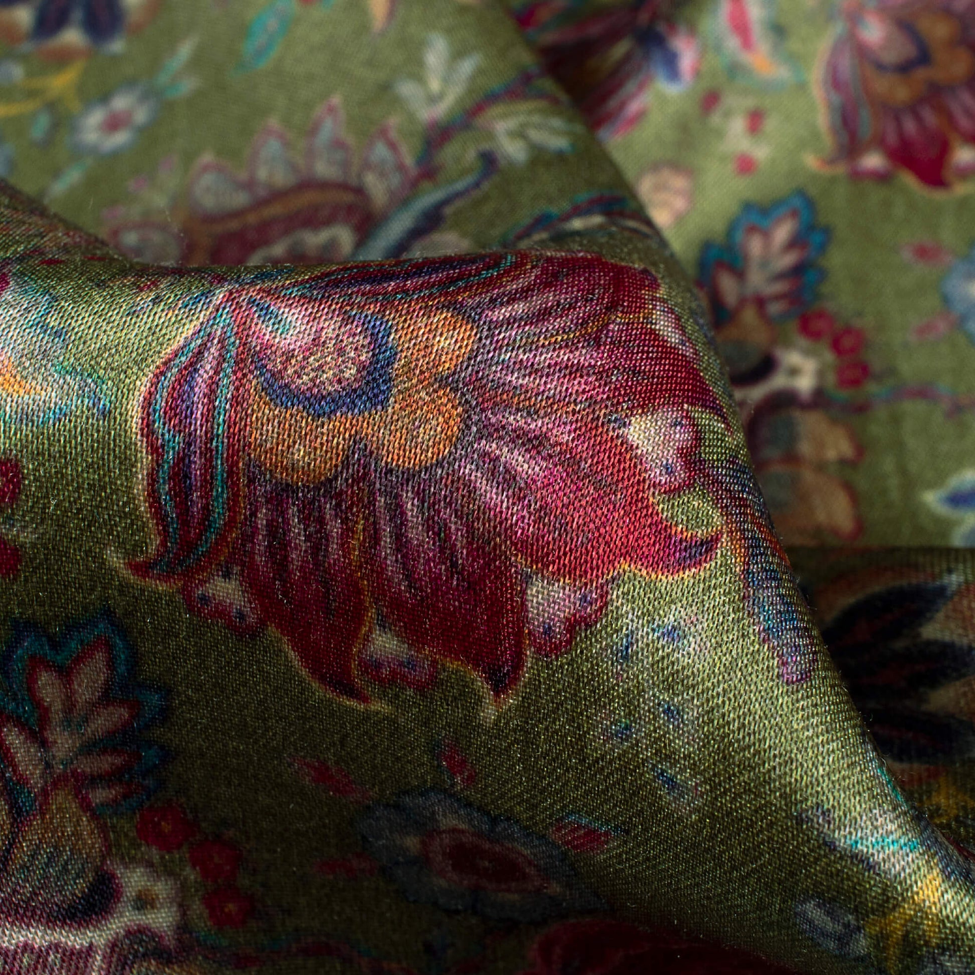 Hunter Green And Deep Pink Floral Pattern Digital Print Viscose Gaji Silk Fabric