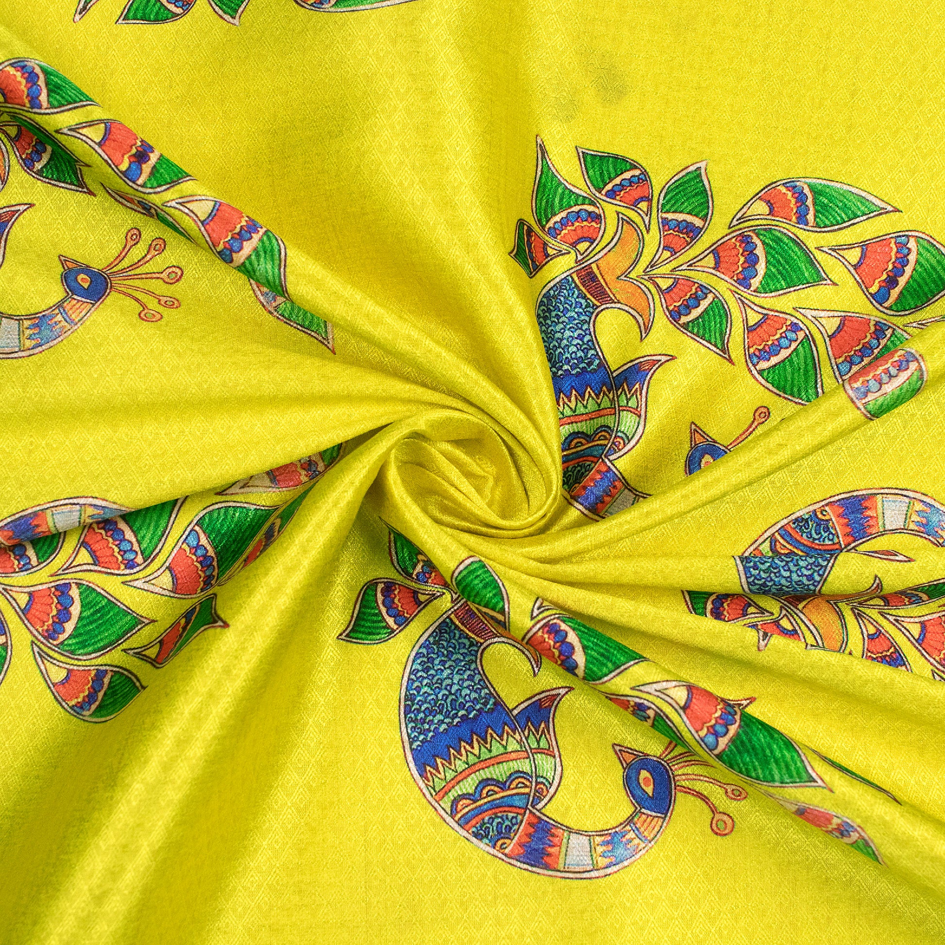 Lemon Yellow Madhuvanii Jacquard Booti Art Silk Fabric (Width 56 Inches)