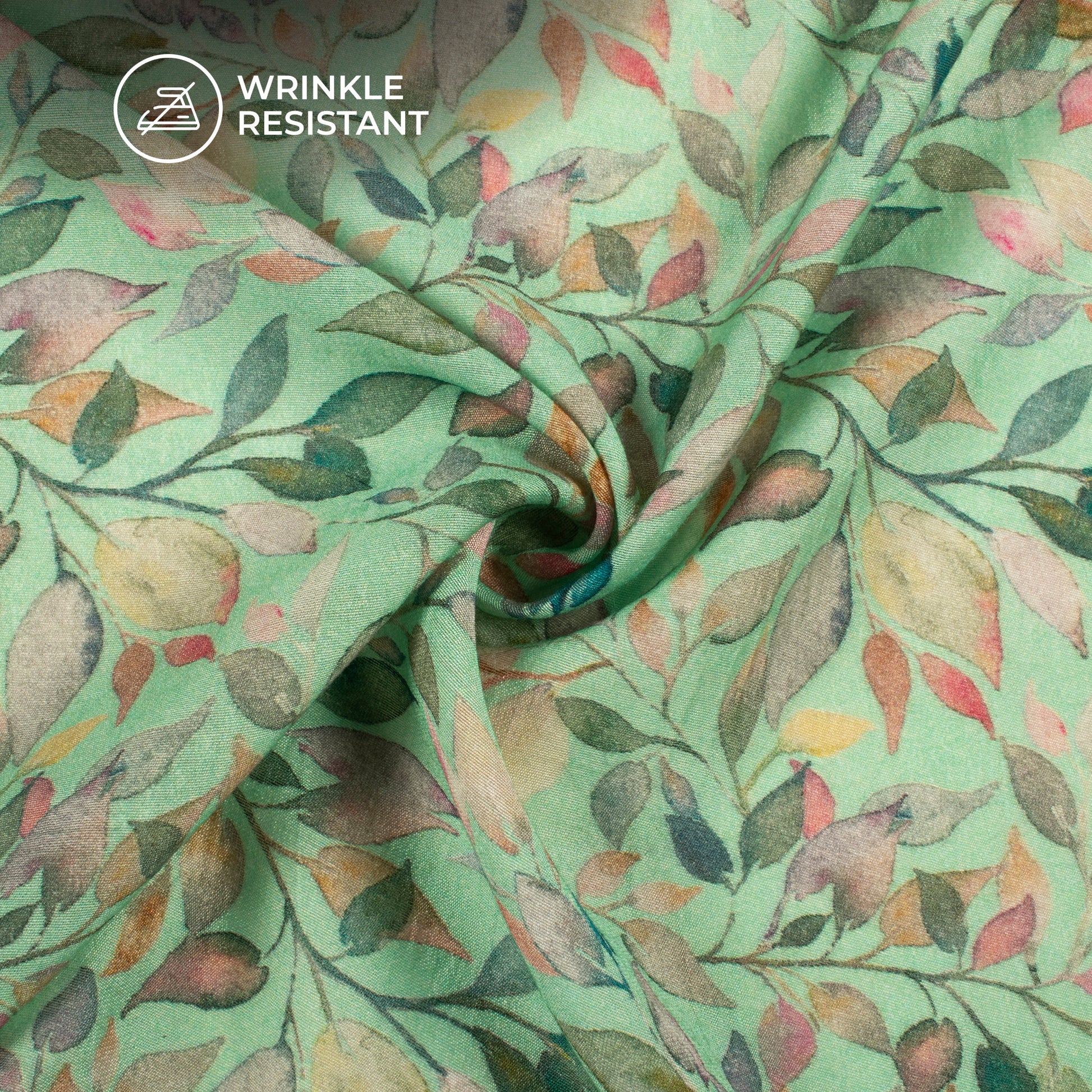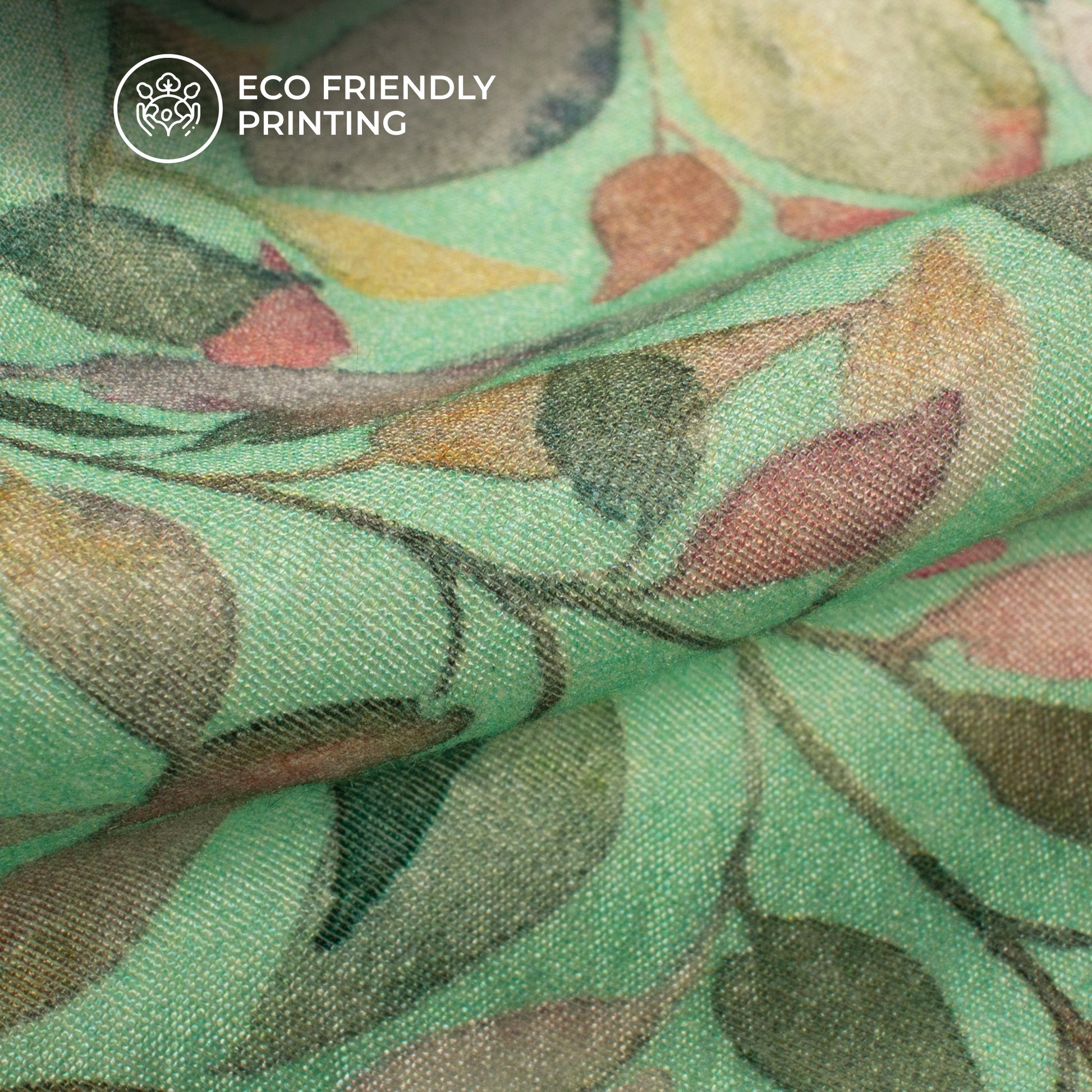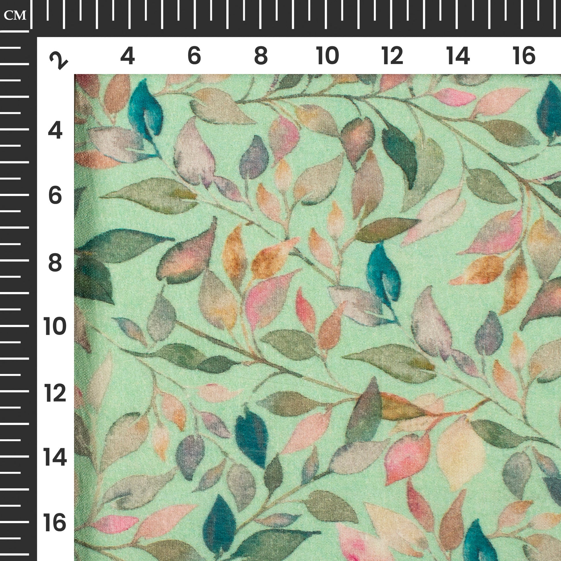 Mint Green And Pink Leaf Digital Print Viscose Chanderi Fabric