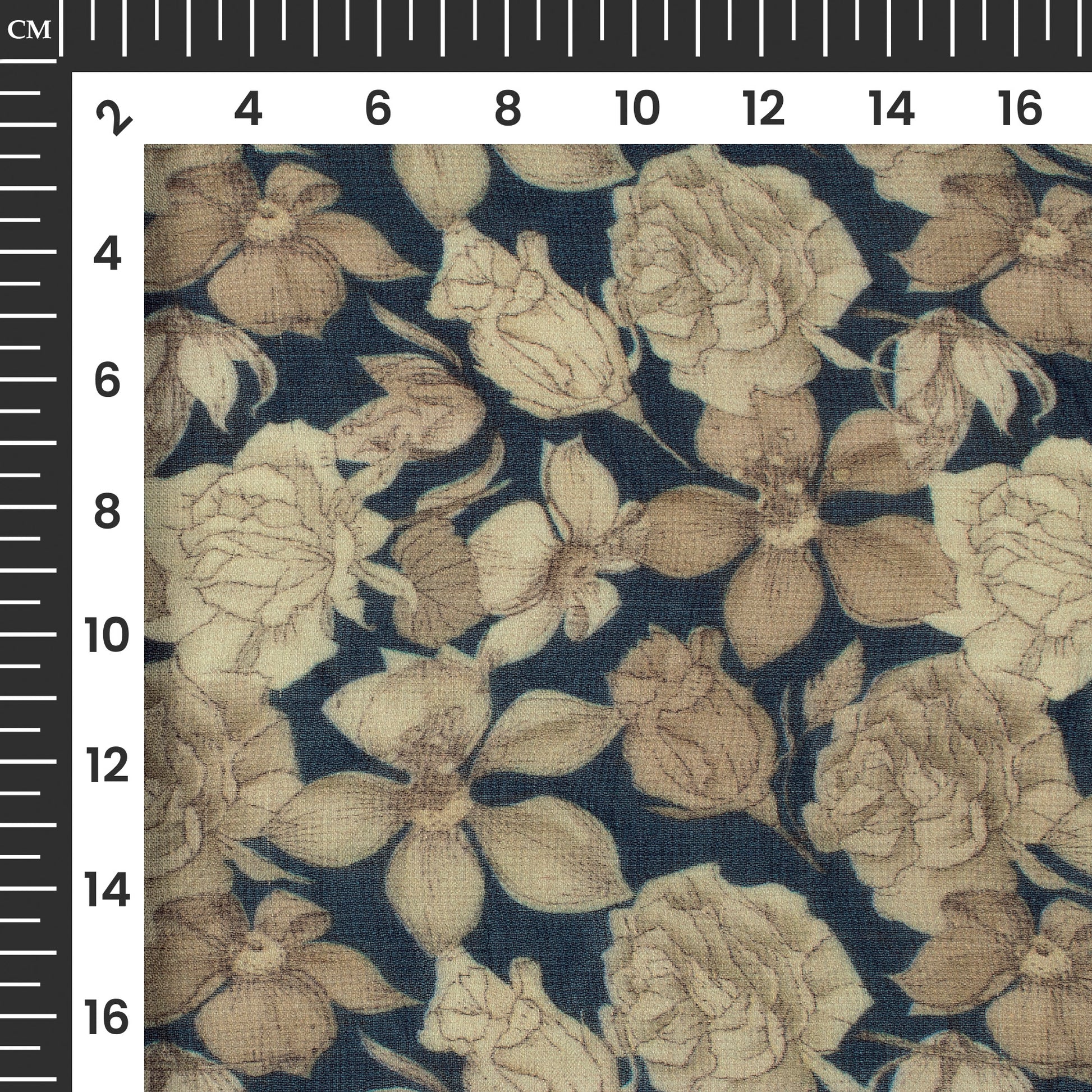 Navy Blue And Beige Floral Digital Print Pure Georgette Fabric