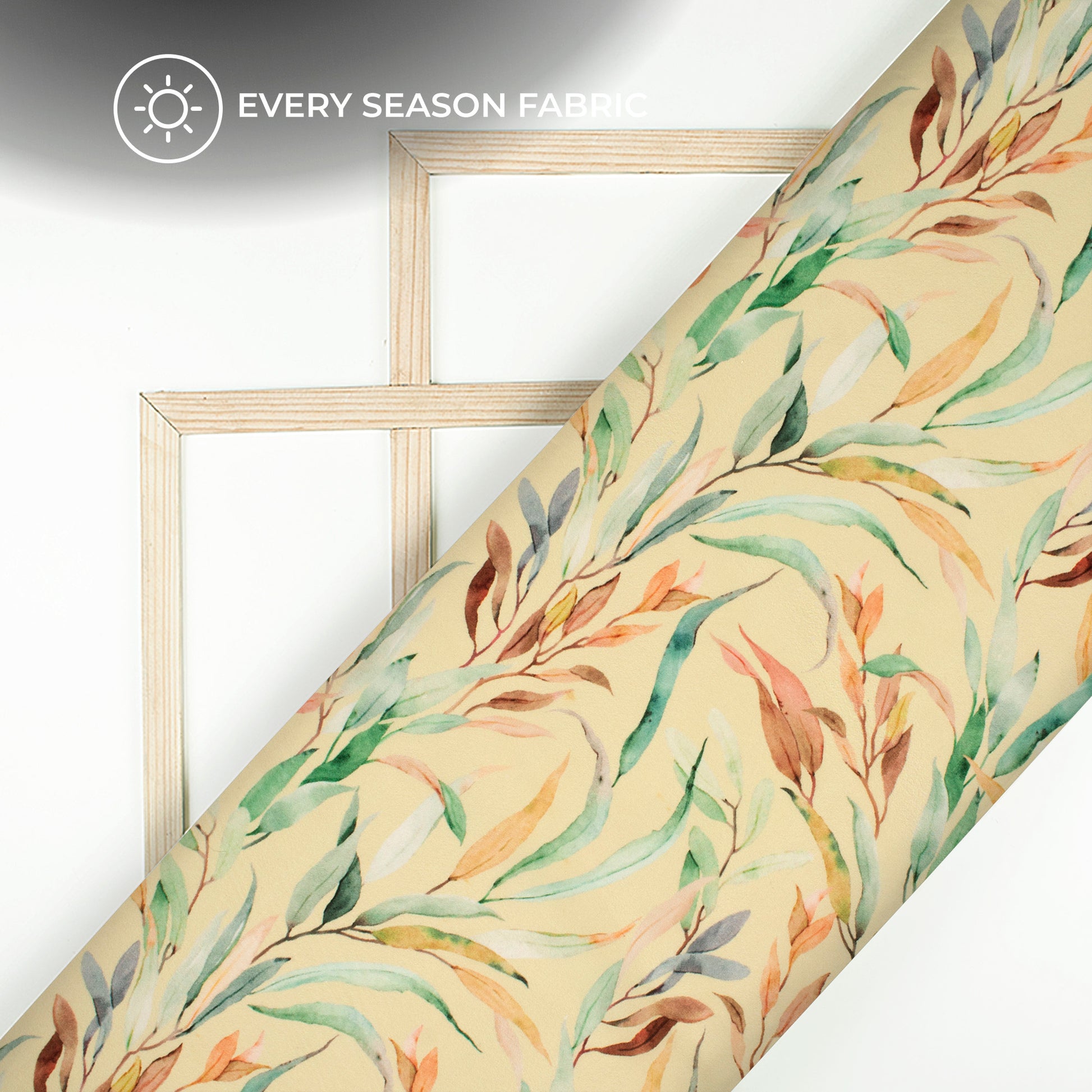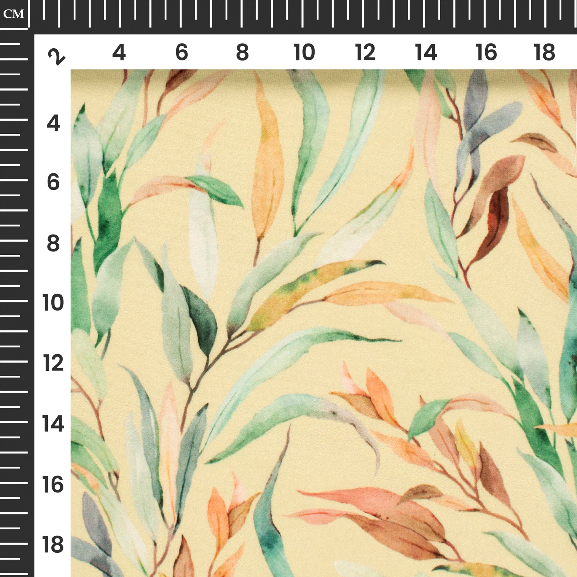 Pastel Yellow Leafage Digital Print BSY Crepe Fabric