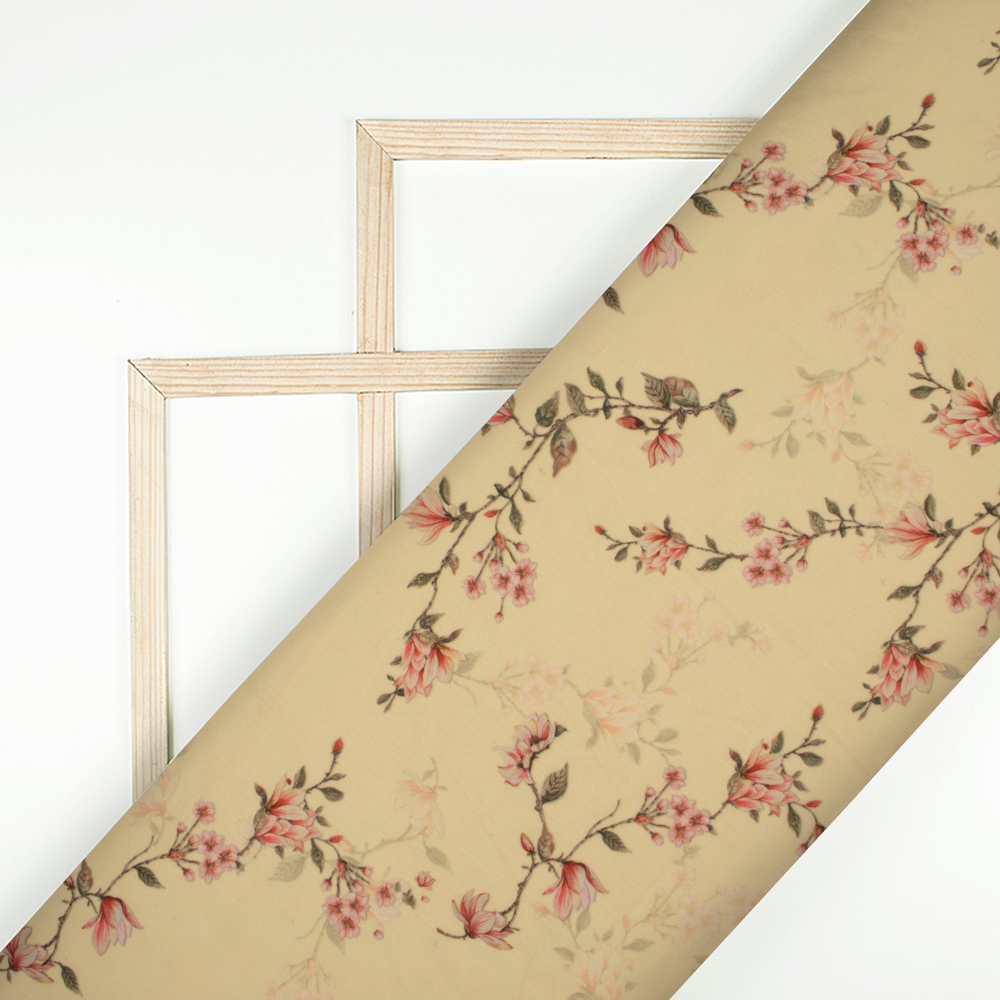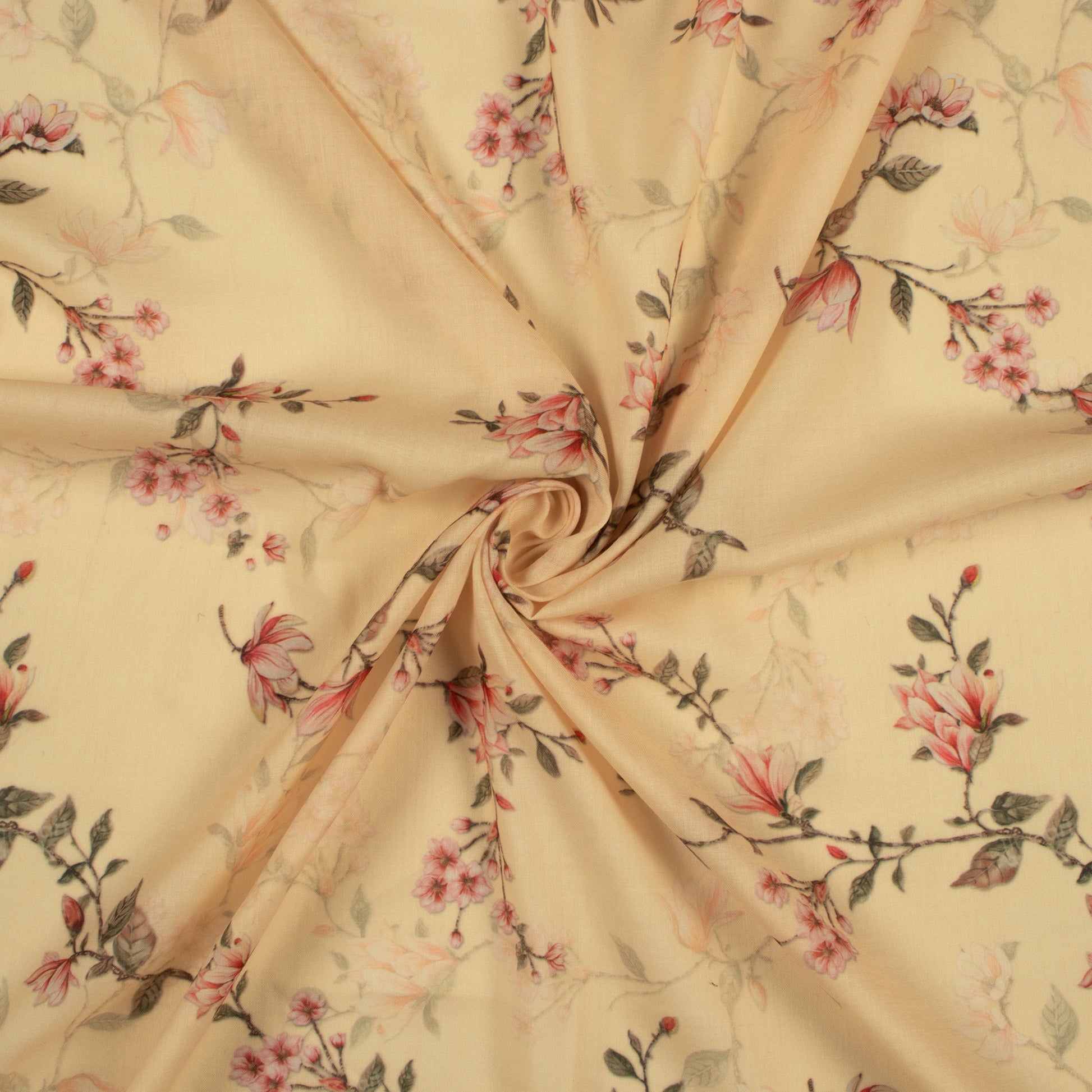 Pastle Yellow Floral Digital Print Poly Cambric Fabric
