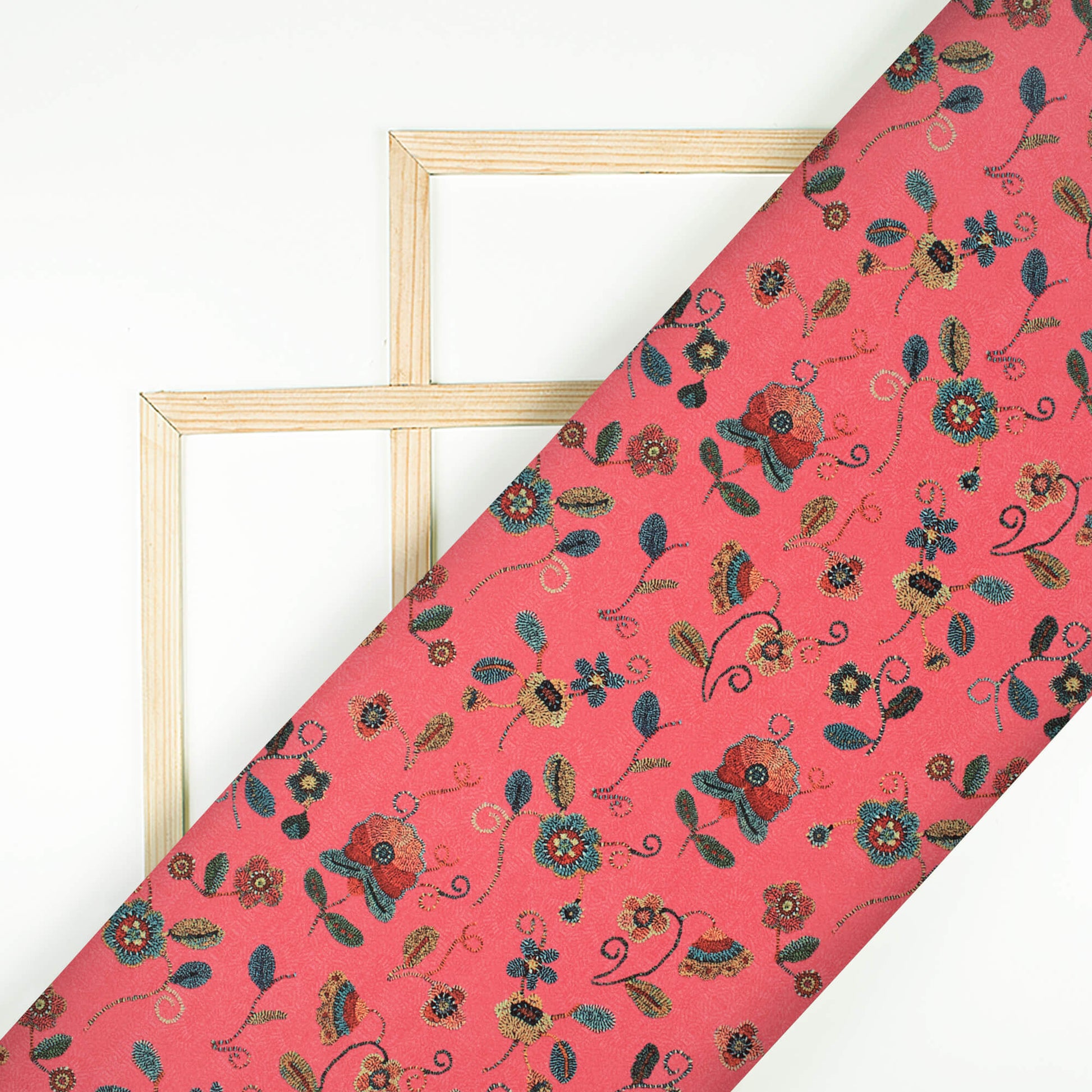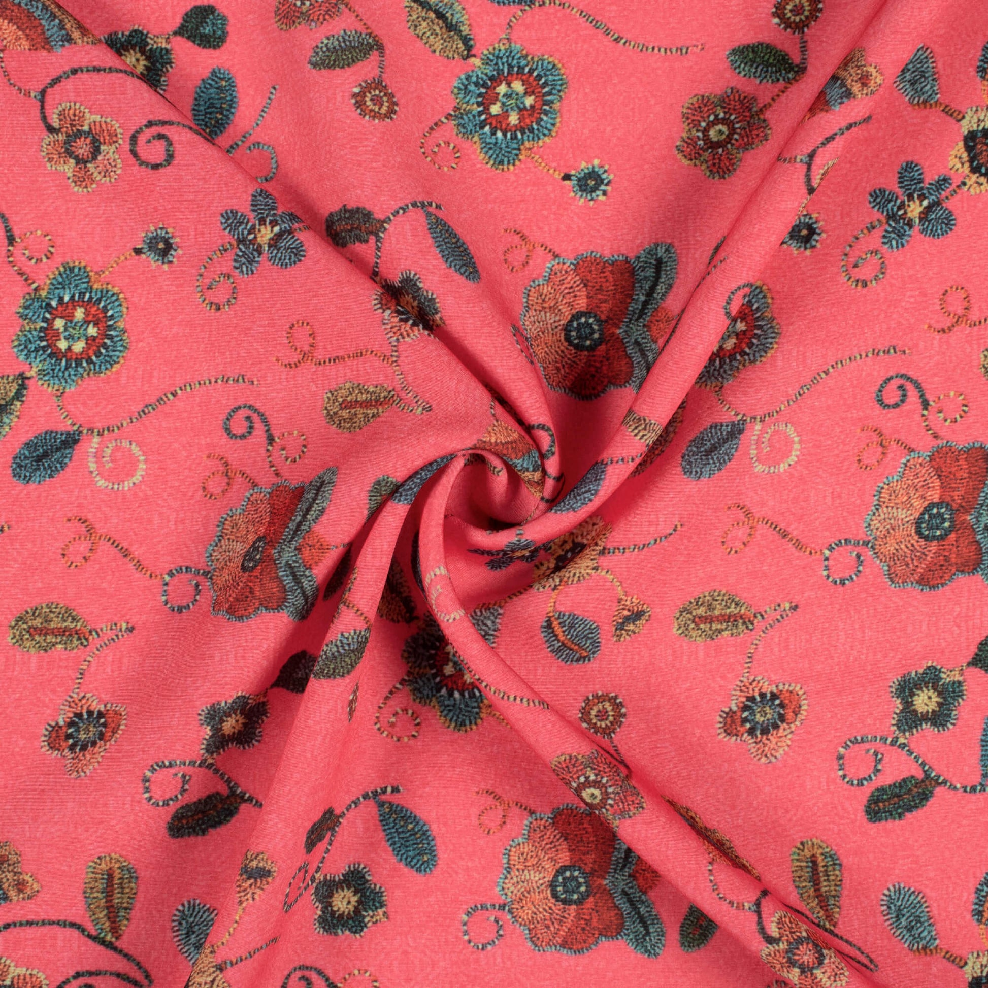 Punch Pink And Pine Green Floral Pattern Digital Print Royal BSY Crepe Fabric