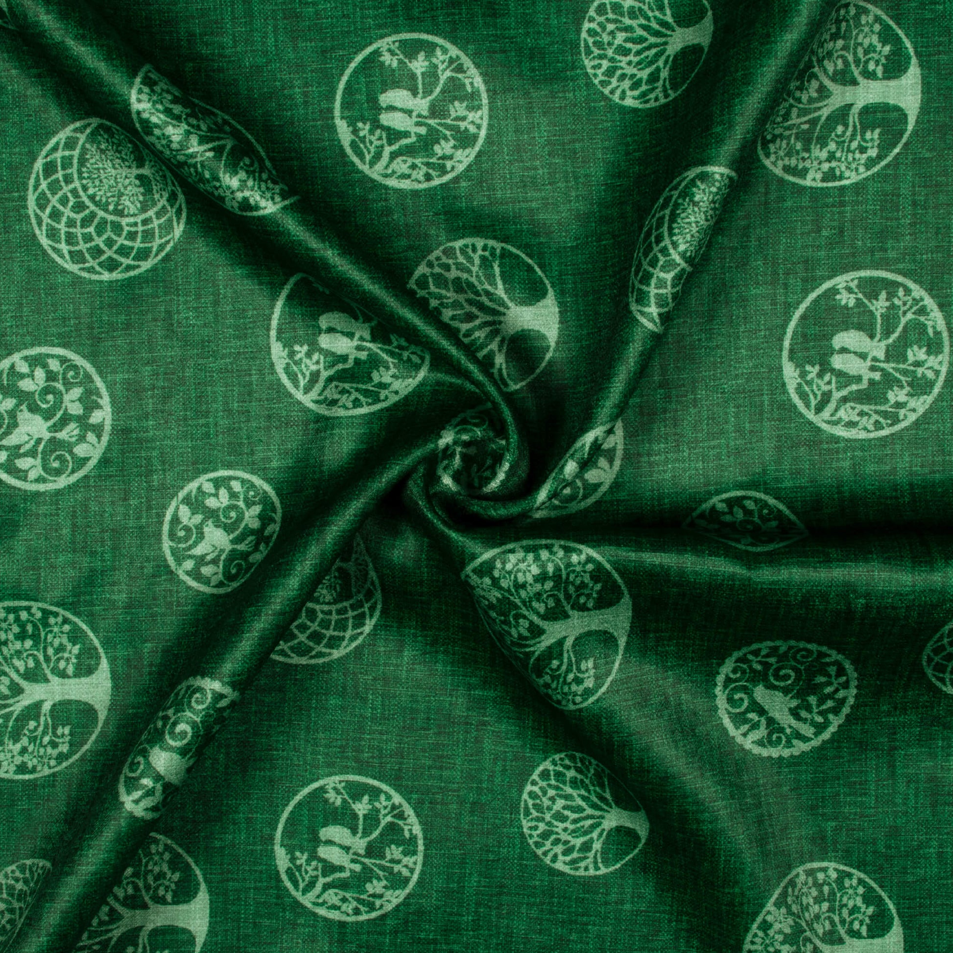Sacramento Green Quirky Pattern Digital Print Lush Satin Fabric