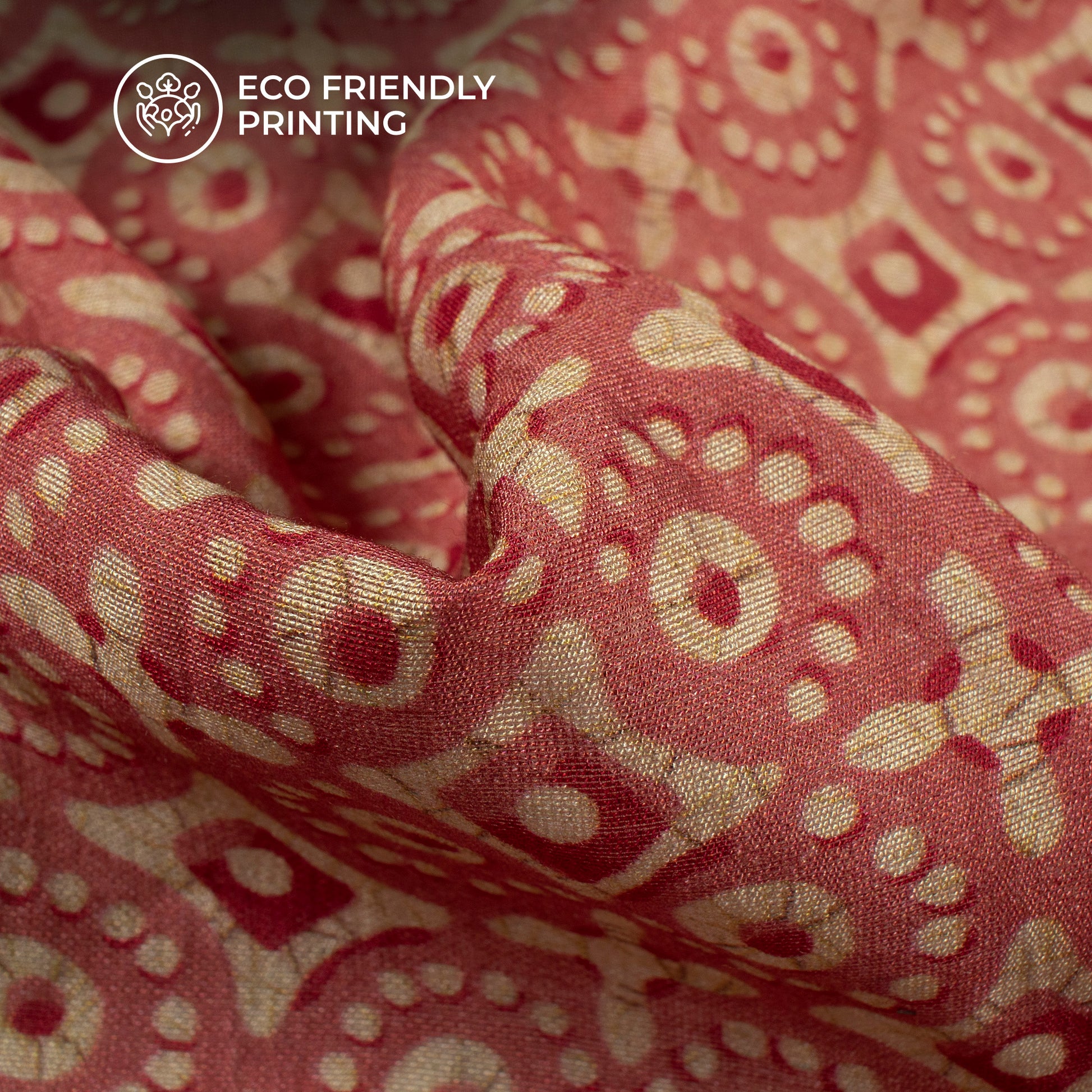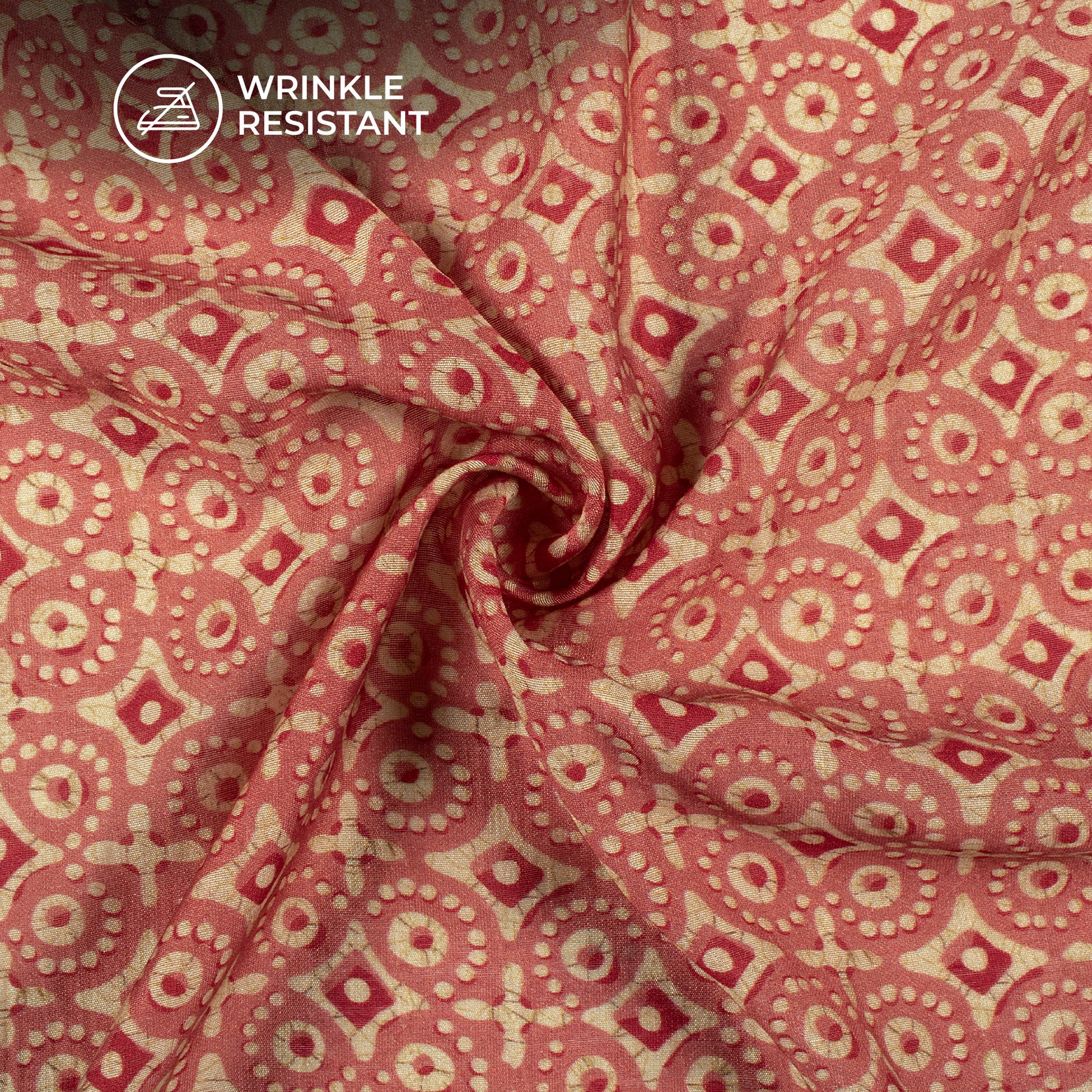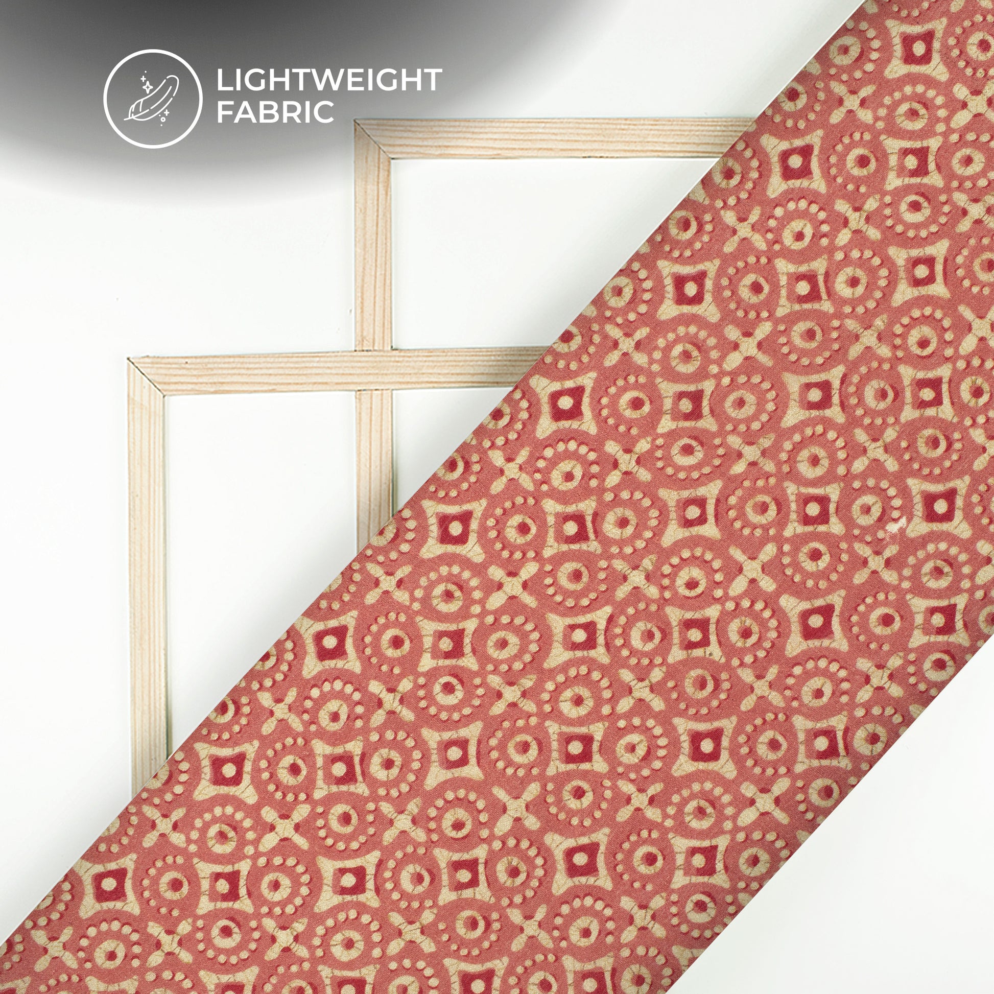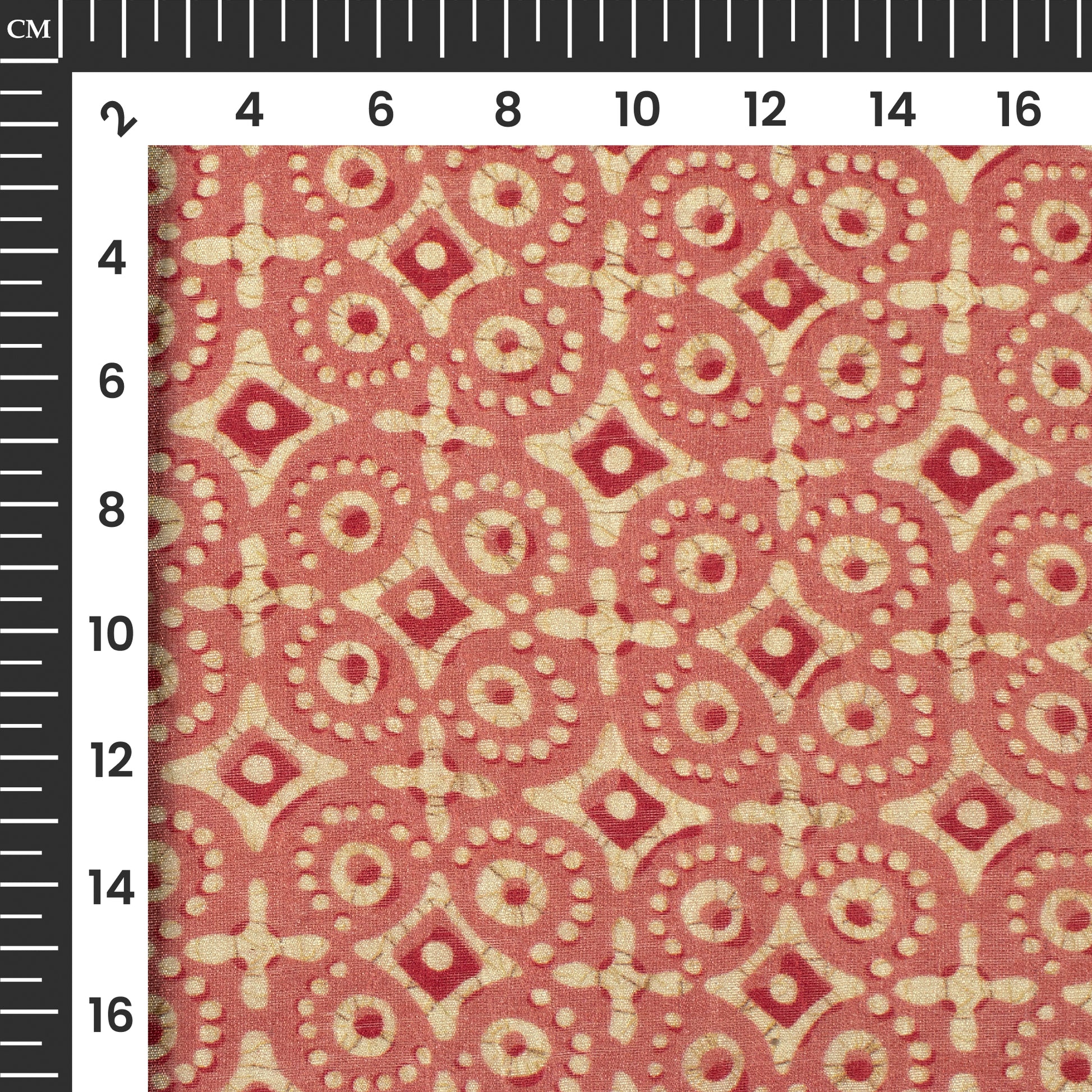 Salmon Pink And Beige Geometric Digital Print Viscose Chanderi Fabric