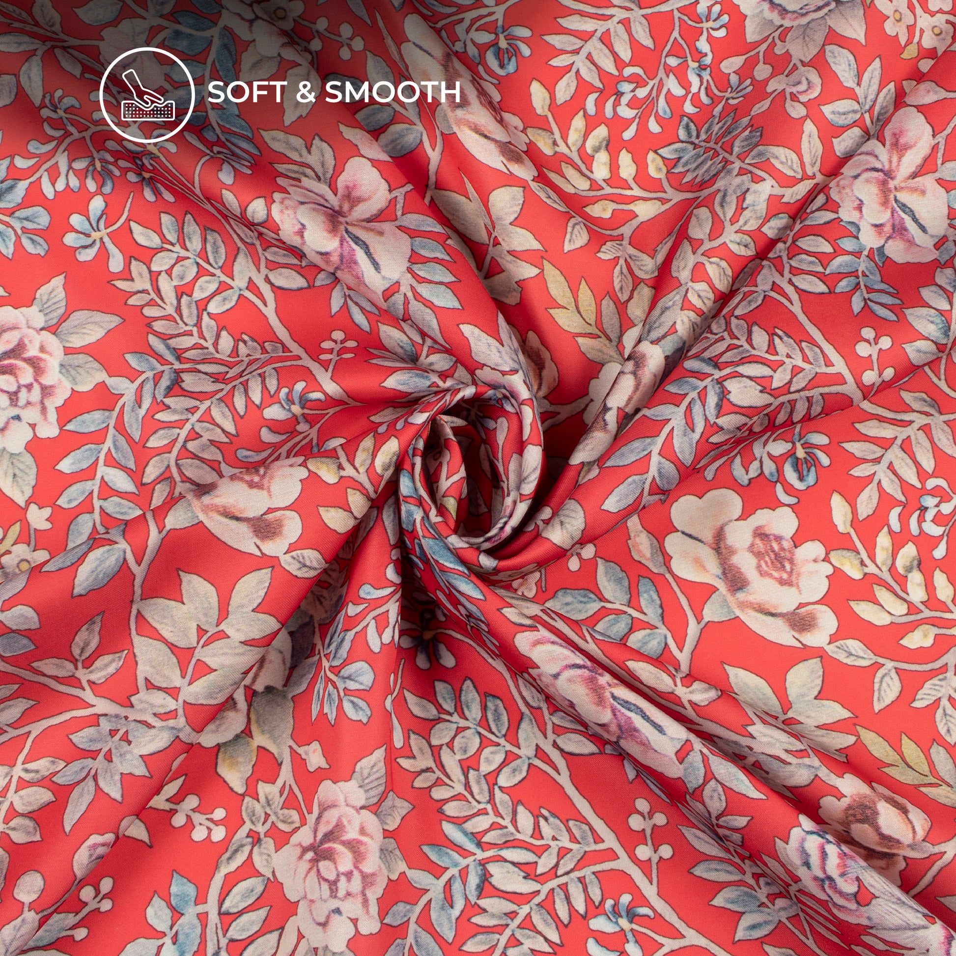Scarlet Red Floral Digital Print Modal Satin Fabric