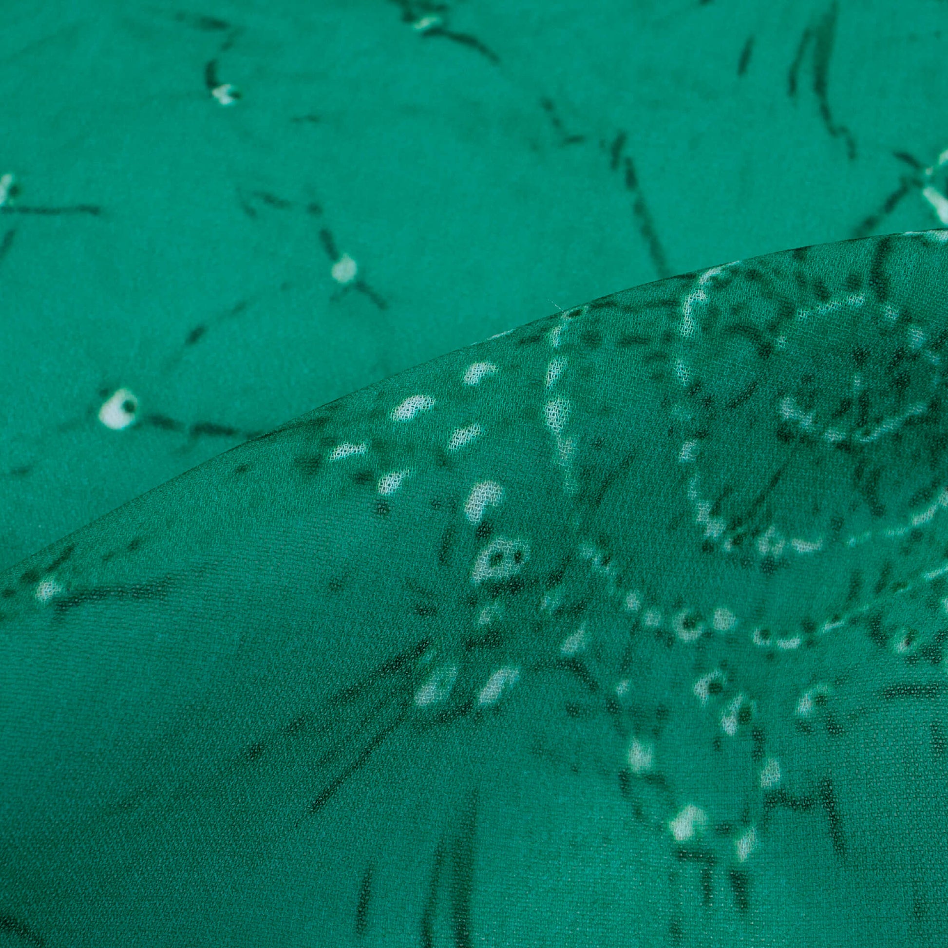 Sharmock Green And White Traditional Pattern Digital Print Georgette Fabric