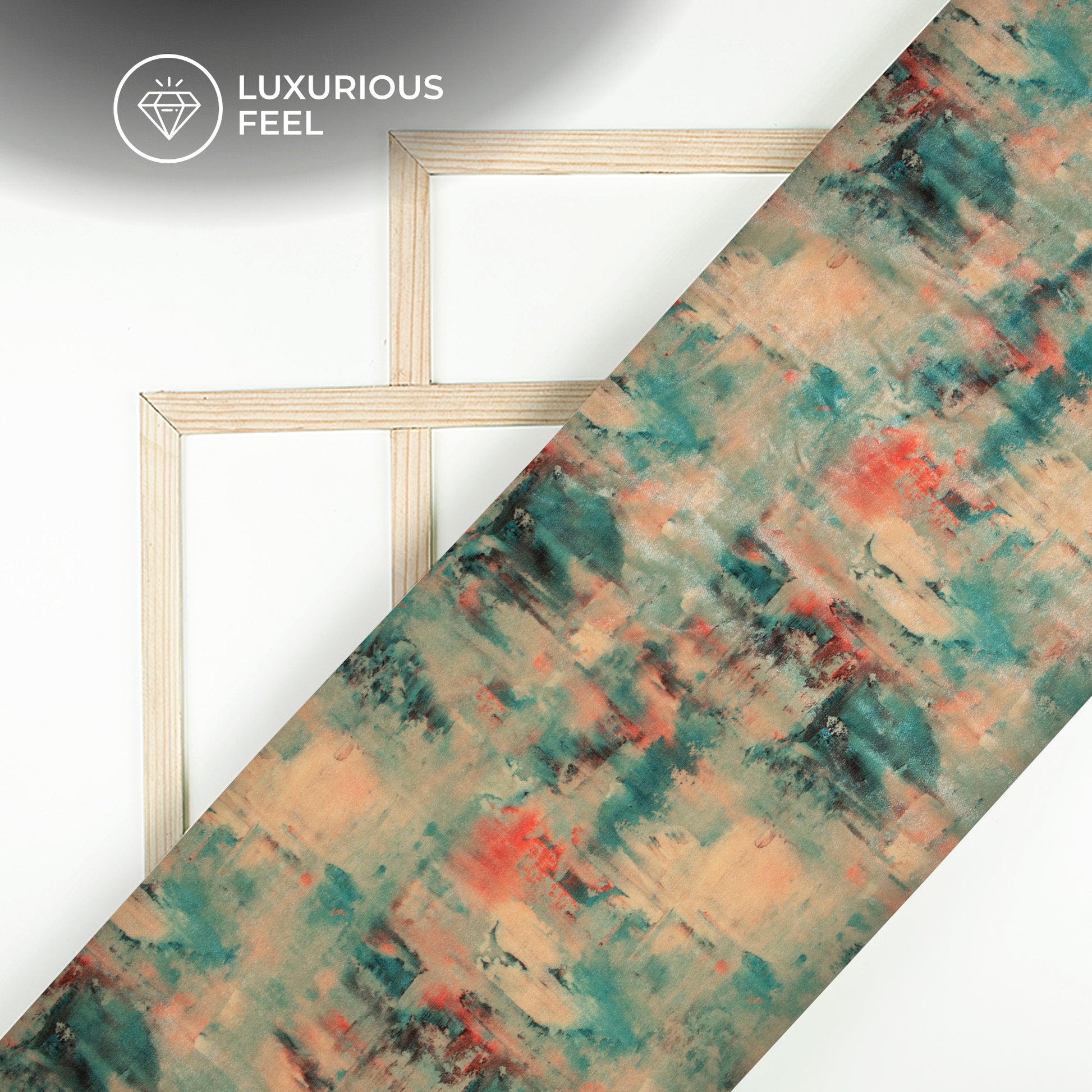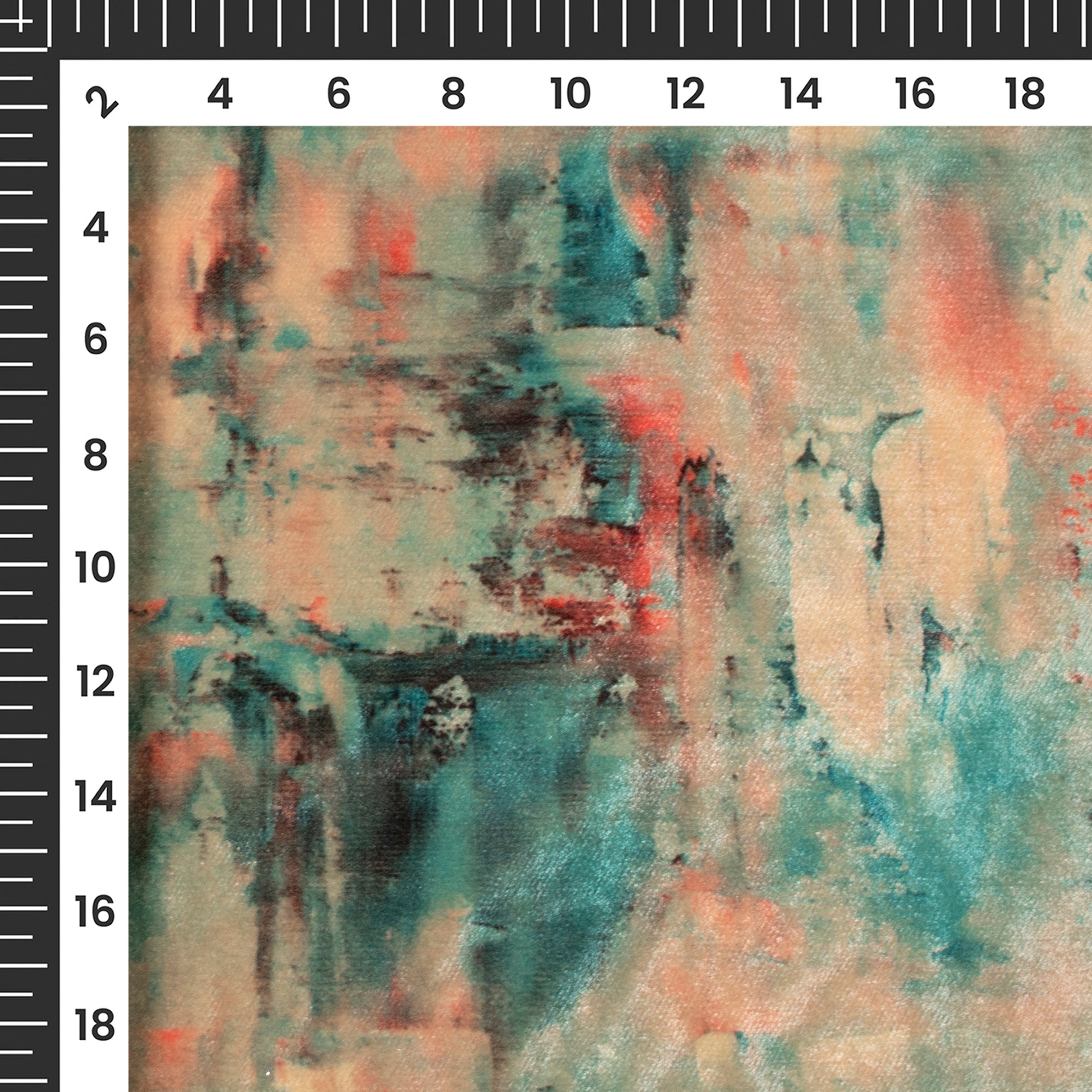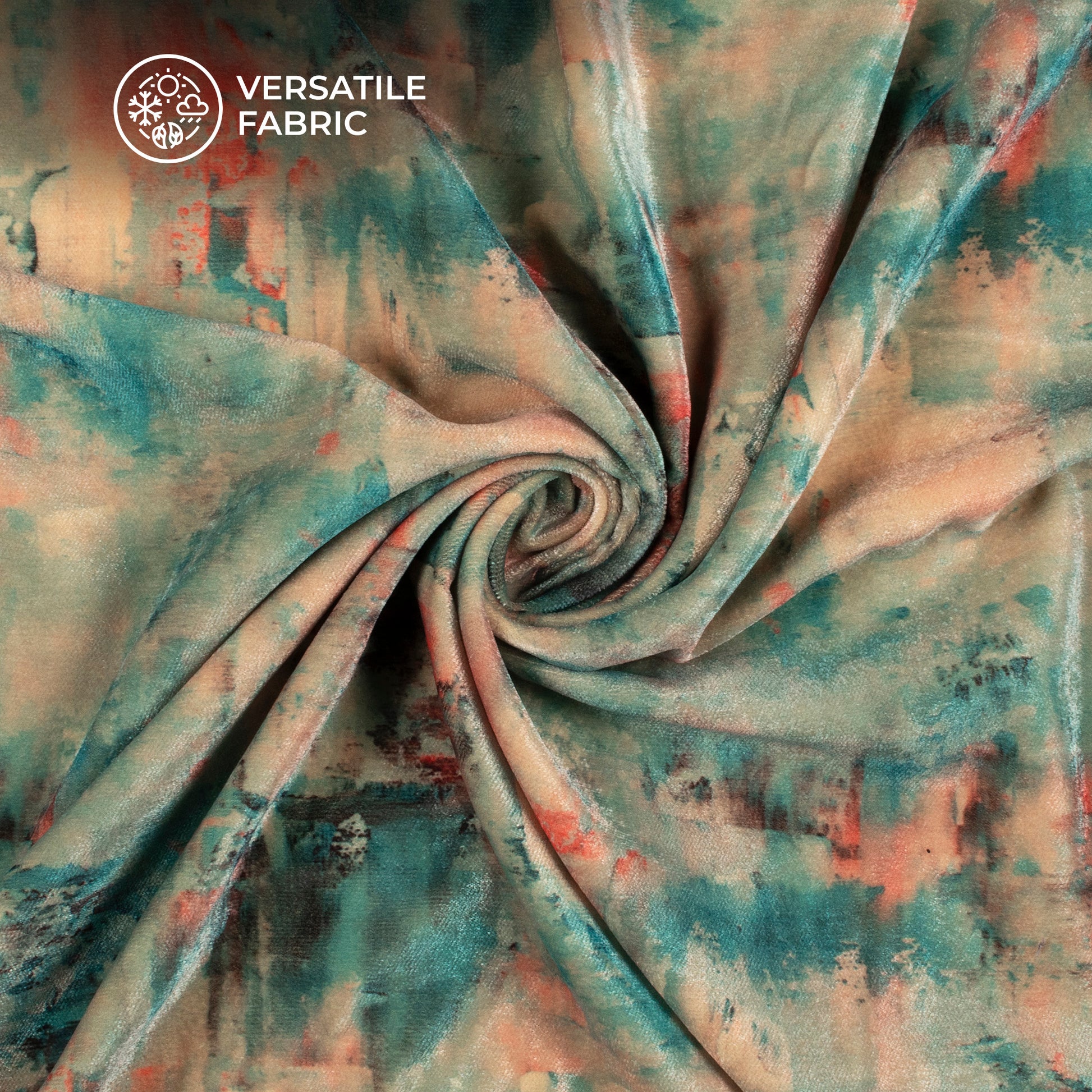 Teal Blue Tye And Dye Pattern Digital Print Velvet Fabric