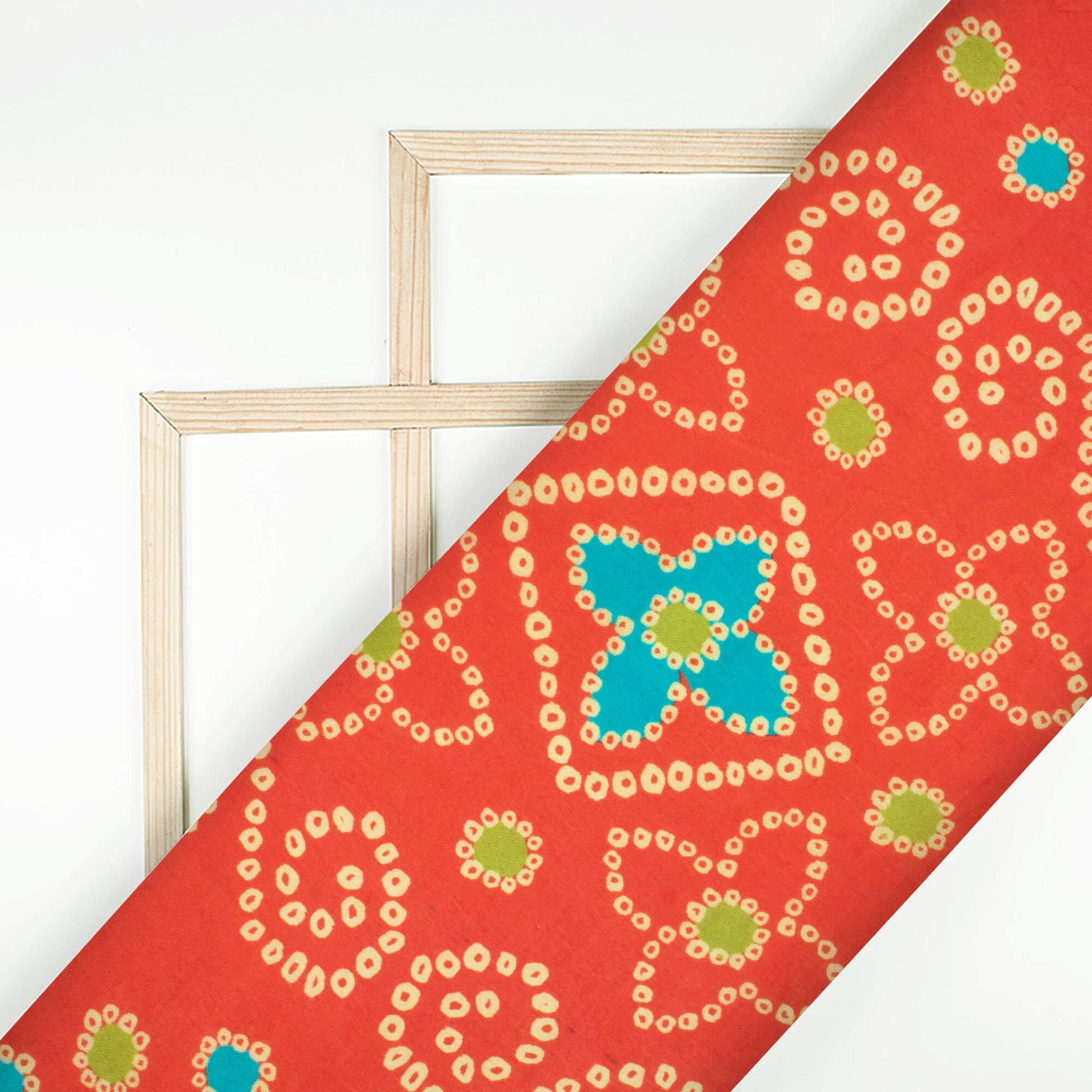 Vermilion Red And Cream Bandhanii Pattern Digital Print Viscose Muslin Fabric