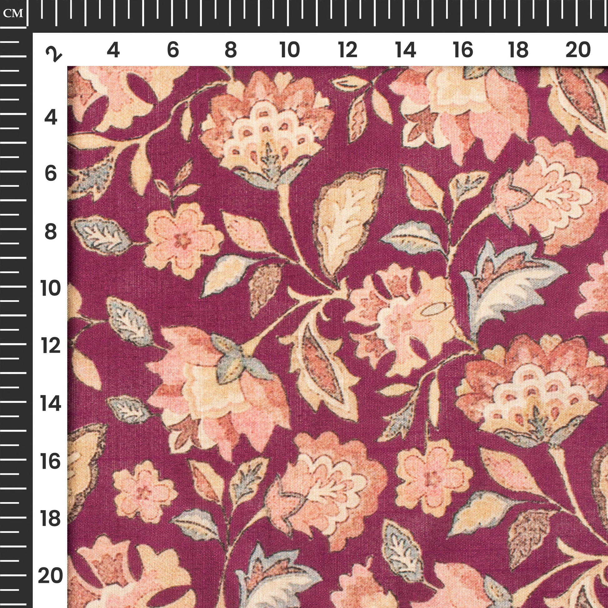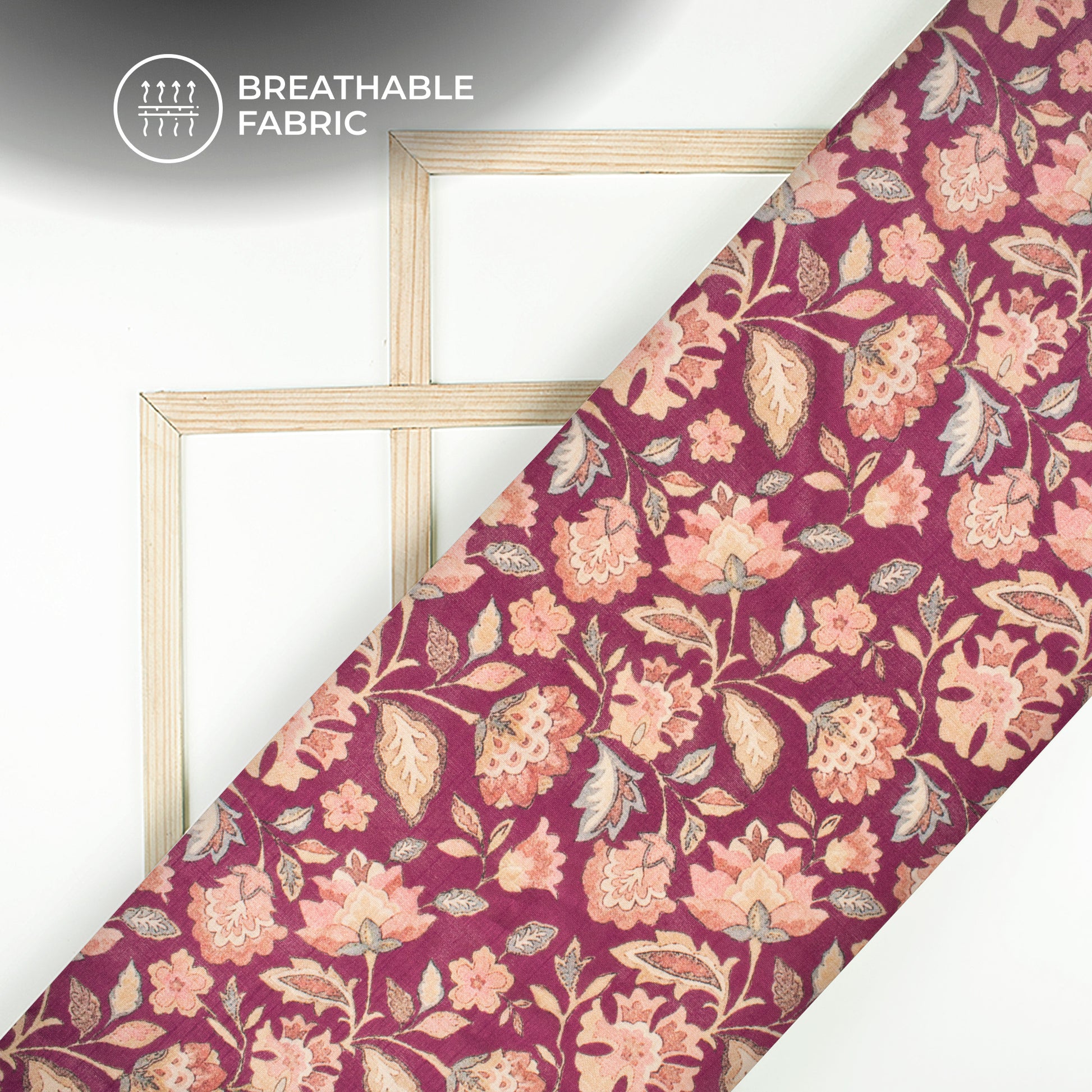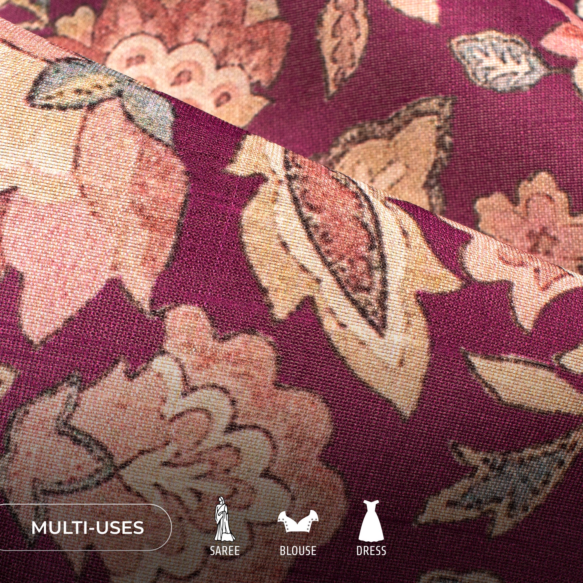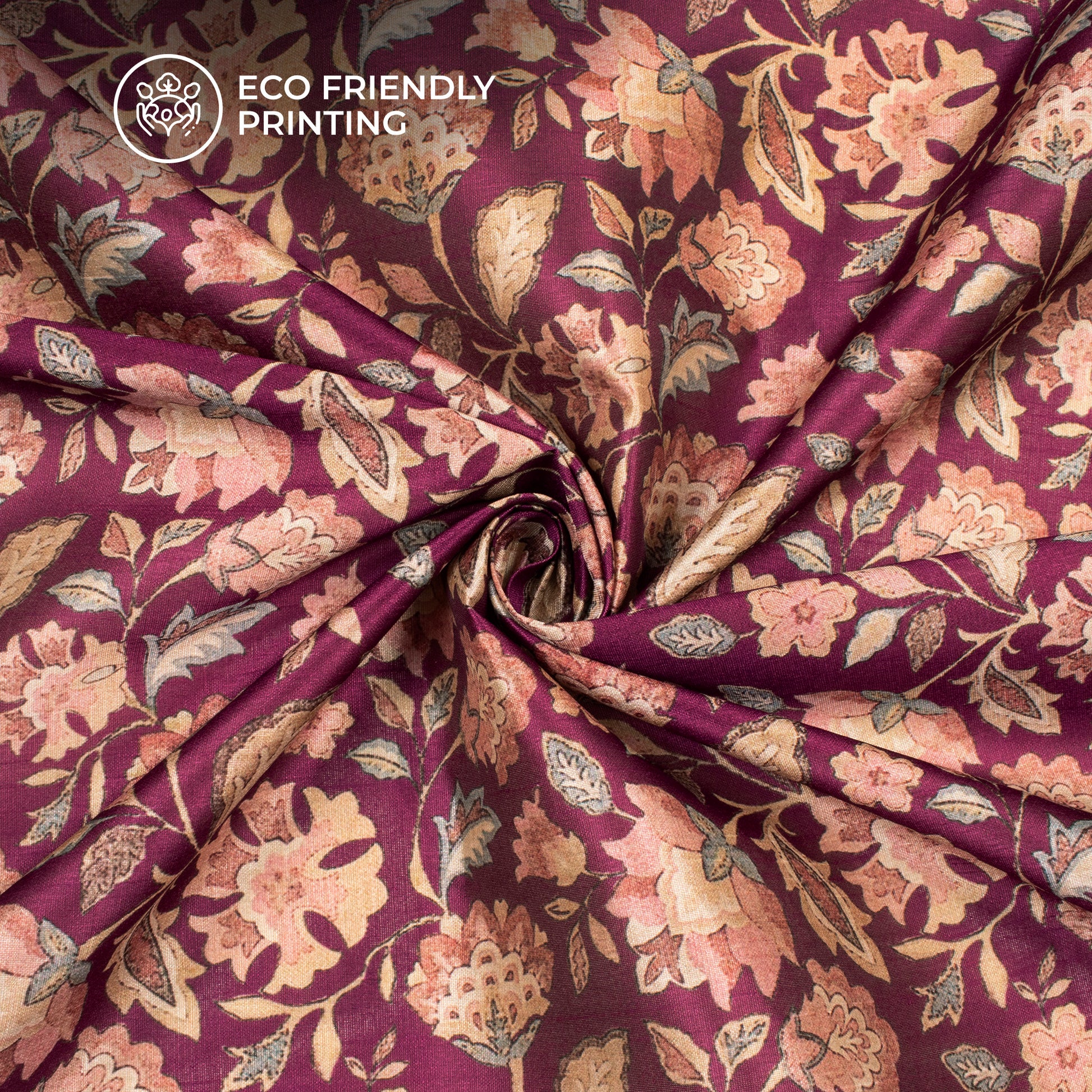 Wine Purple Floral Digital Print Art Tusser Silk Fabric