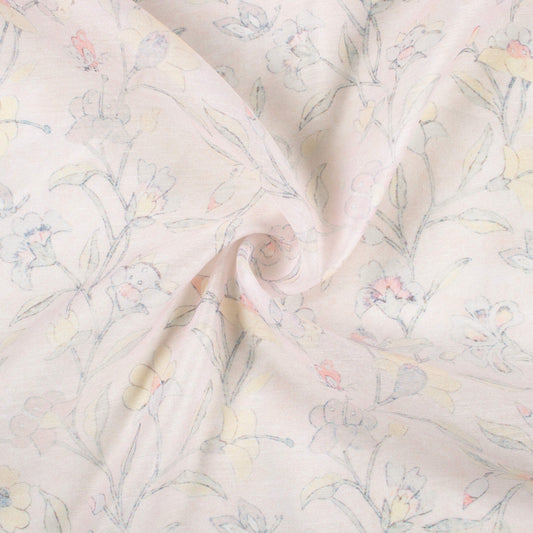 Pastel Peach And Pale Grey Floral Pattern Digital Print Chanderi Fabric Pastel Peach And Pale Grey Floral Pattern Digital Print Chanderi Fabric