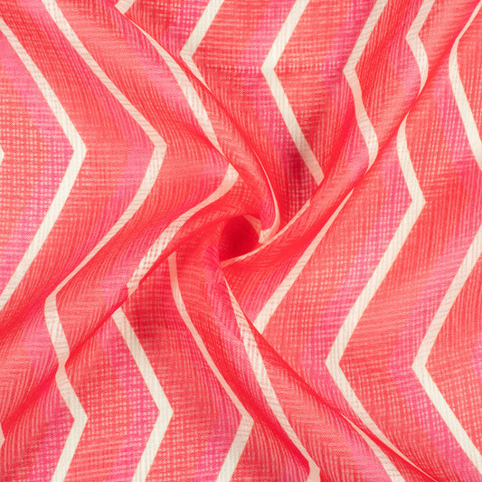 Red And Cream Chevron Pattern Digital Print Kota Doria Fabric Red And Cream Chevron Pattern Digital Print Kota Doria Fabric
