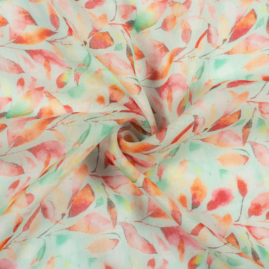 Red And Pale Green Leaf Pattern Digital Print Pure Georgette Fabric Red And Pale Green Leaf Pattern Digital Print Pure Georgette Fabric