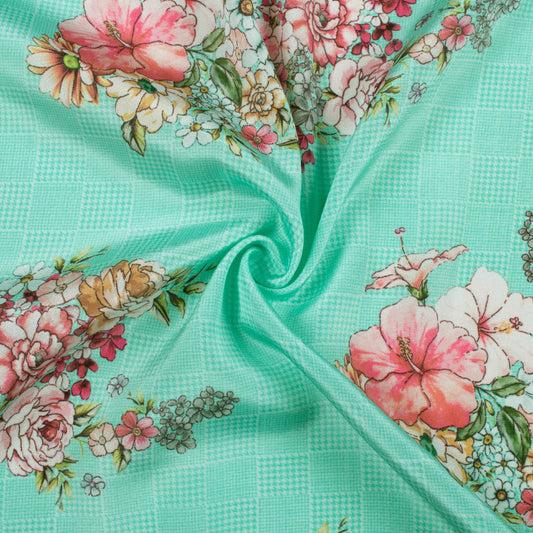 -6% offJade Green Floral Pattern Digital Print Flat Silk Fabric Jade Green Floral Pattern Digital Print Flat Silk Fabric