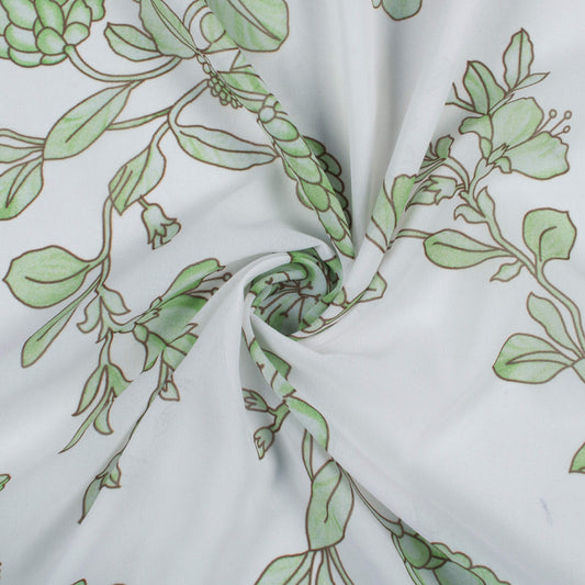 -10% offWhite And Green Floral Pattern Digital Print Georgette Fabric White And Green Floral Pattern Digital Print Georgette Fabric