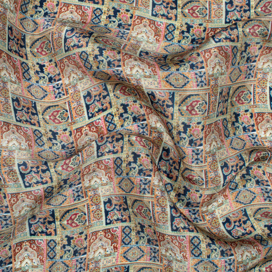 Navy Blue And Red Paisley Pattern Digital Print Viscose Gaji Silk Fabric Navy Blue And Red Paisley Pattern Digital Print Viscose Gaji Silk Fabric