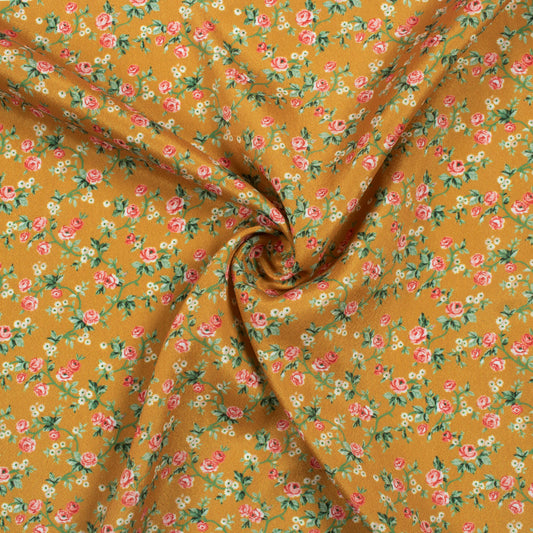 -7% offGoldenrod Yellow And Green Floral Pattern Digital Print Crepe Silk Fabric Goldenrod Yellow And Green Floral Pattern Digital Print Crepe Silk Fabric