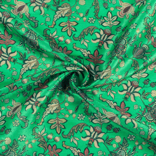 Sage Green And Blood Red Traditional Pattern Digital Print Viscose Uppada Silk Fabric Sage Green And Blood Red Traditional Pattern Digital Print Viscose Uppada Silk Fabric