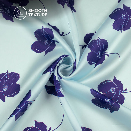 Sky Blue Floral Digital Print Georgette Satin Fabric Sky Blue Floral Digital Print Georgette Satin Fabric